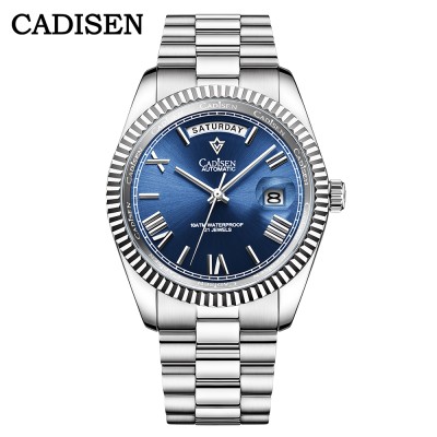 CADISEN C8185 ICE-BLUE Dial Sapphire Glass Watches Men Japan MIYOTA-8285 Movt Men`s Watch Mechanical Automatic Diver Watch Clock