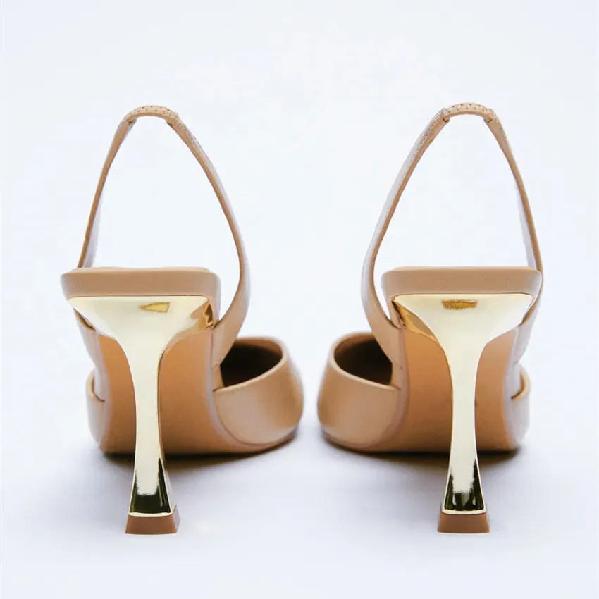 Luxury Women Heels Wedding Shoes 2022 New Sexy Sandals Nude Color Pointed Toe Mules High Heels Female Stiletto Women Pumps
