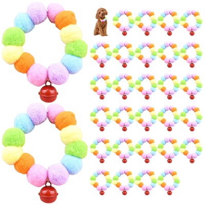 30 Pcs Pets Cute Ball Collars Necklace Cat Dogs Bow Tie Rainbow Fur Ball Collars with Bell Pet Grooming Accessories