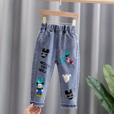 Deals Jeans for Teenage Girls Kids 3-6Yrs High Graffiti Painting Print Casual Pants with A Rainbow Cartoon Trousers