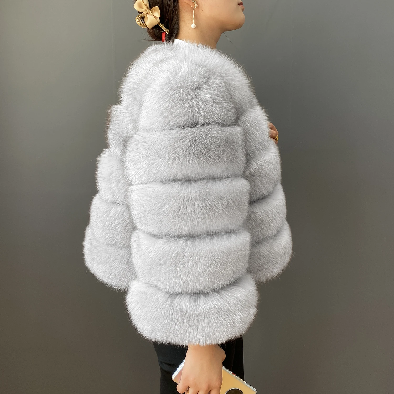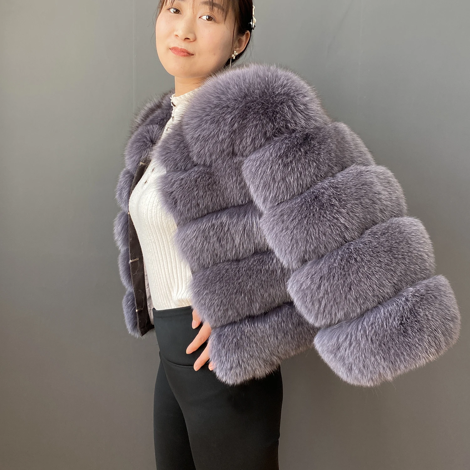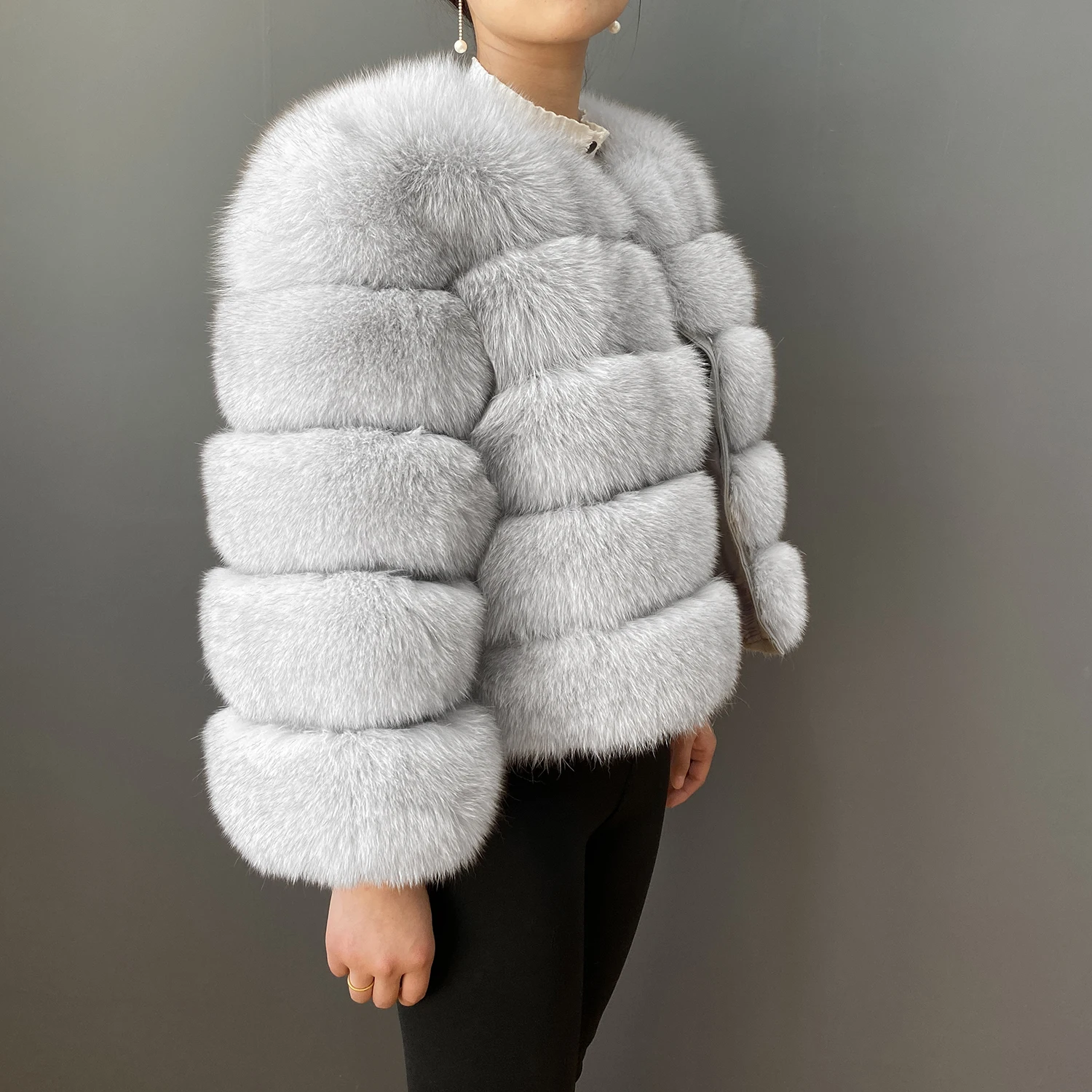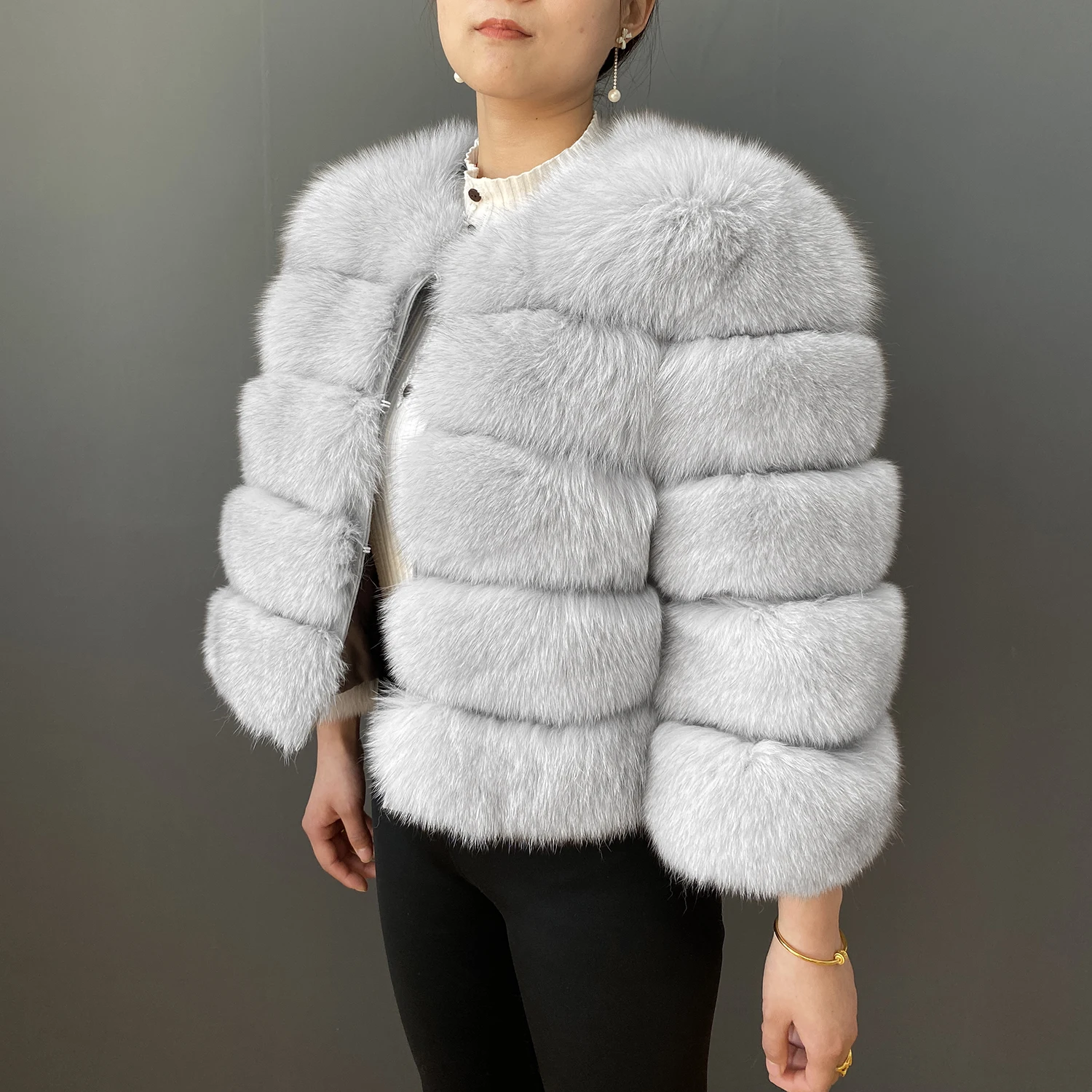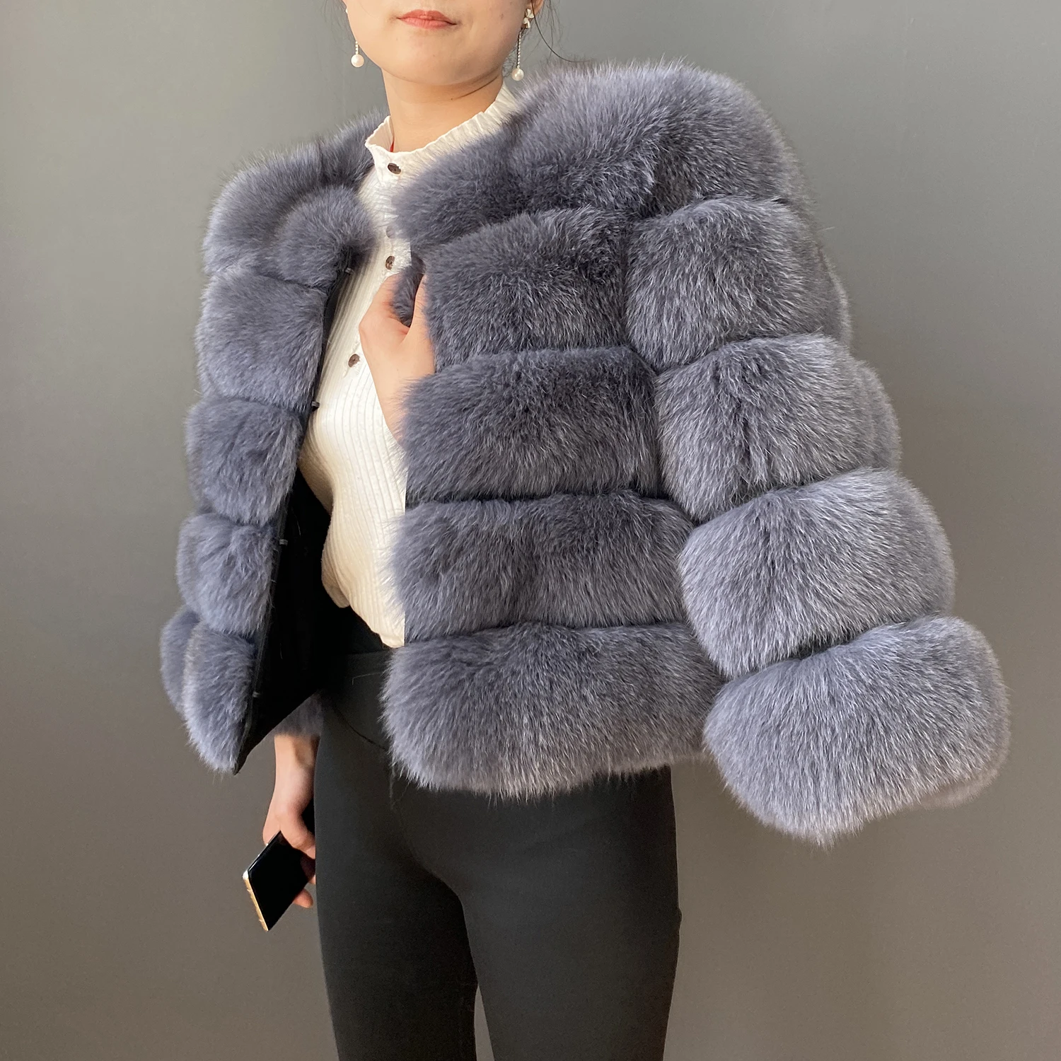 Winter Women's 50cm High Waist Style Short Natural Fox Fur Coats Real Fur Coat ASHENKAILAN 5 Rings High Fur