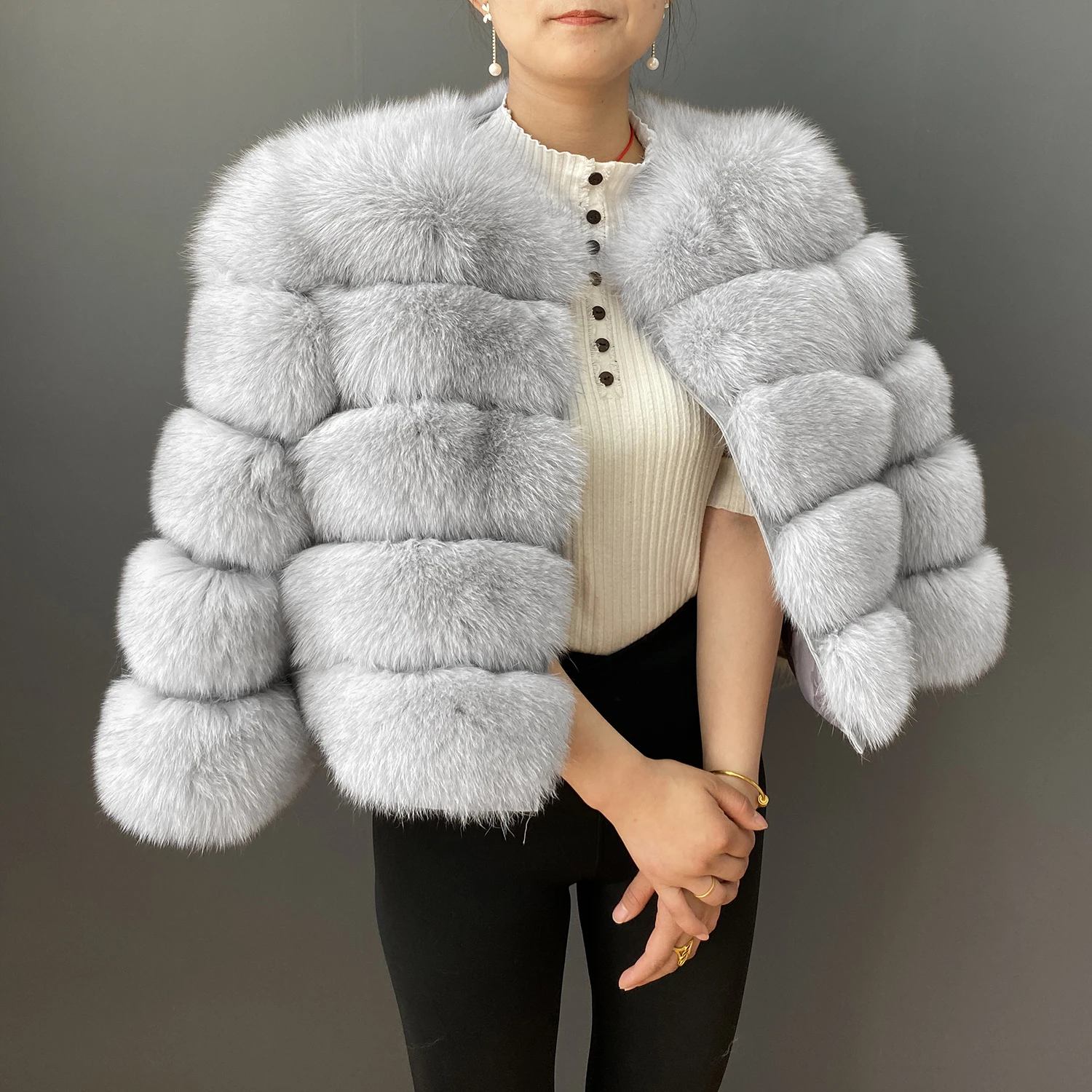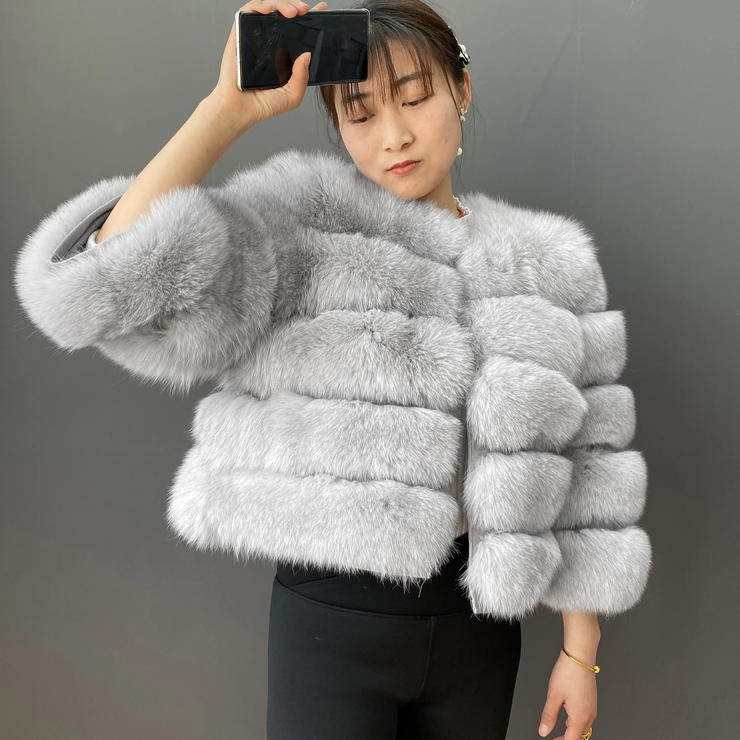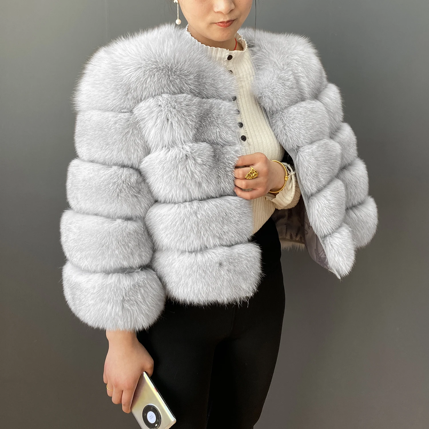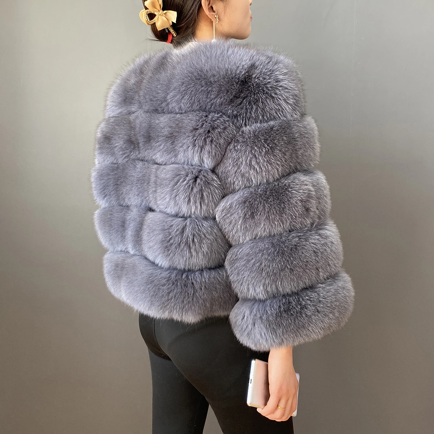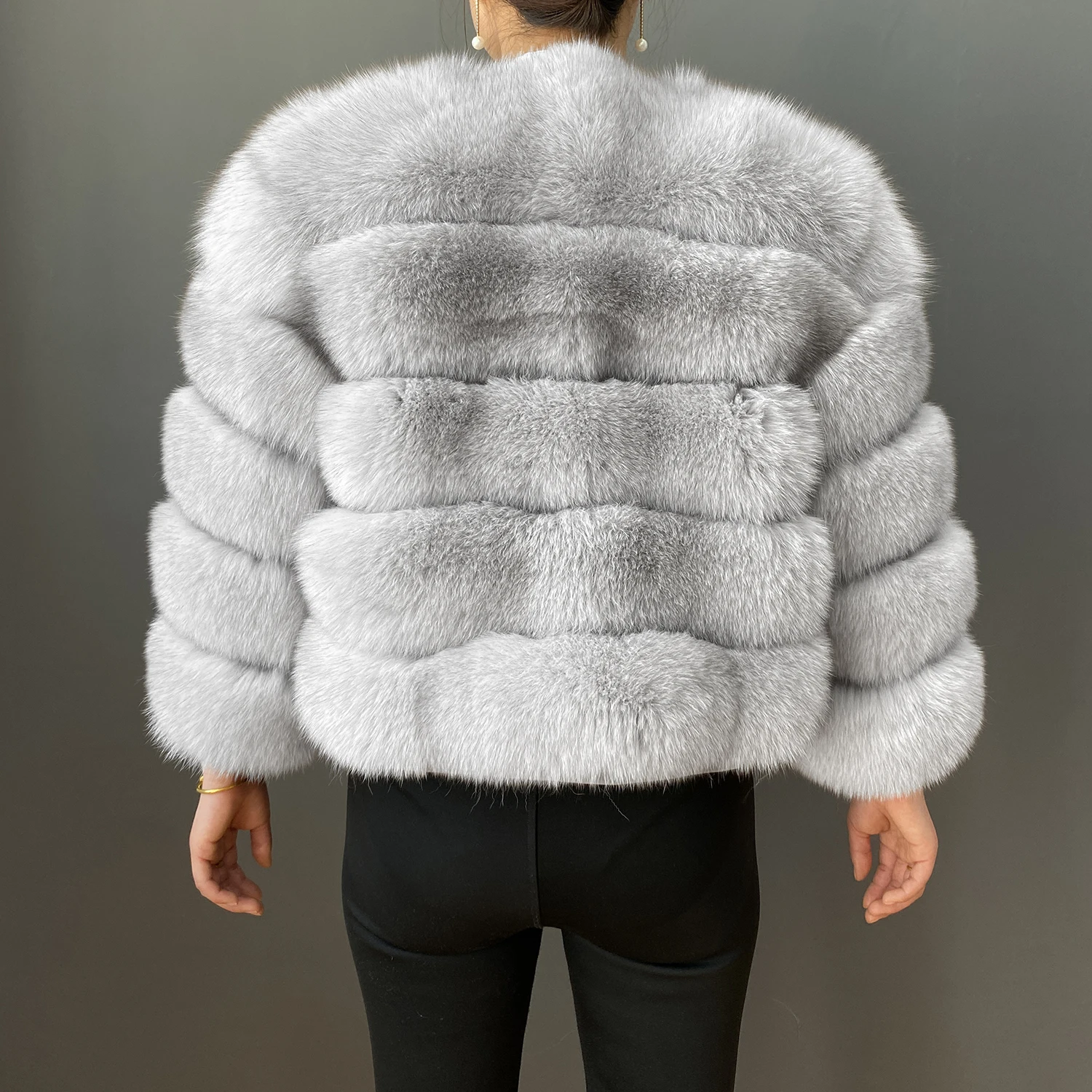 Winter Women's 50cm High Waist Style Short Natural Fox Fur Coats Real Fur Coat ASHENKAILAN 5 Rings High Fur