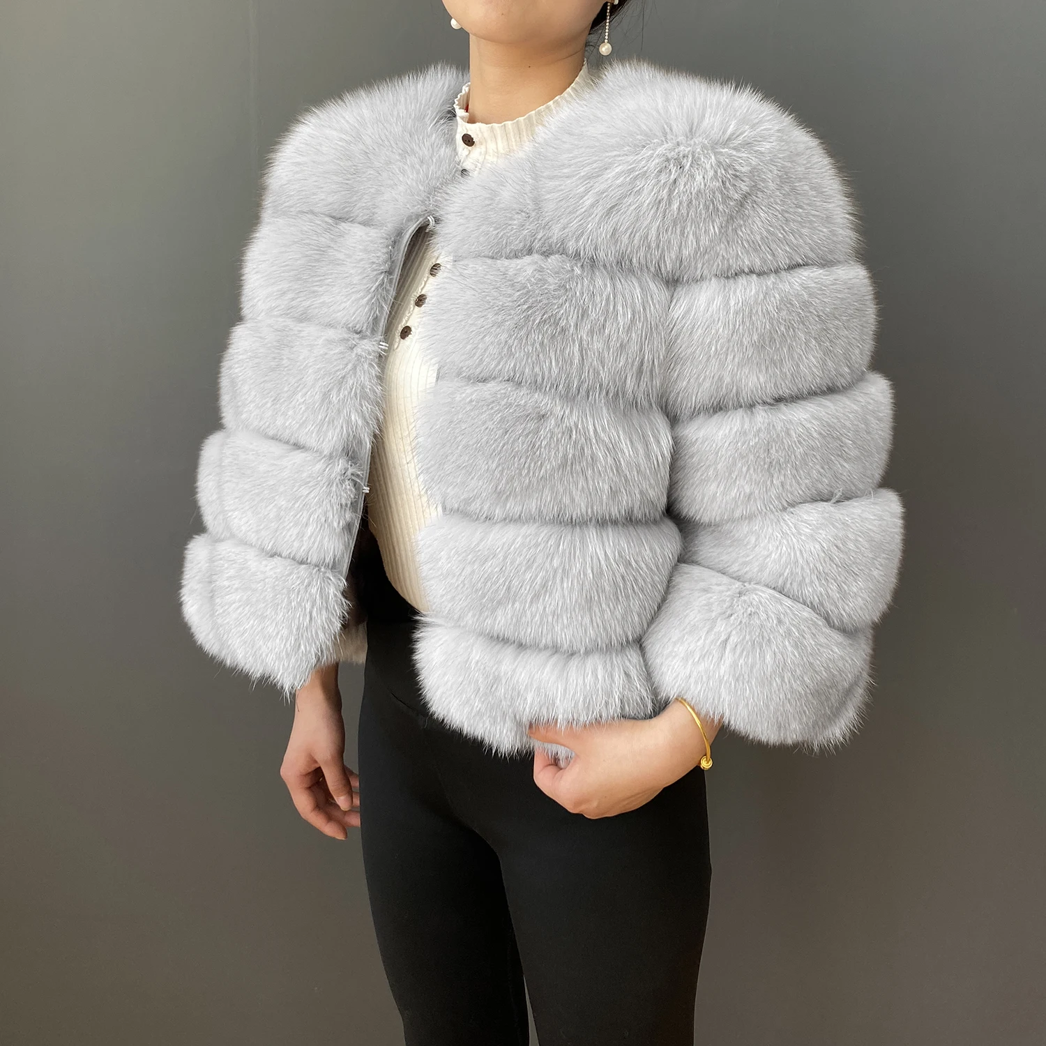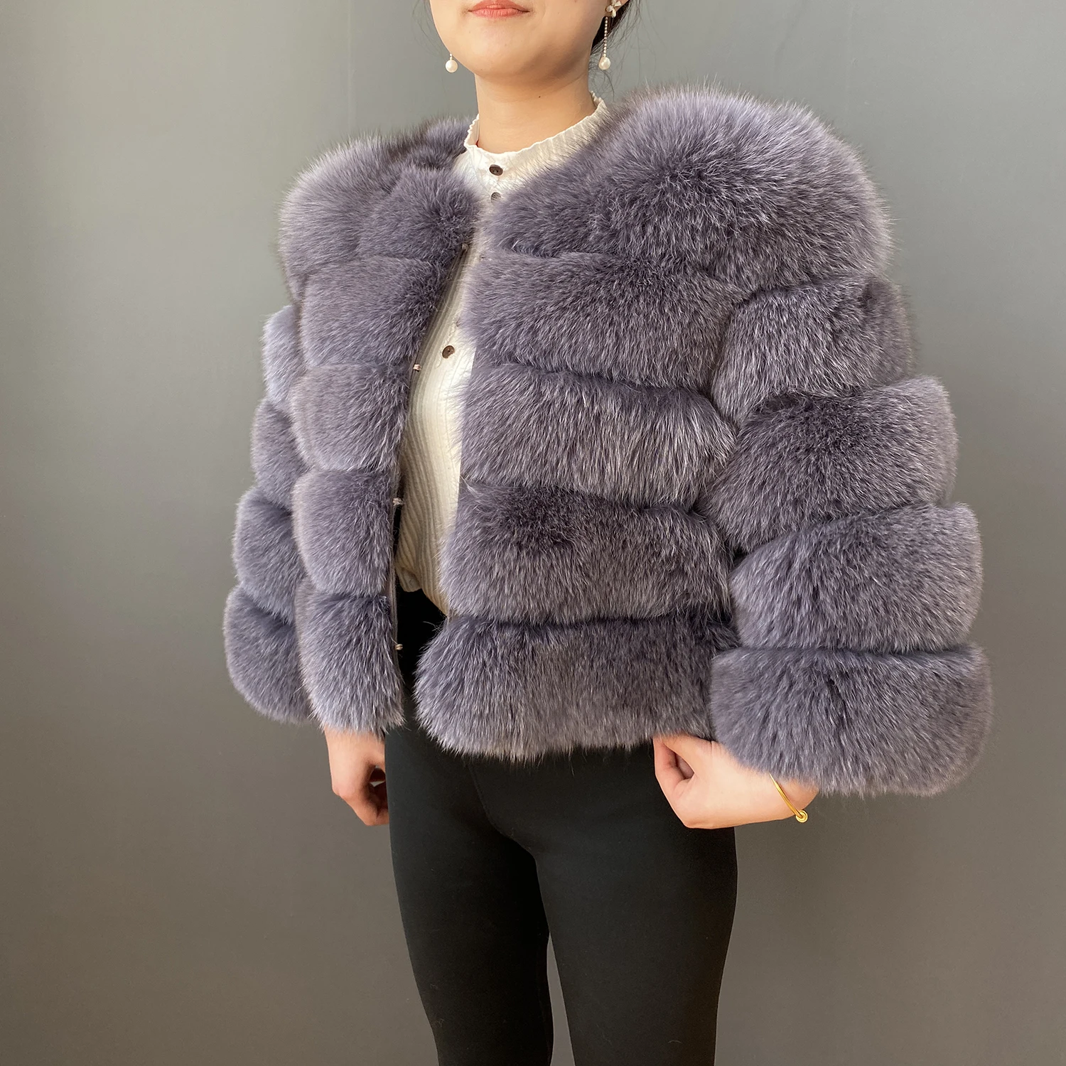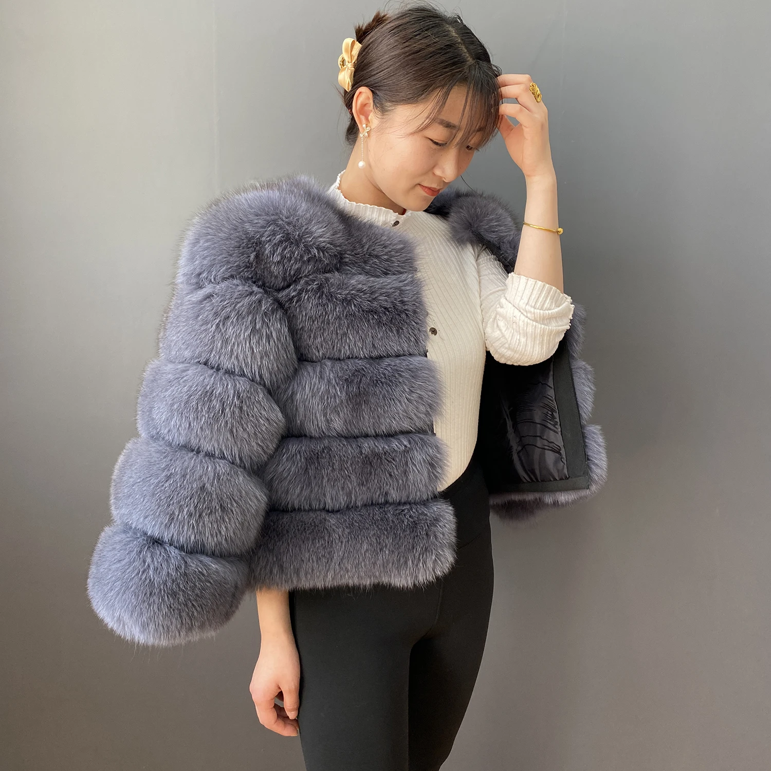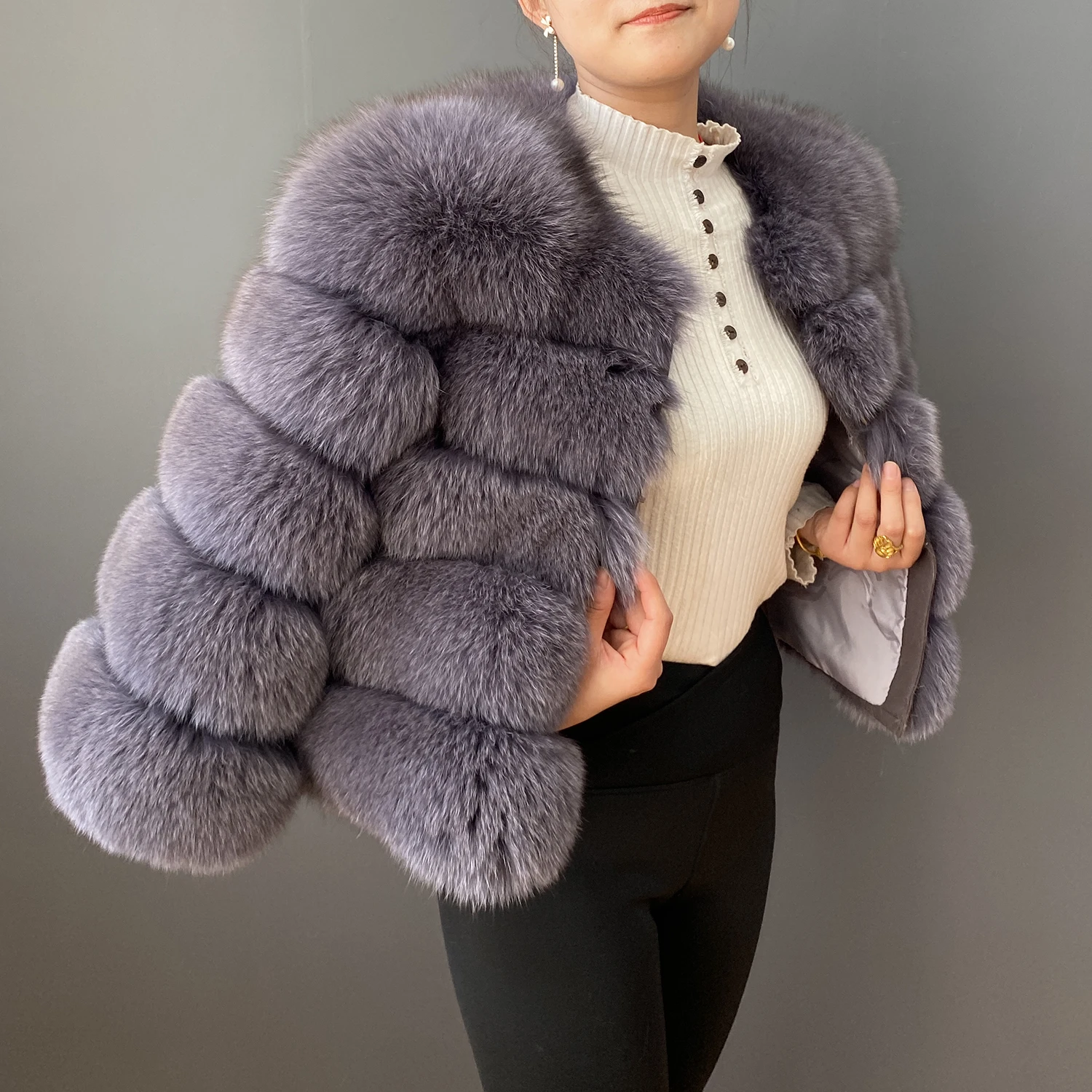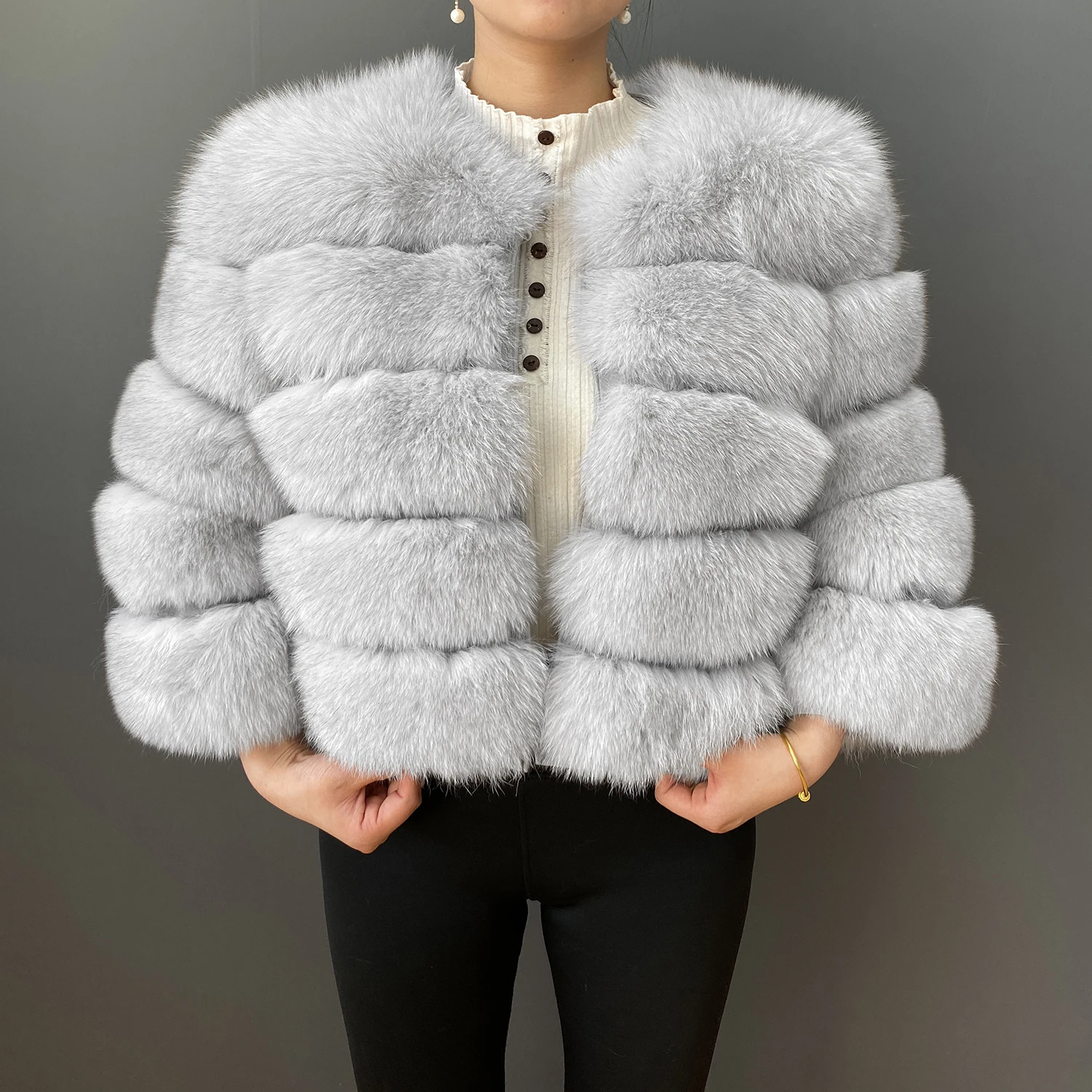 Winter Women's 50cm High Waist Style Short Natural Fox Fur Coats Real Fur Coat ASHENKAILAN 5 Rings High Fur