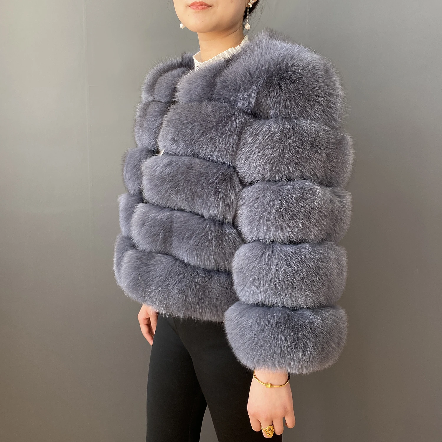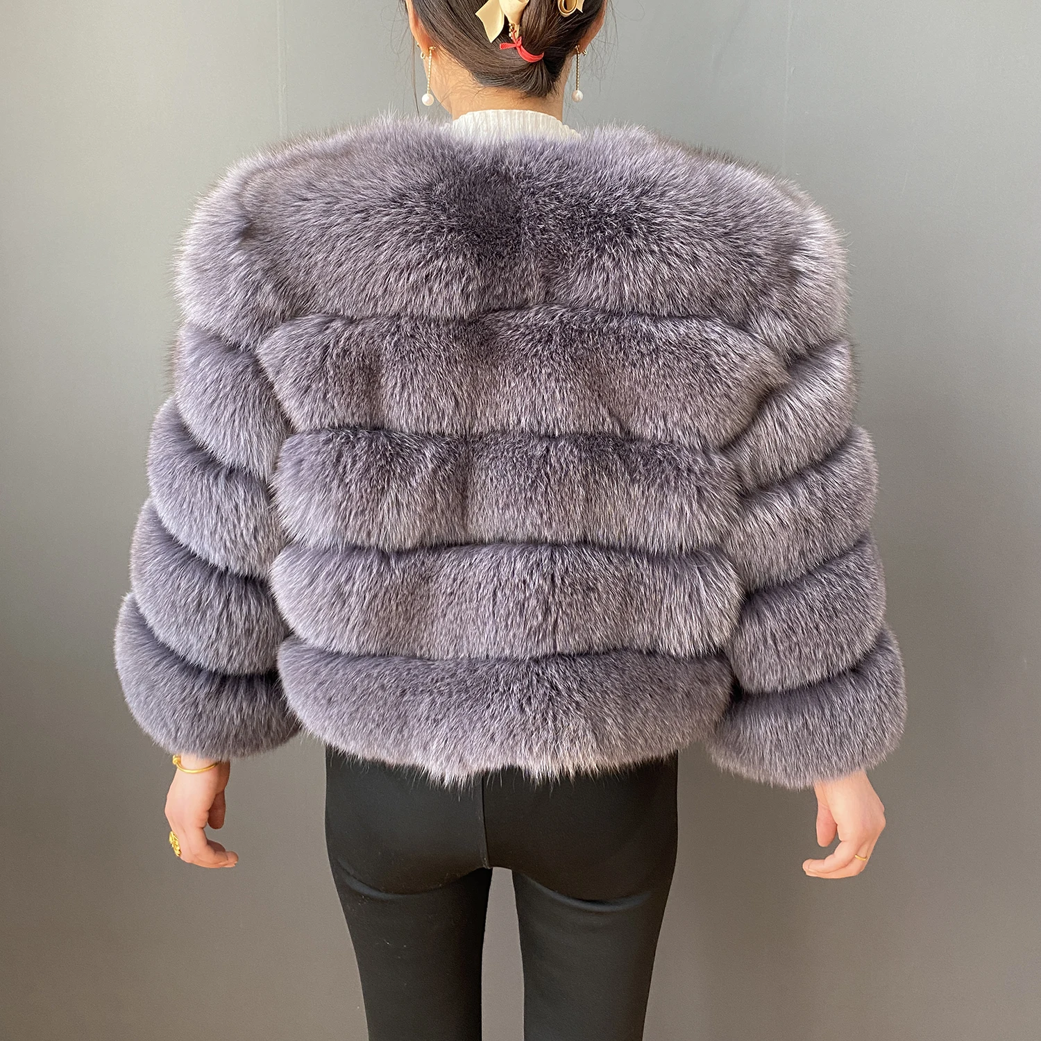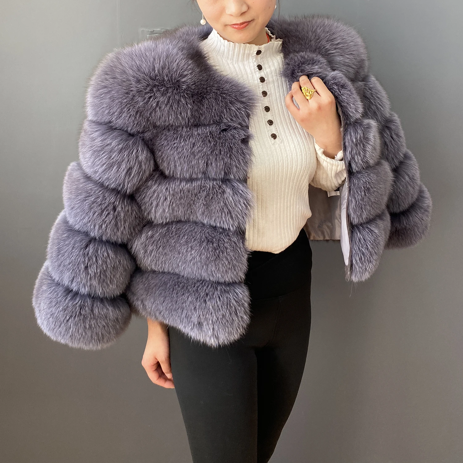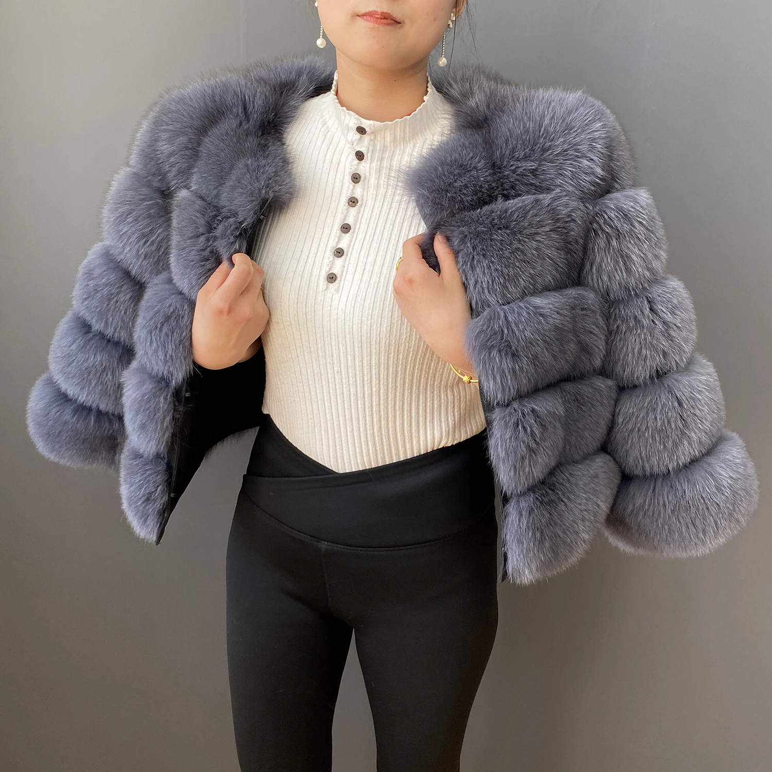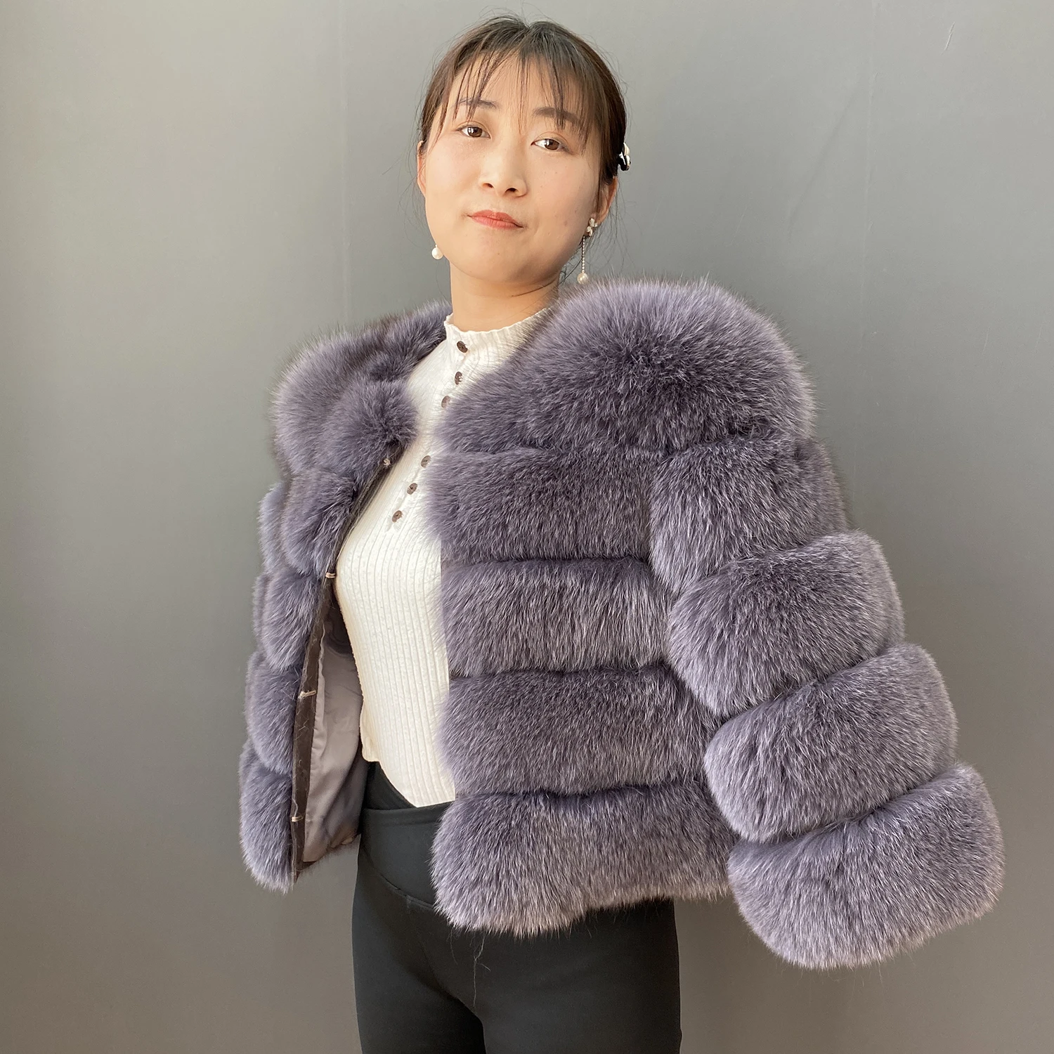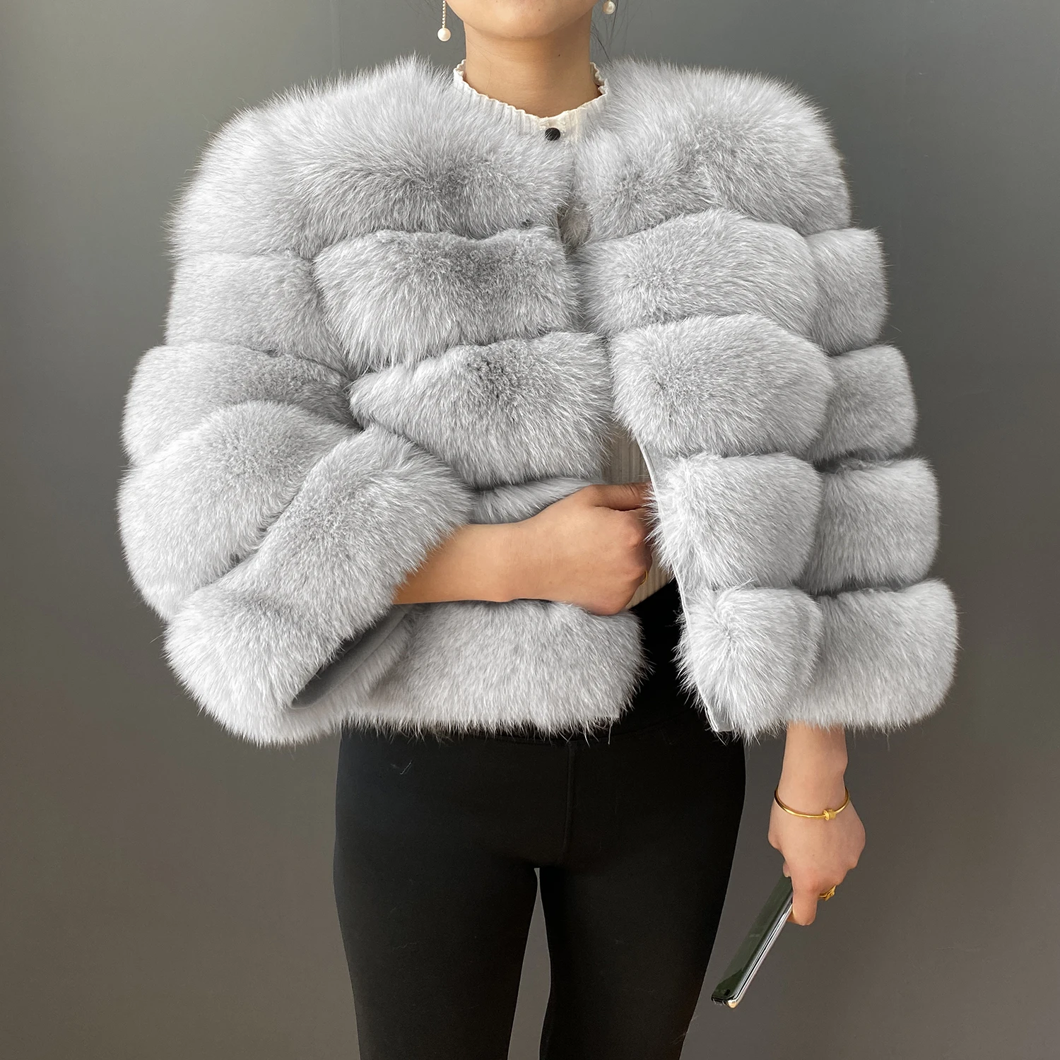 Winter Women's 50cm High Waist Style Short Natural Fox Fur Coats Real Fur Coat ASHENKAILAN 5 Rings High Fur