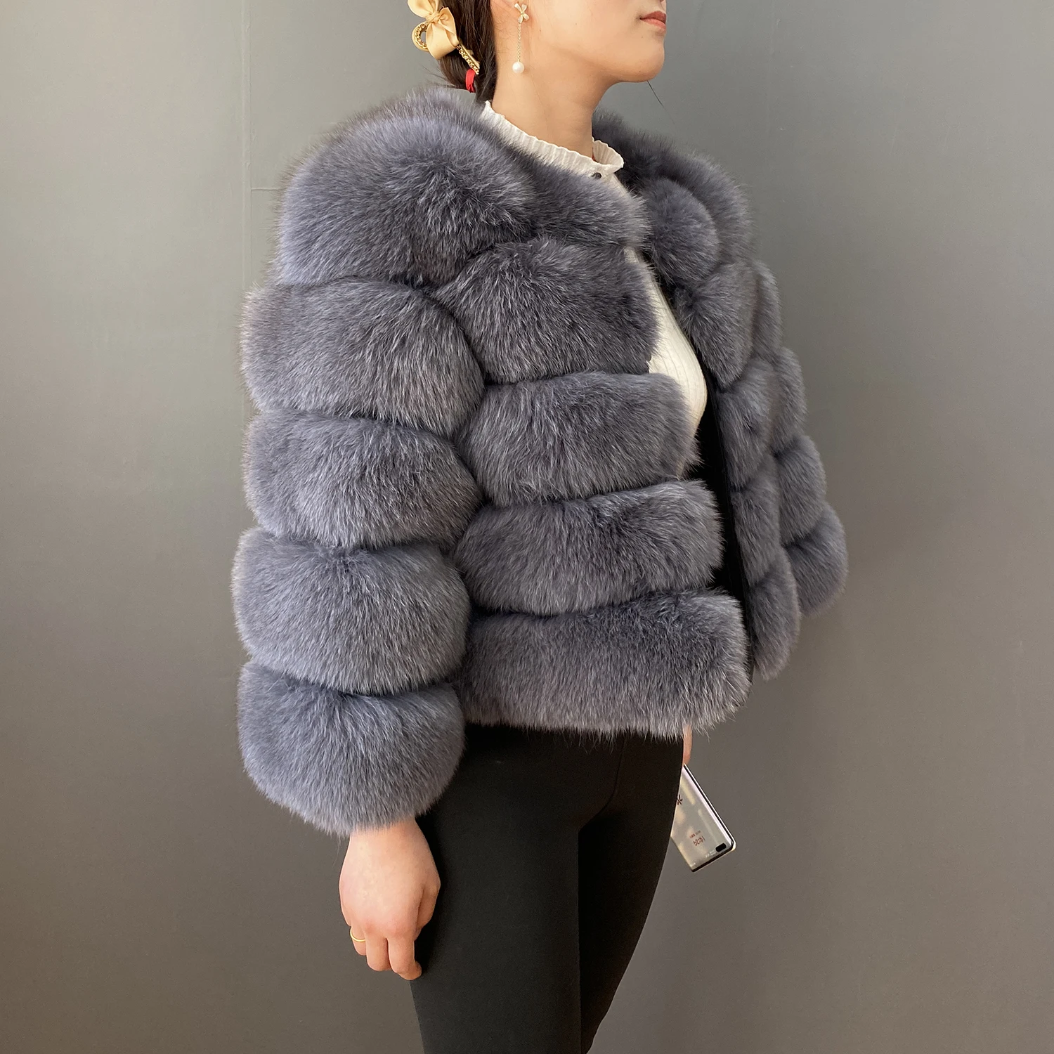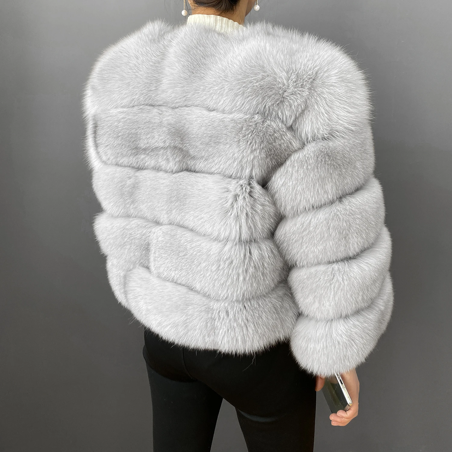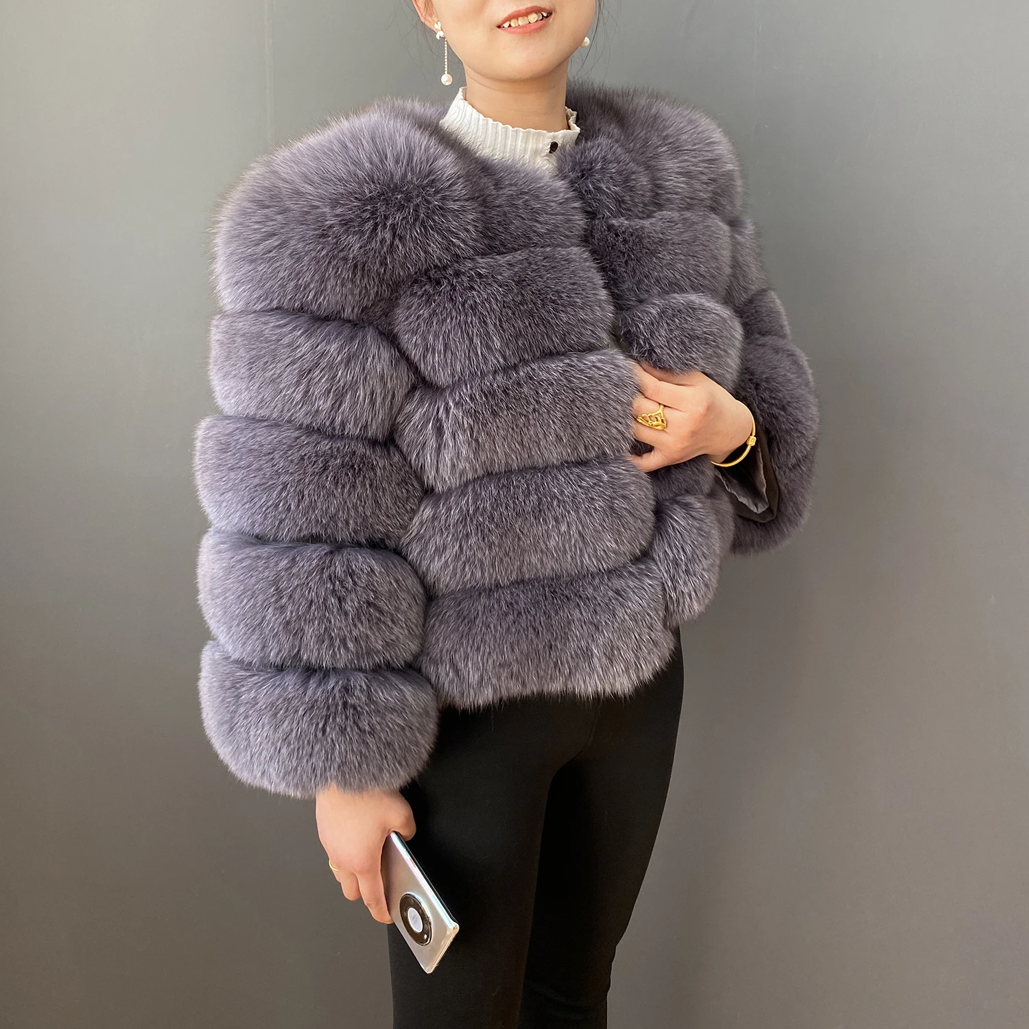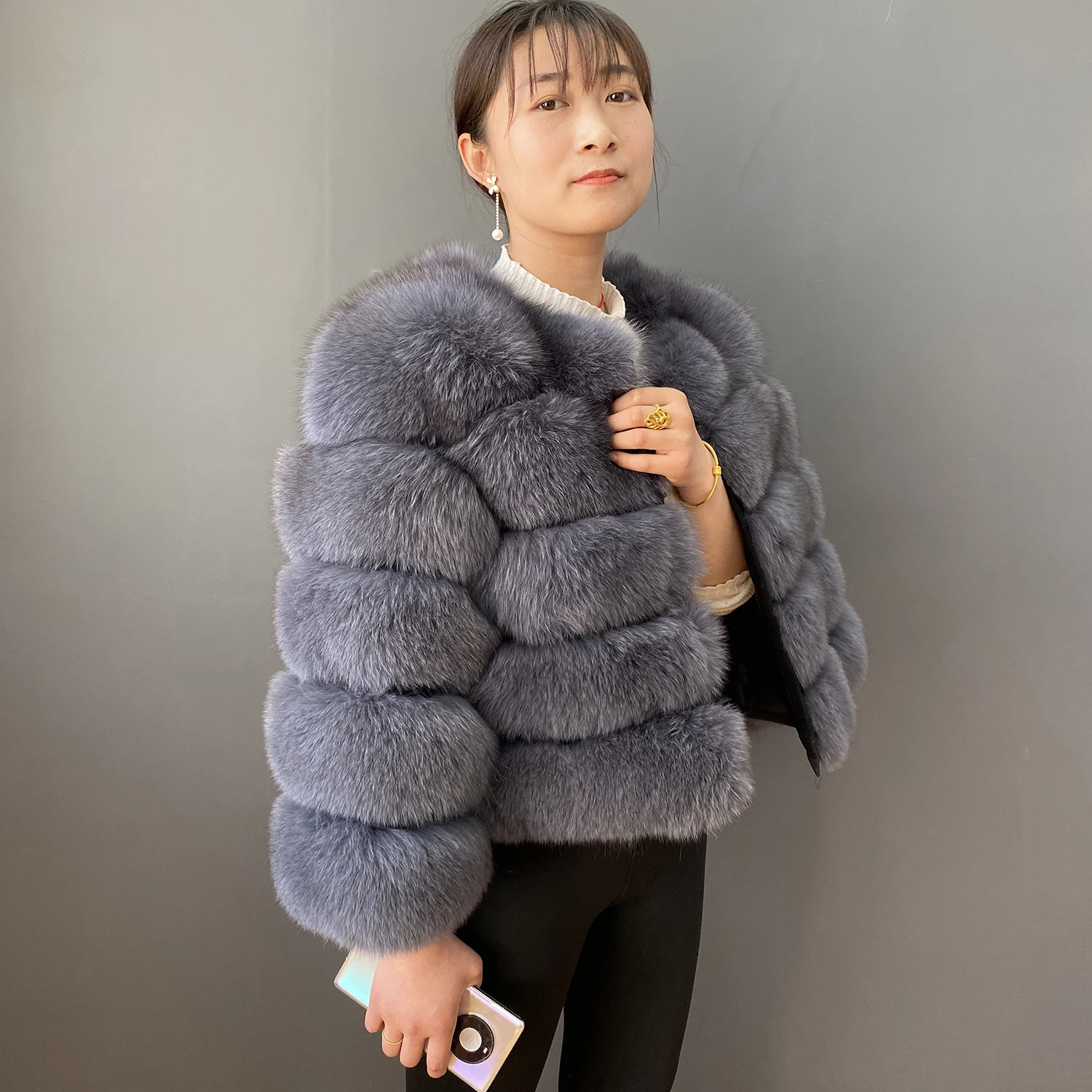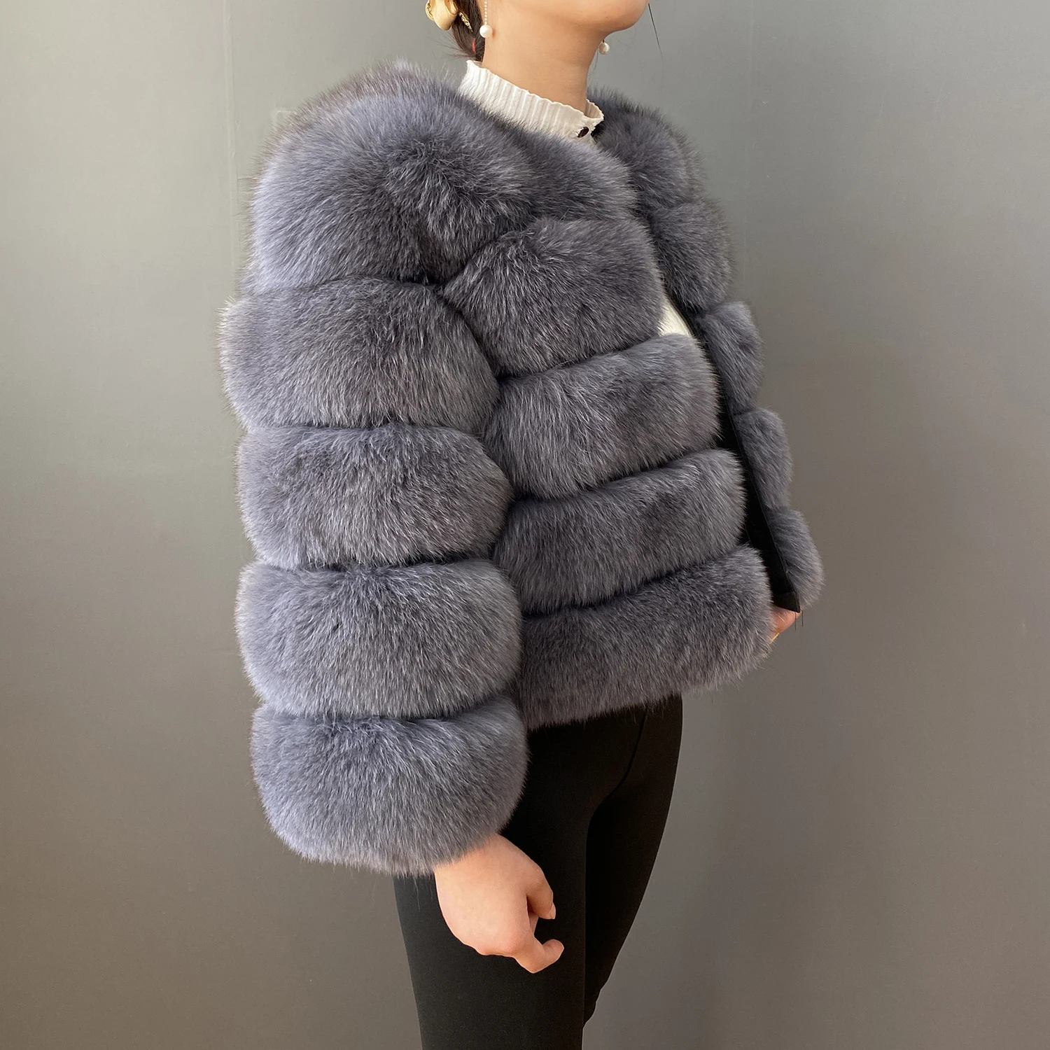 Winter Women's 50cm High Waist Style Short Natural Fox Fur Coats Real Fur Coat ASHENKAILAN 5 Rings High Fur