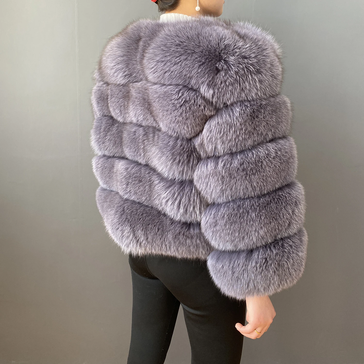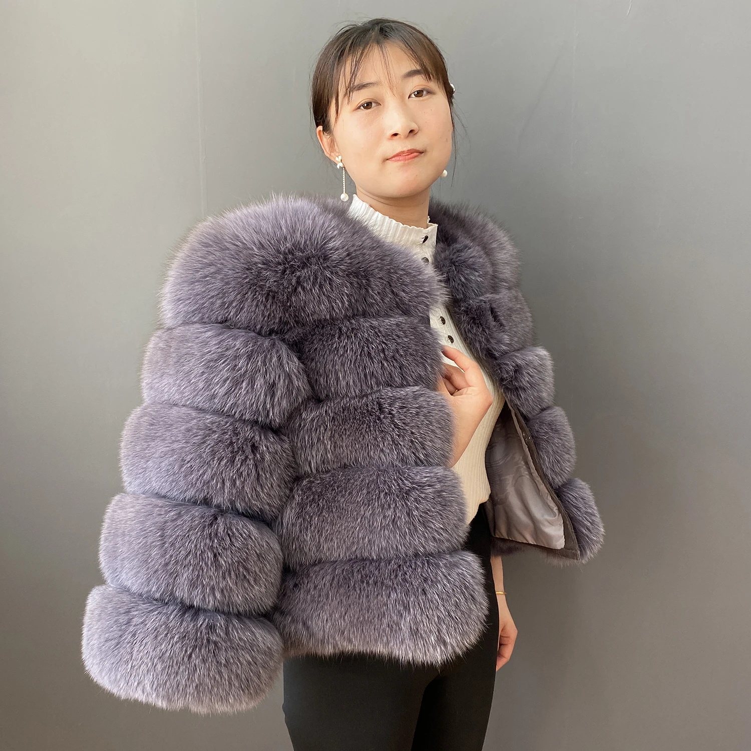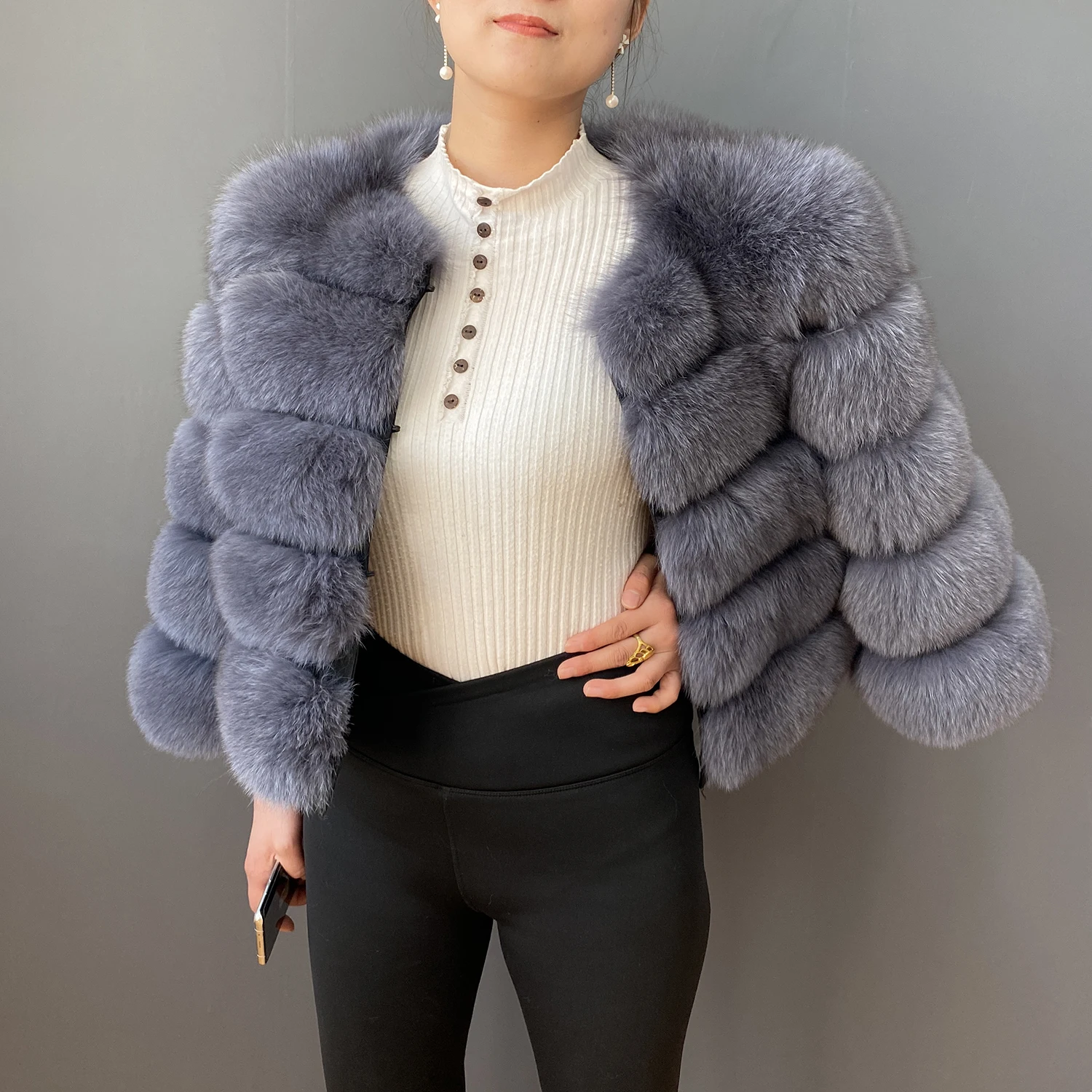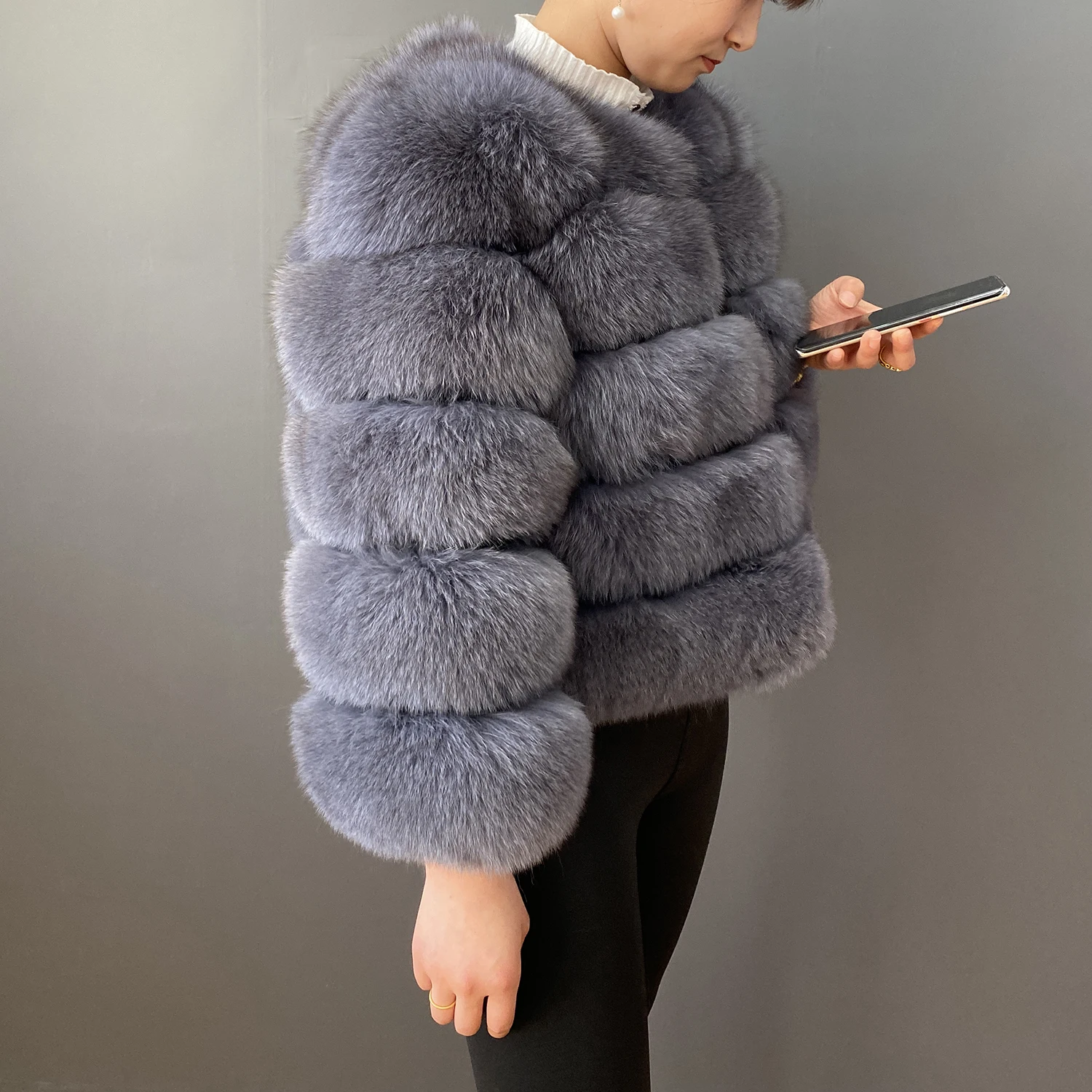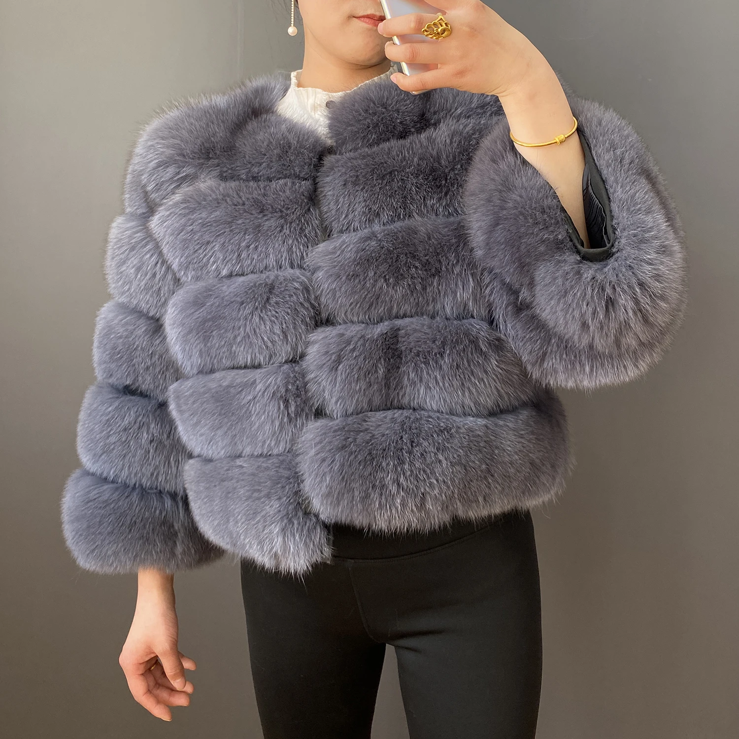 Winter Women's 50cm High Waist Style Short Natural Fox Fur Coats Real Fur Coat ASHENKAILAN 5 Rings High Fur