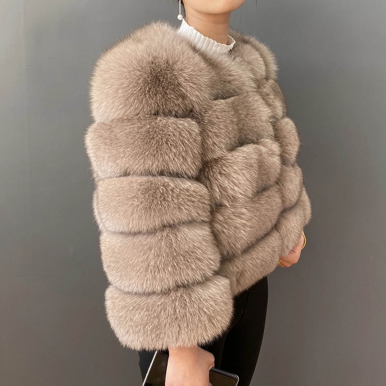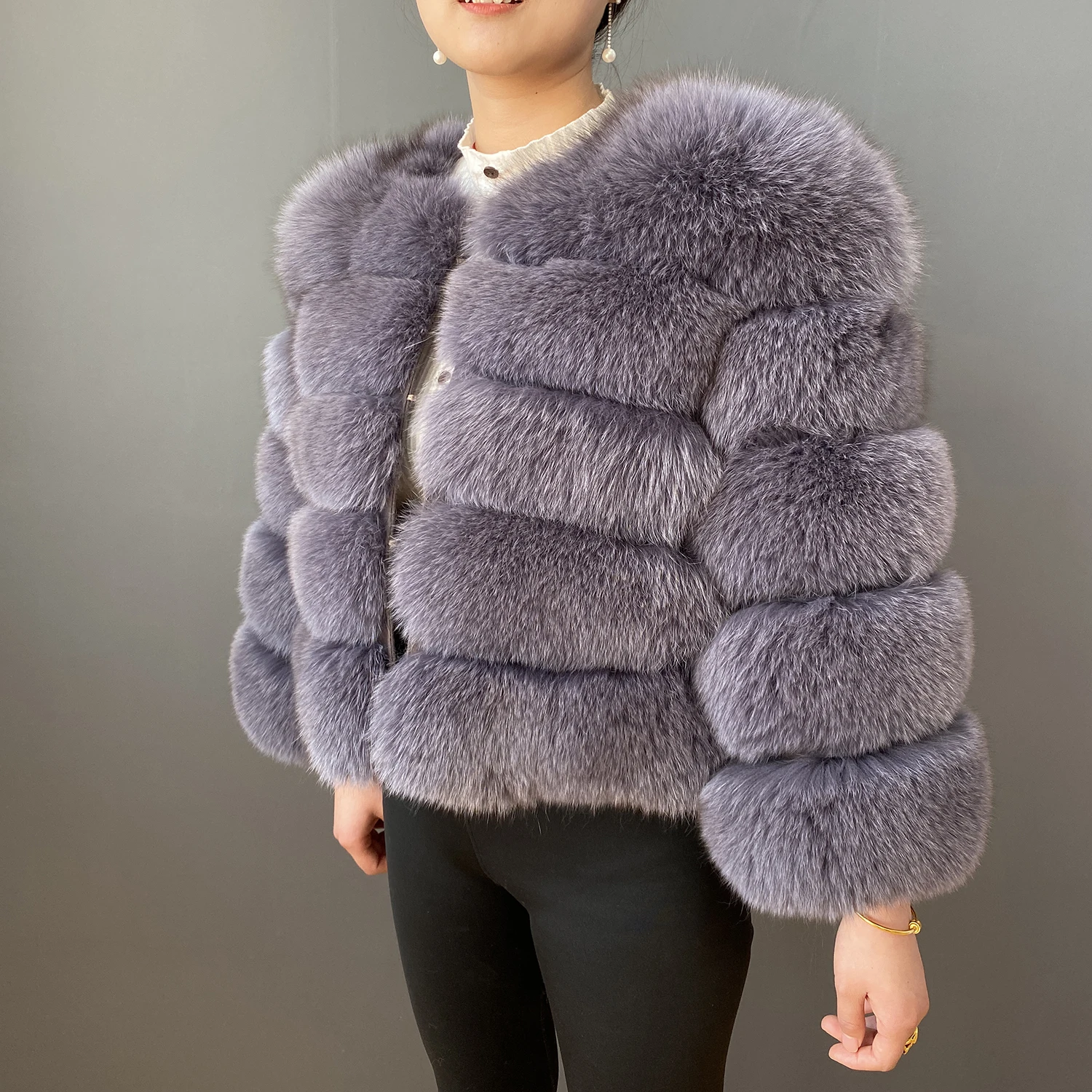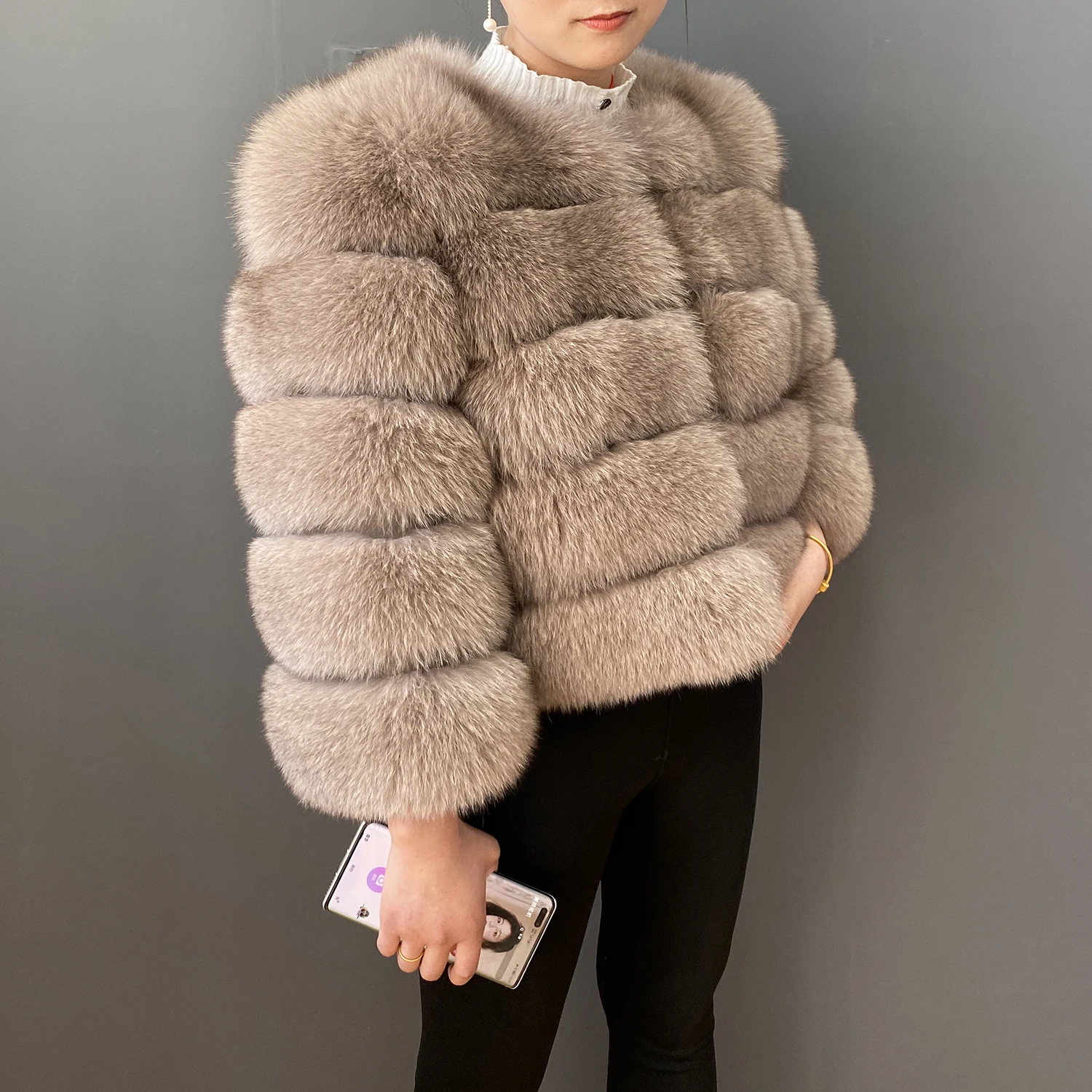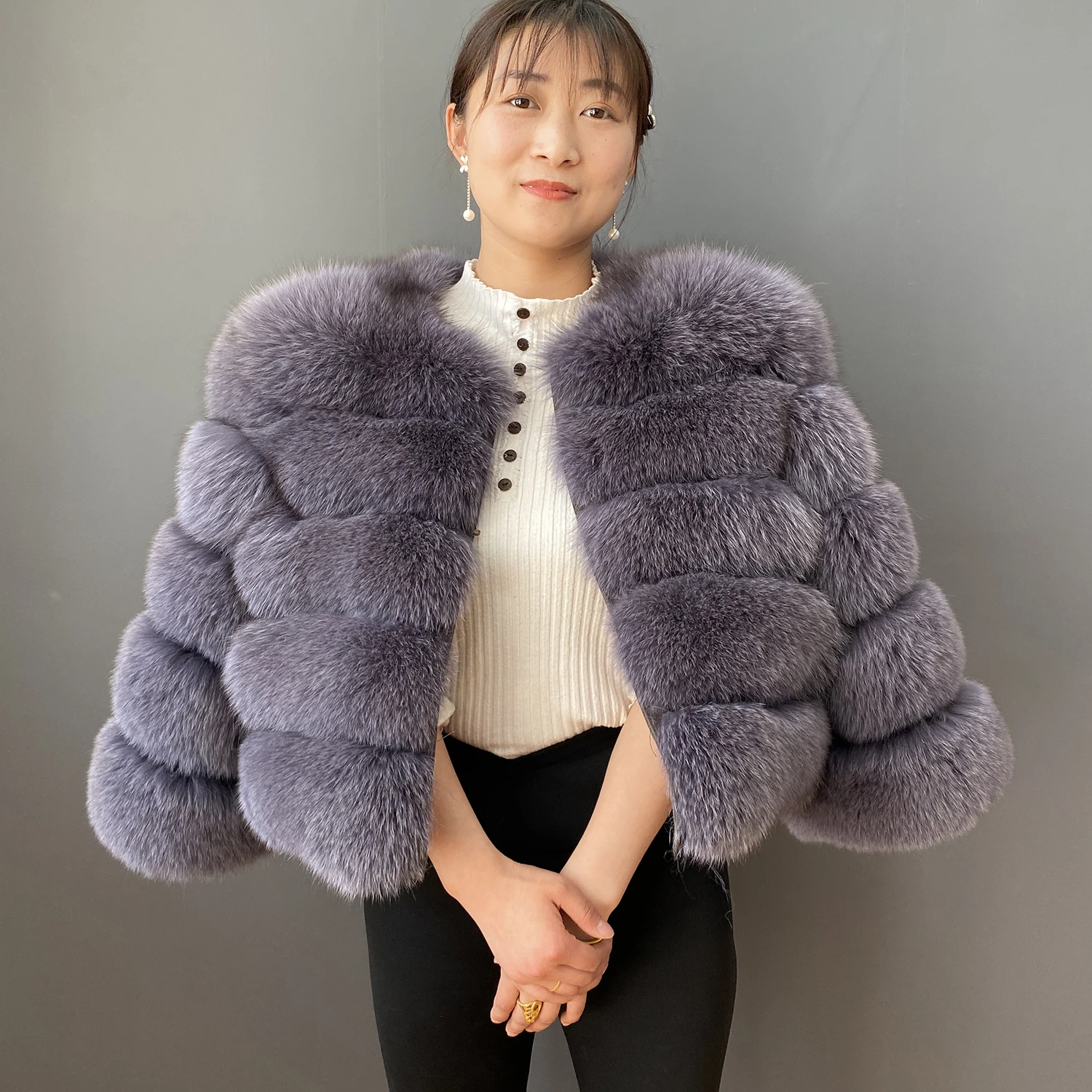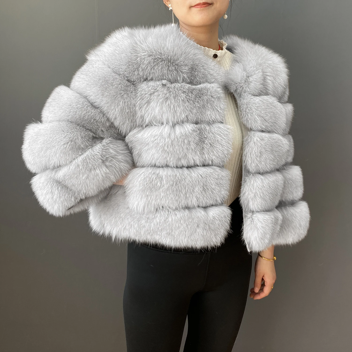 Winter Women's 50cm High Waist Style Short Natural Fox Fur Coats Real Fur Coat ASHENKAILAN 5 Rings High Fur