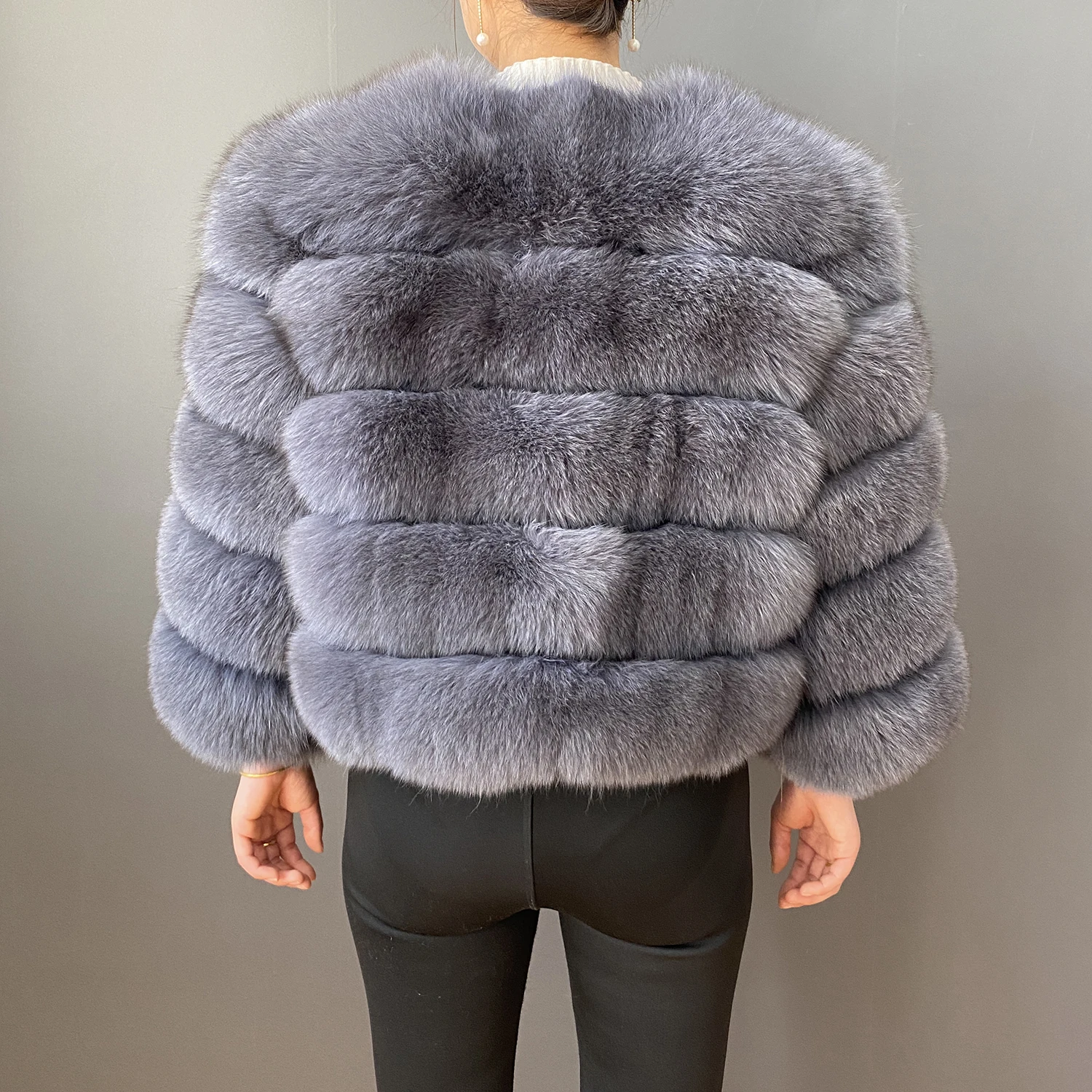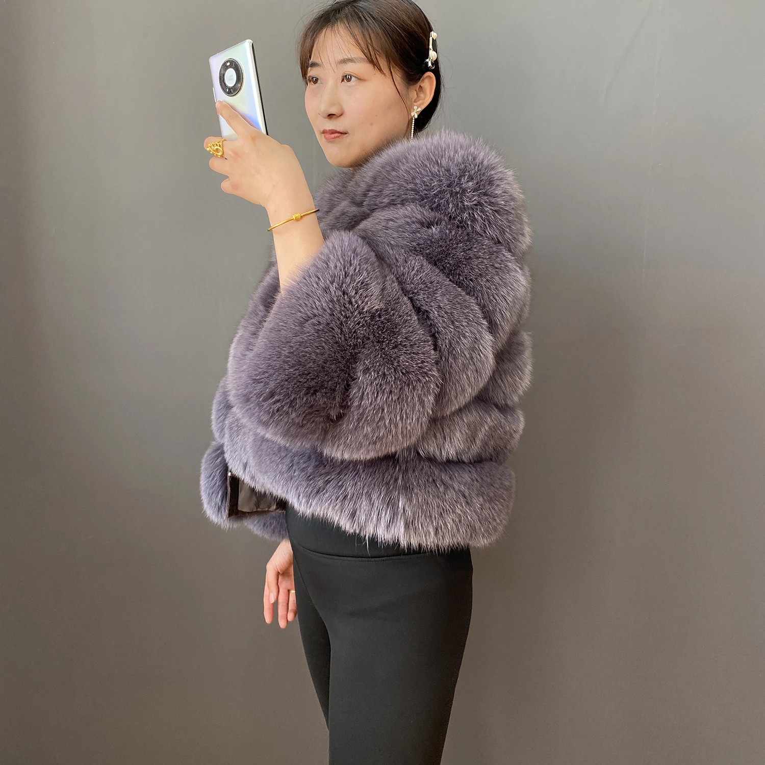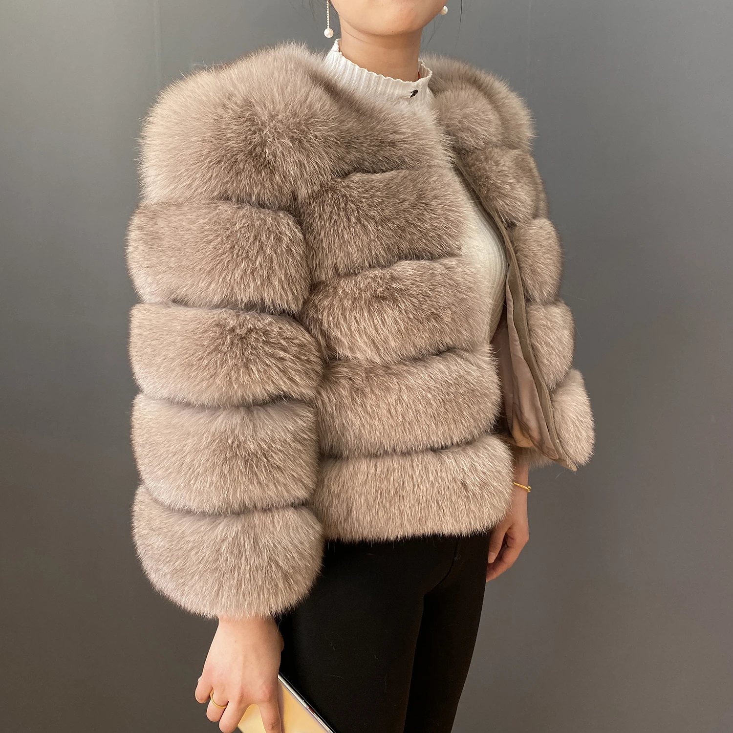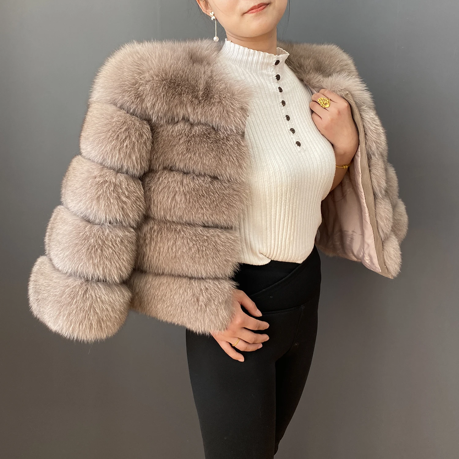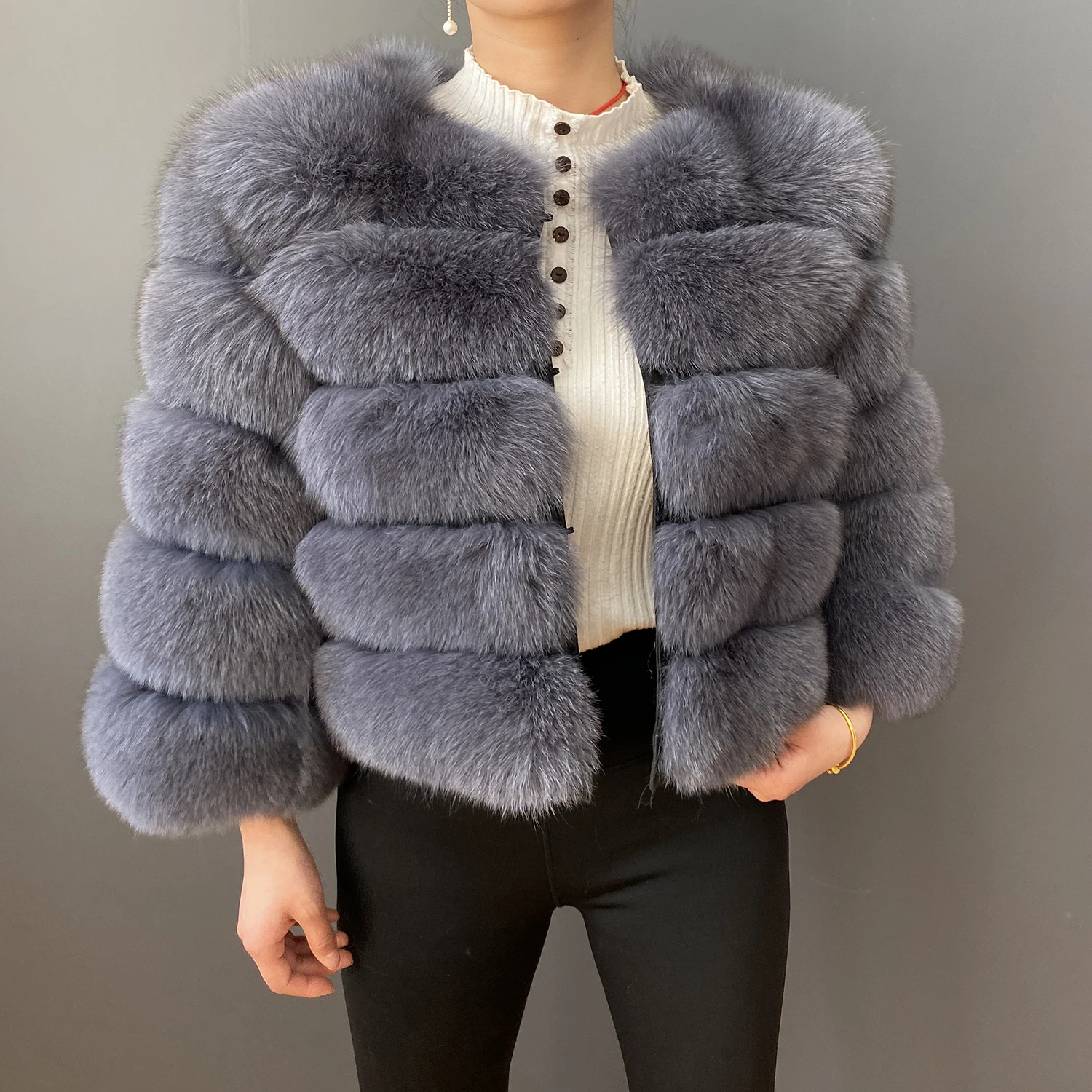 Winter Women's 50cm High Waist Style Short Natural Fox Fur Coats Real Fur Coat ASHENKAILAN 5 Rings High Fur