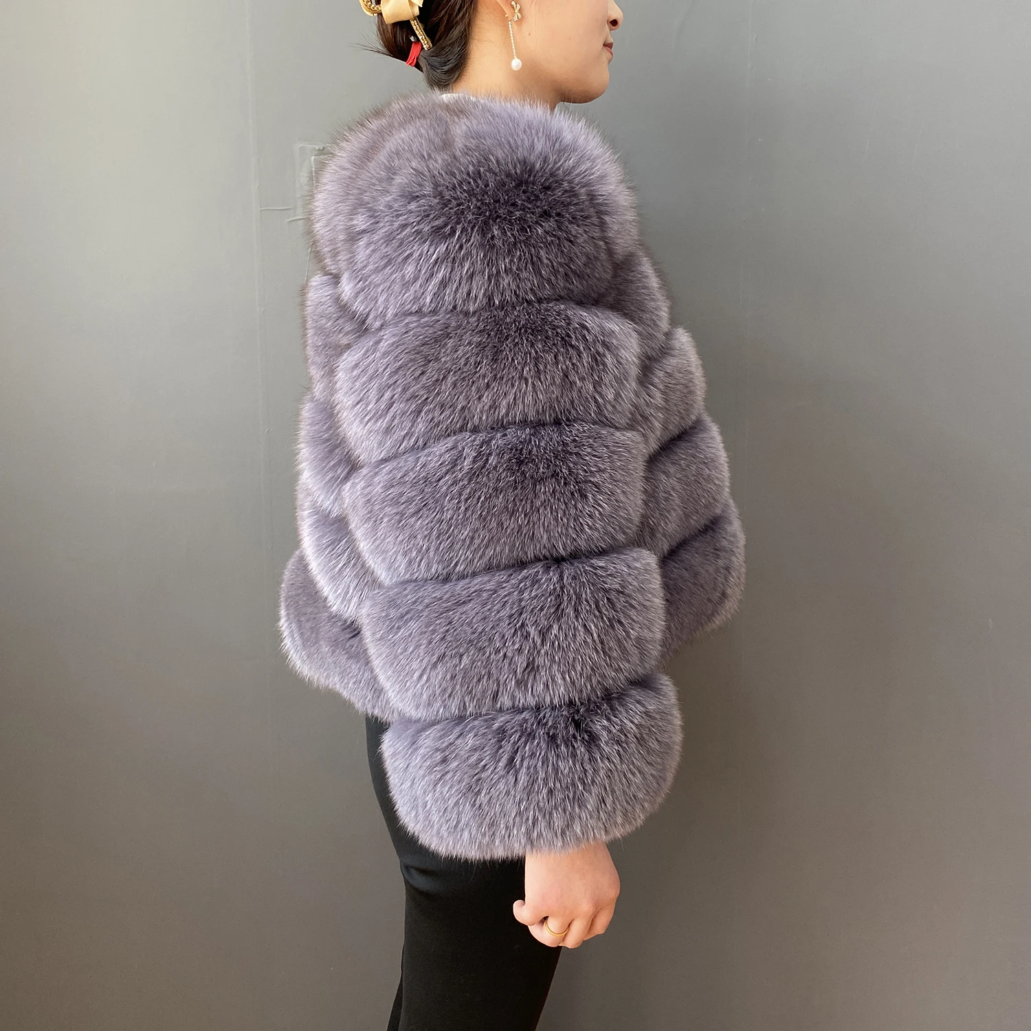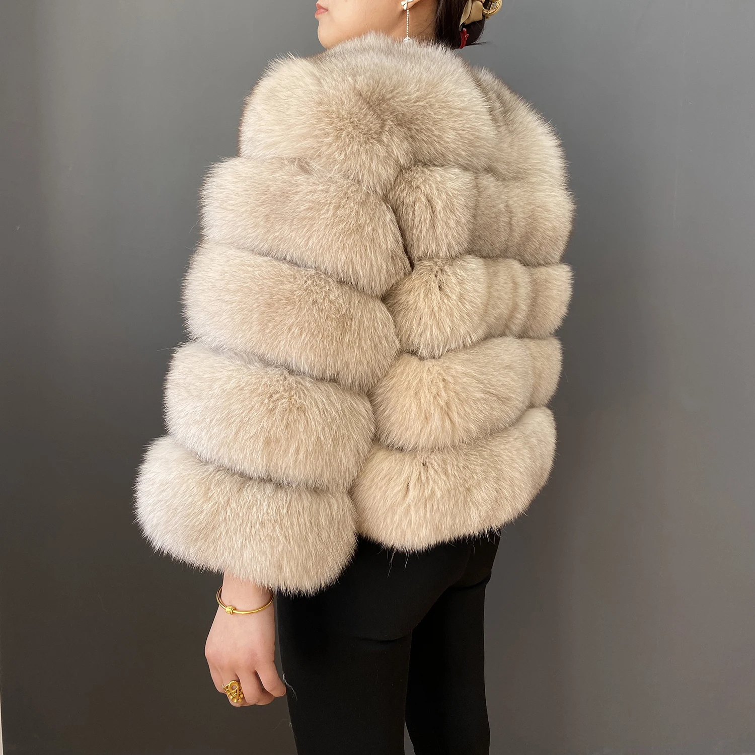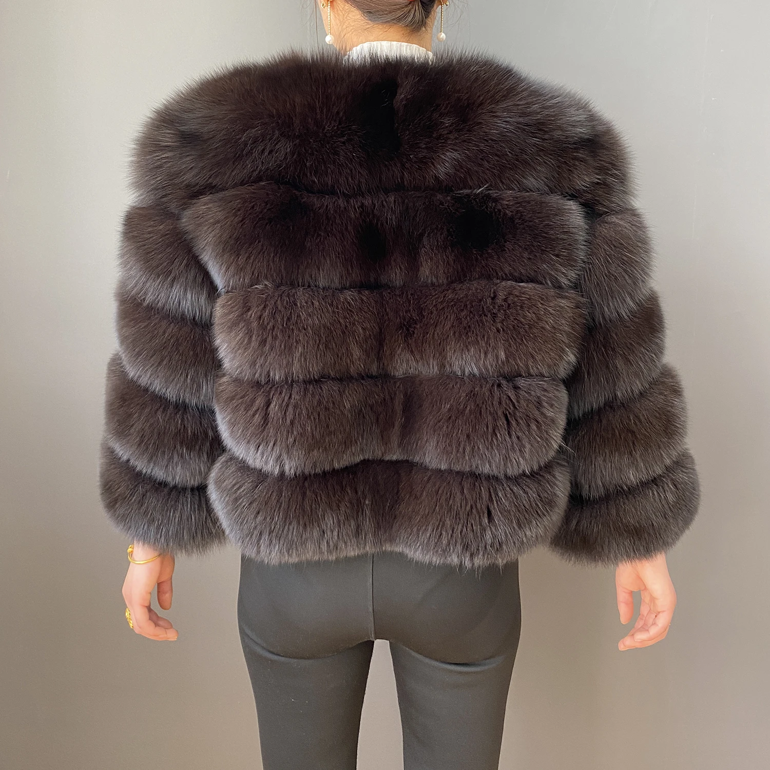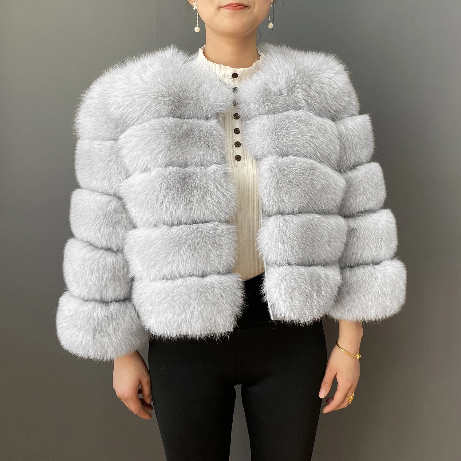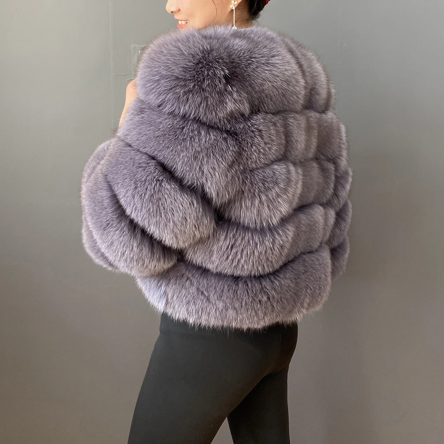 Winter Women's 50cm High Waist Style Short Natural Fox Fur Coats Real Fur Coat ASHENKAILAN 5 Rings High Fur
