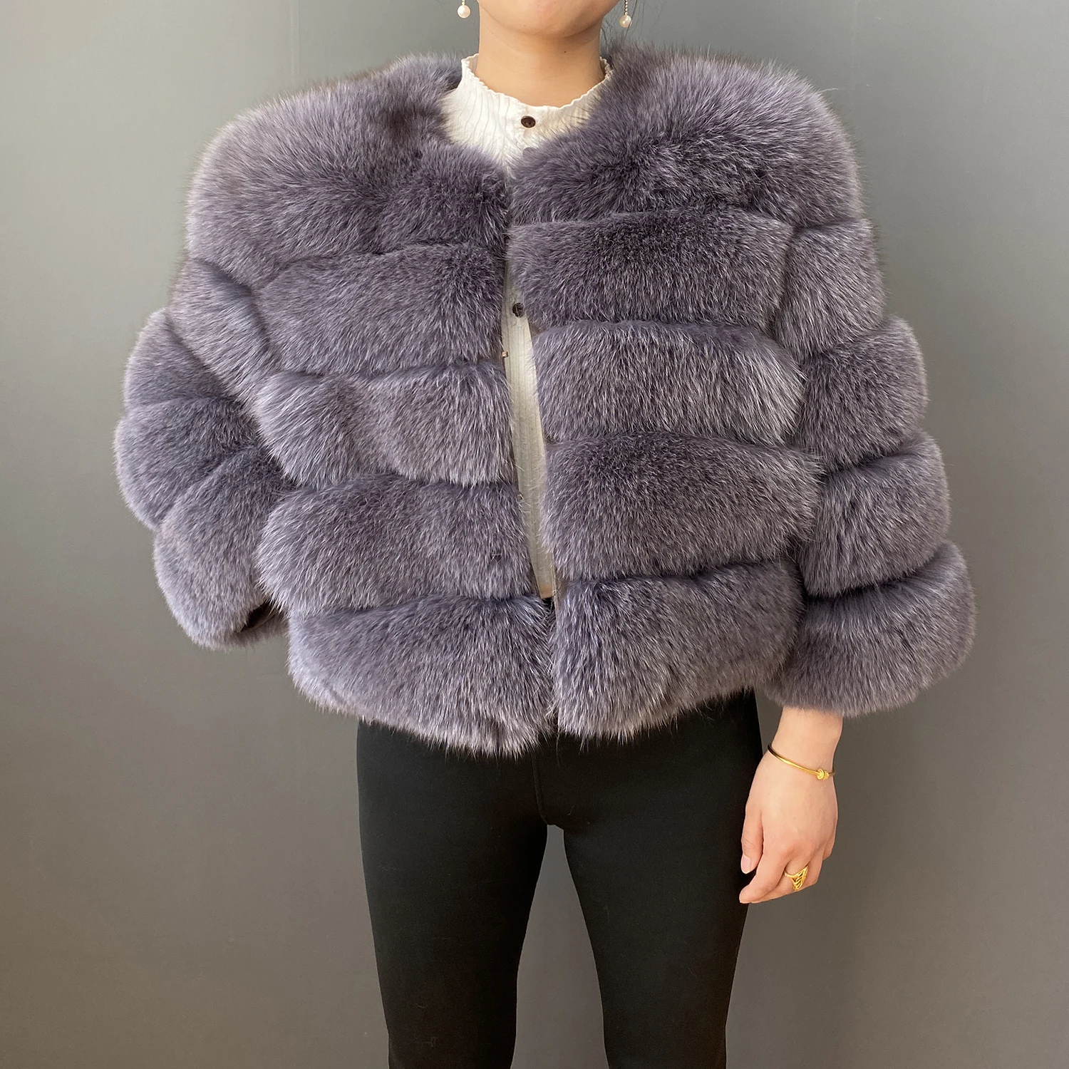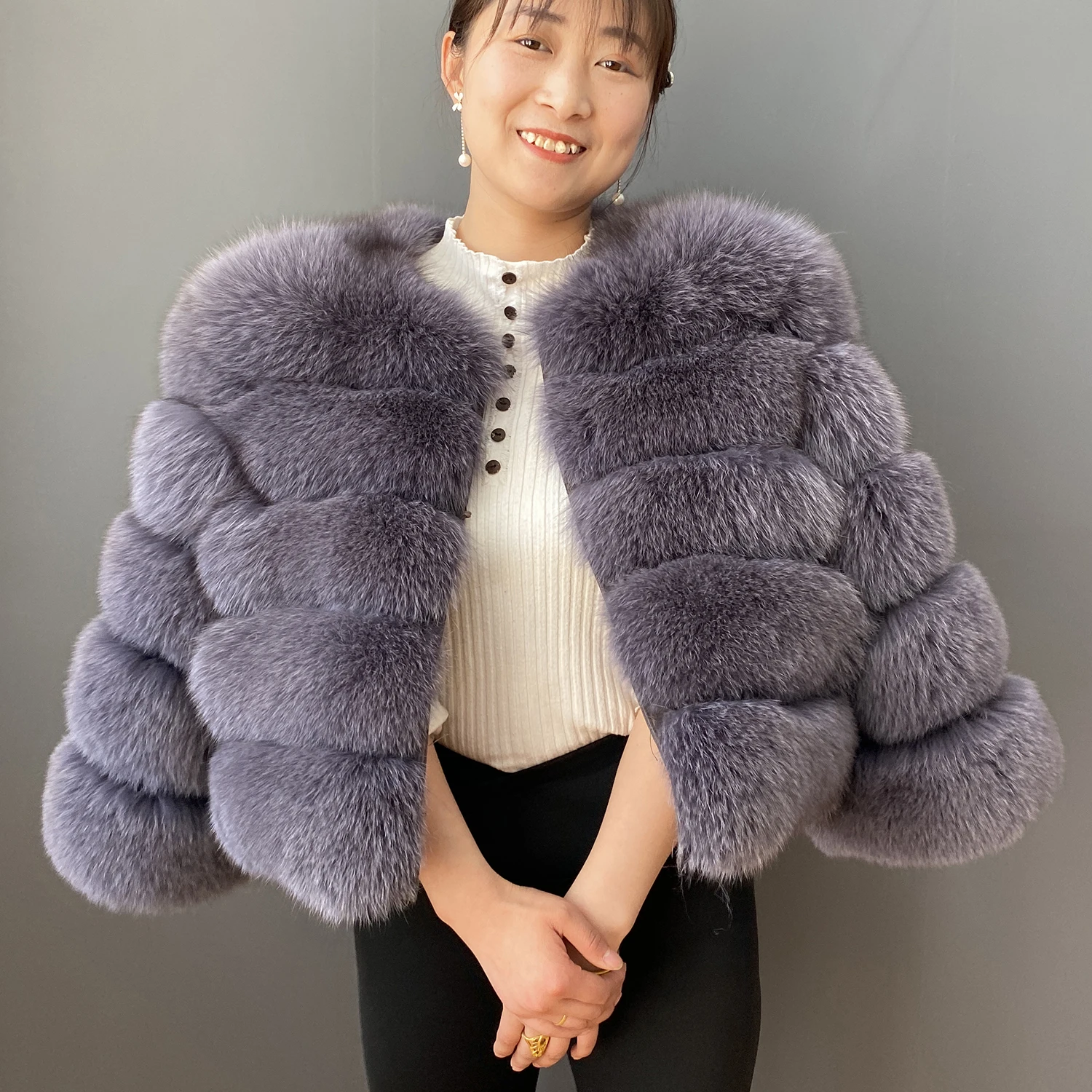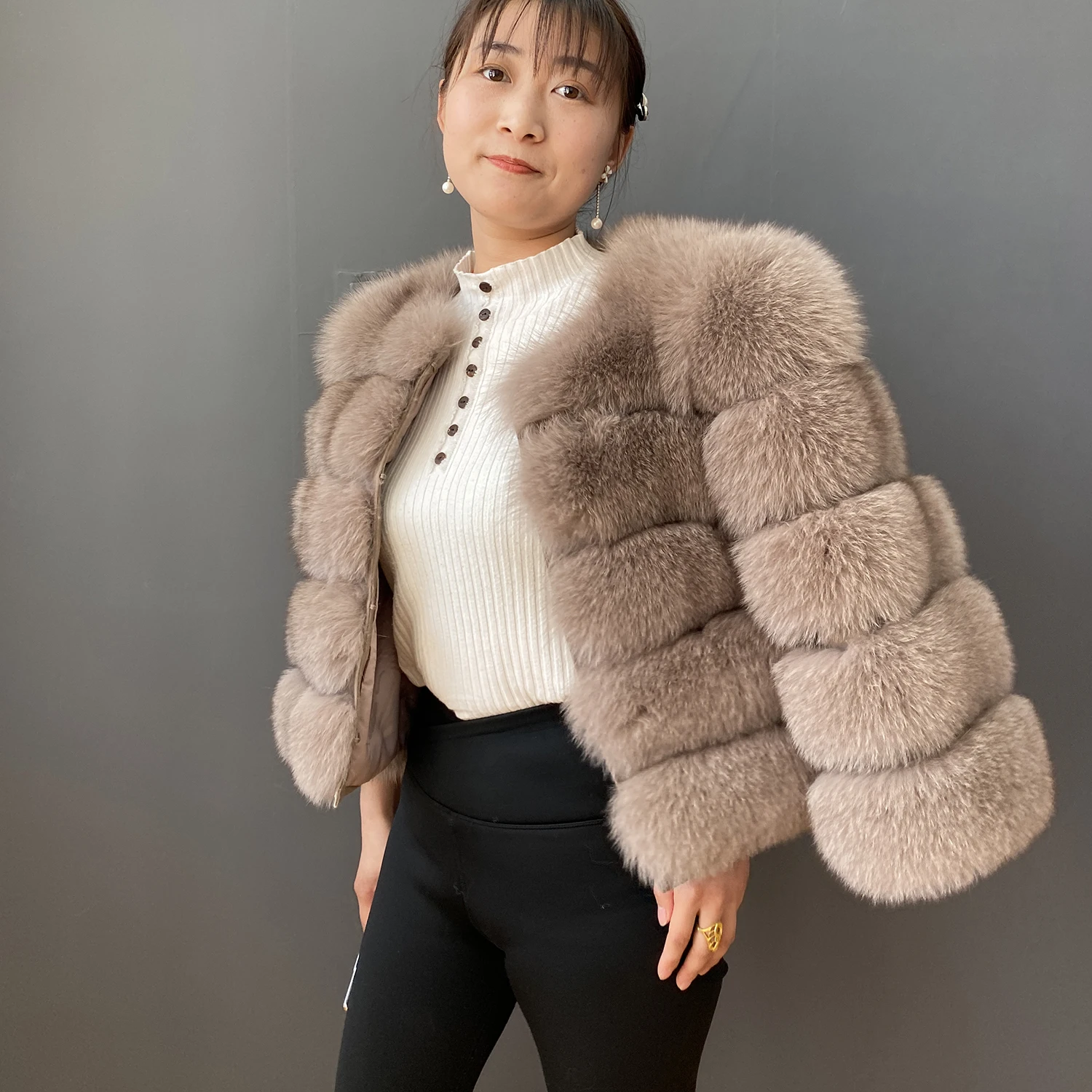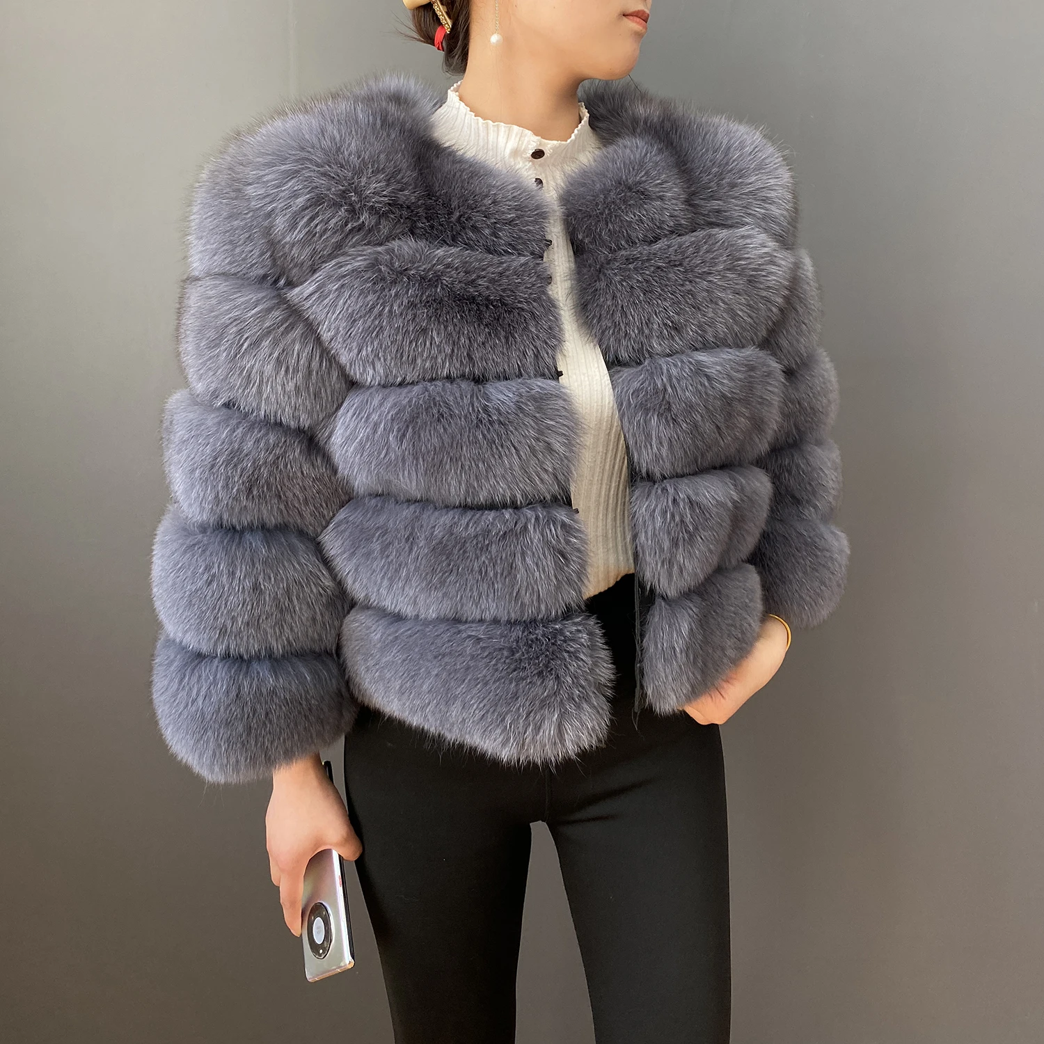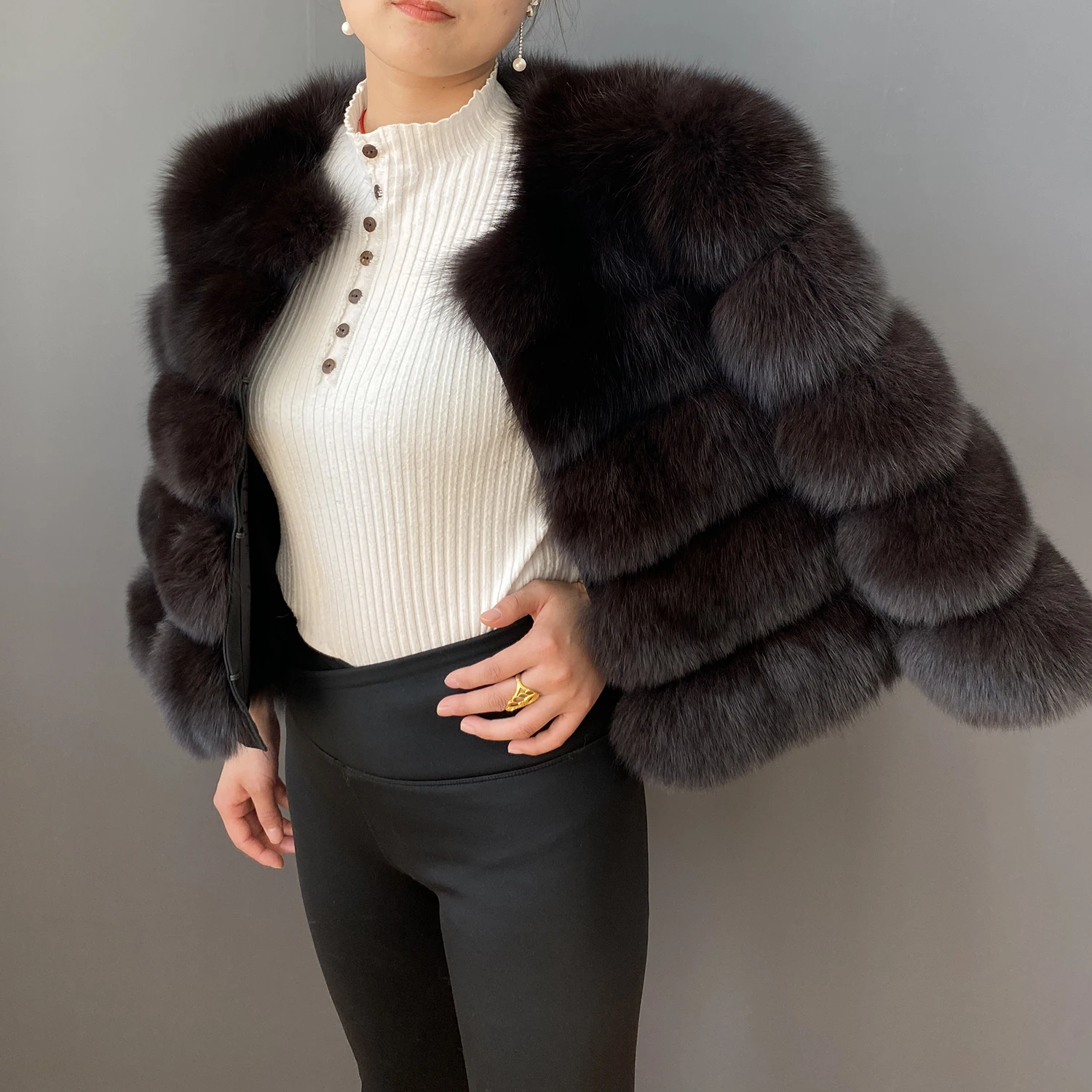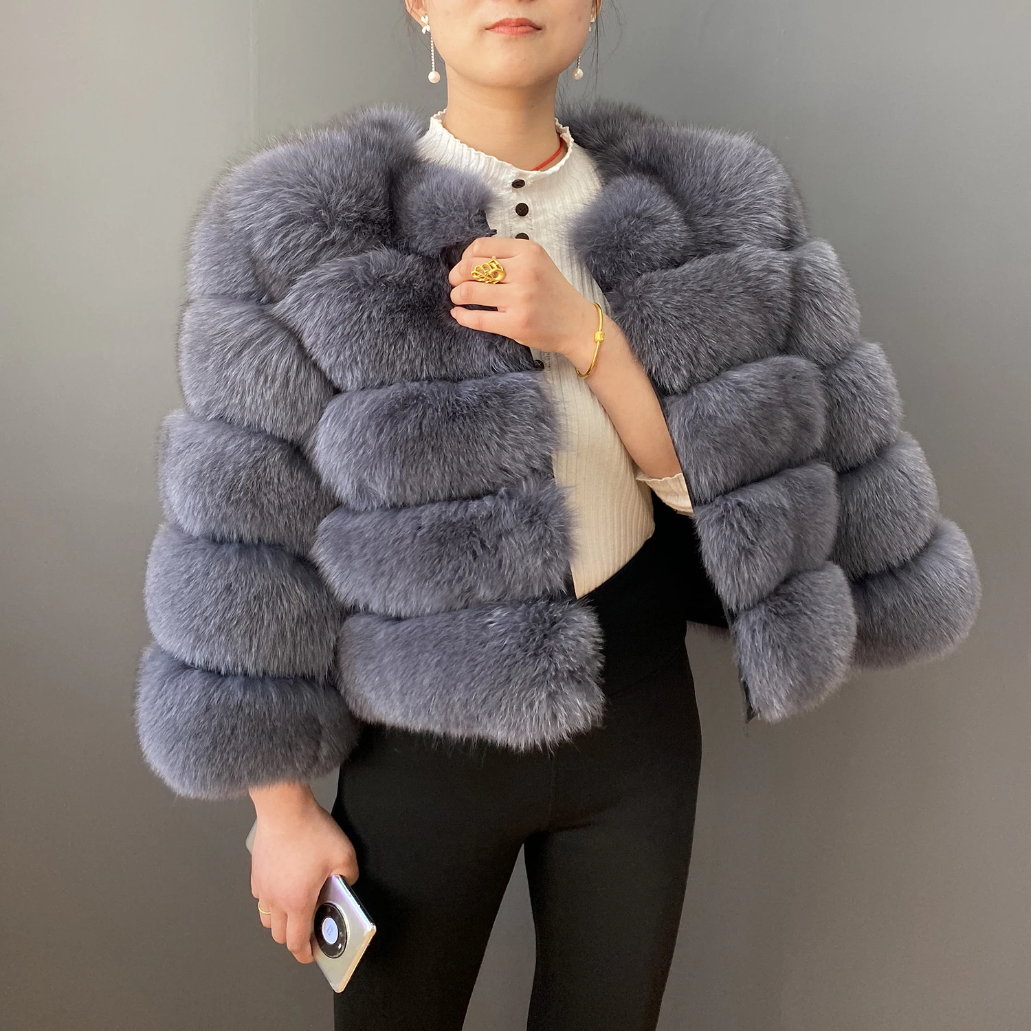 Winter Women's 50cm High Waist Style Short Natural Fox Fur Coats Real Fur Coat ASHENKAILAN 5 Rings High Fur