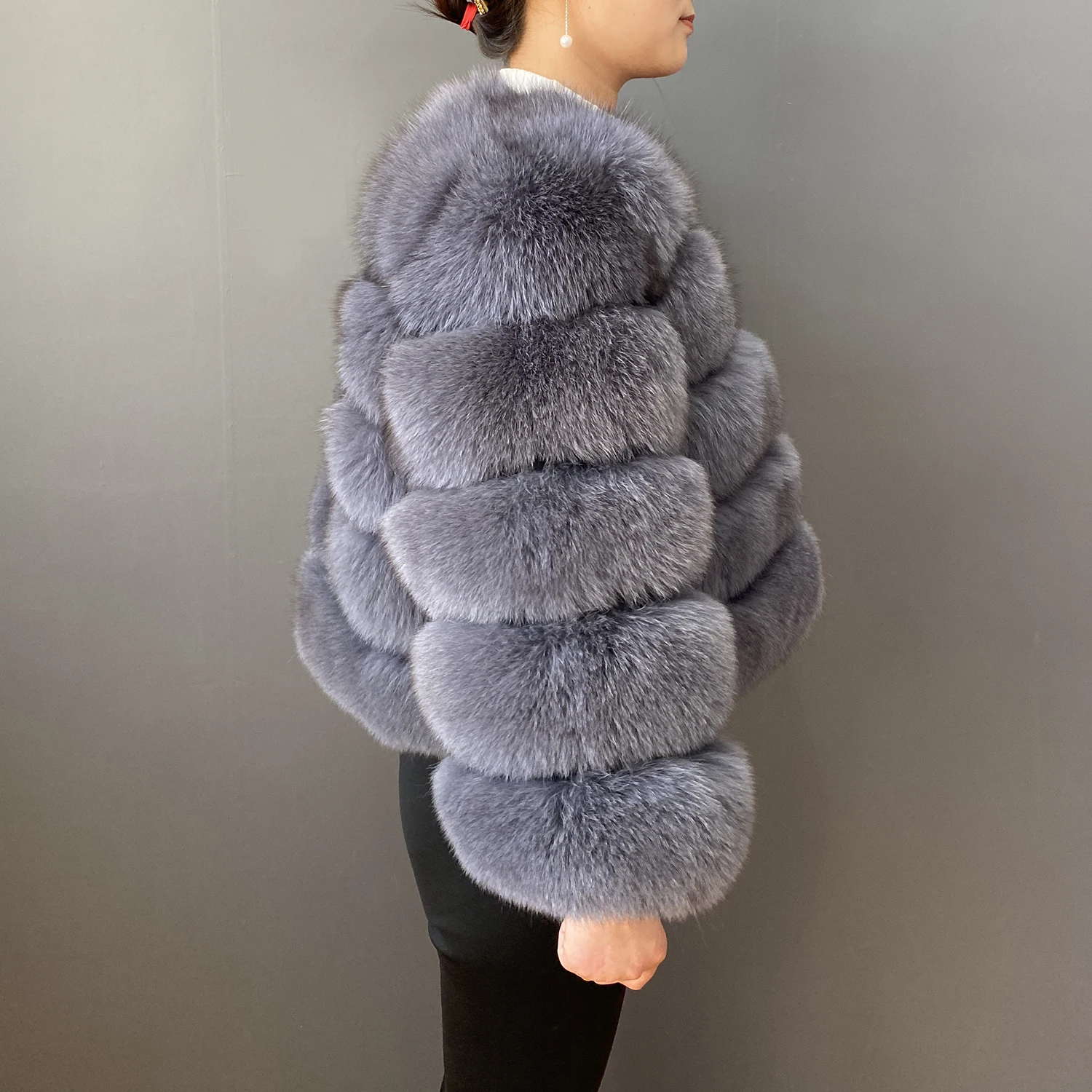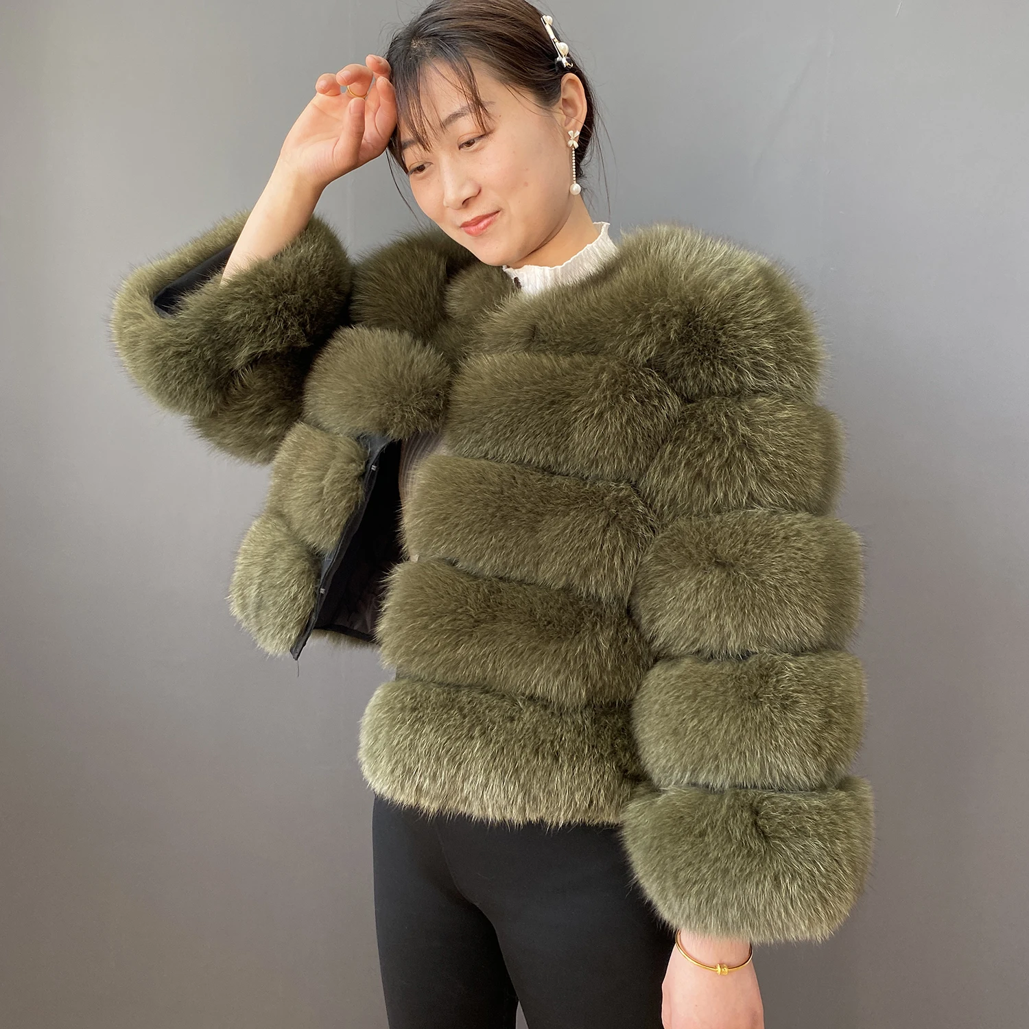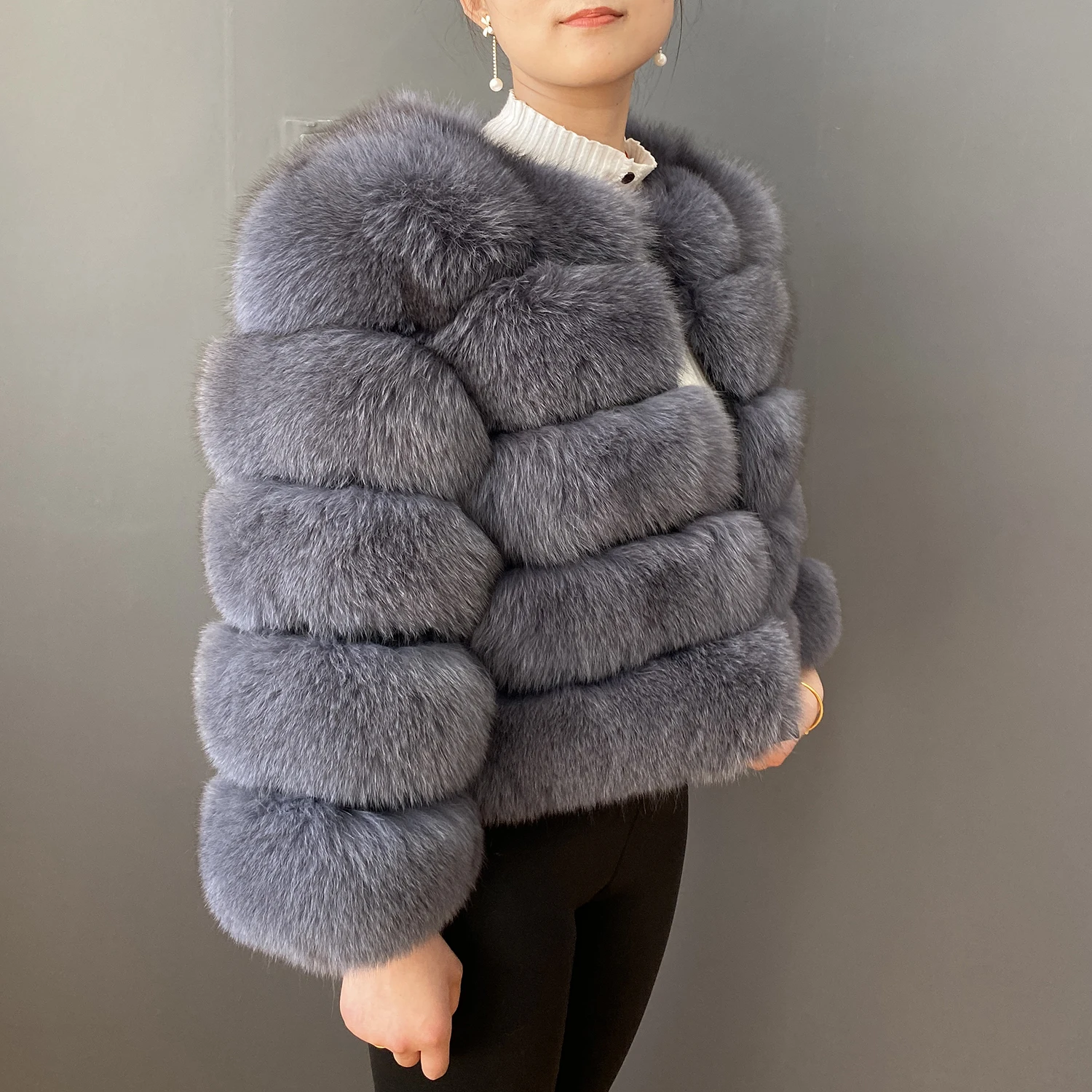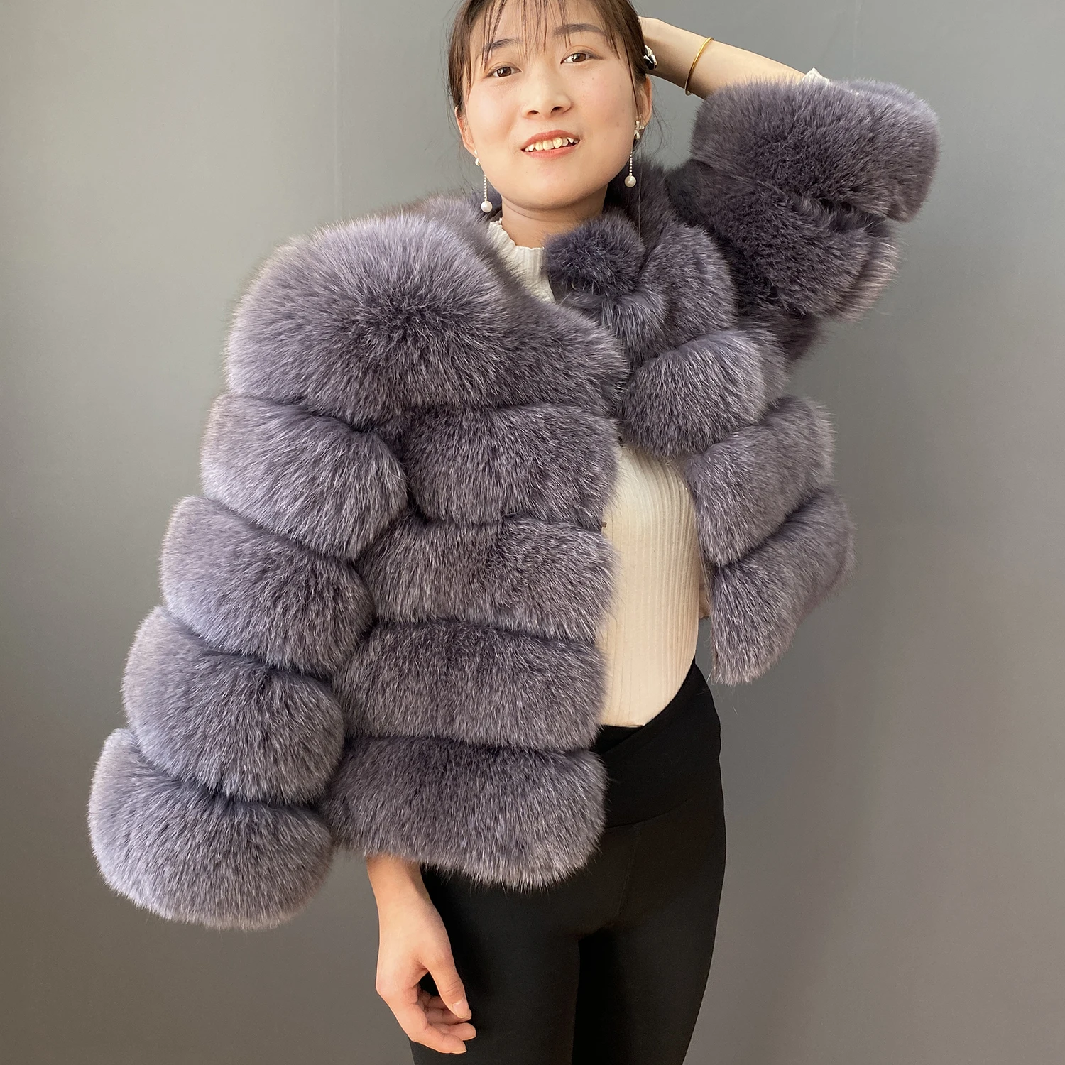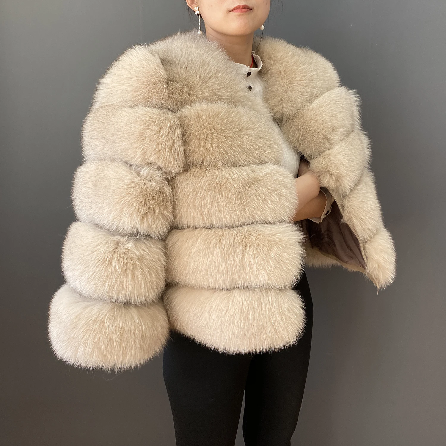 Winter Women's 50cm High Waist Style Short Natural Fox Fur Coats Real Fur Coat ASHENKAILAN 5 Rings High Fur