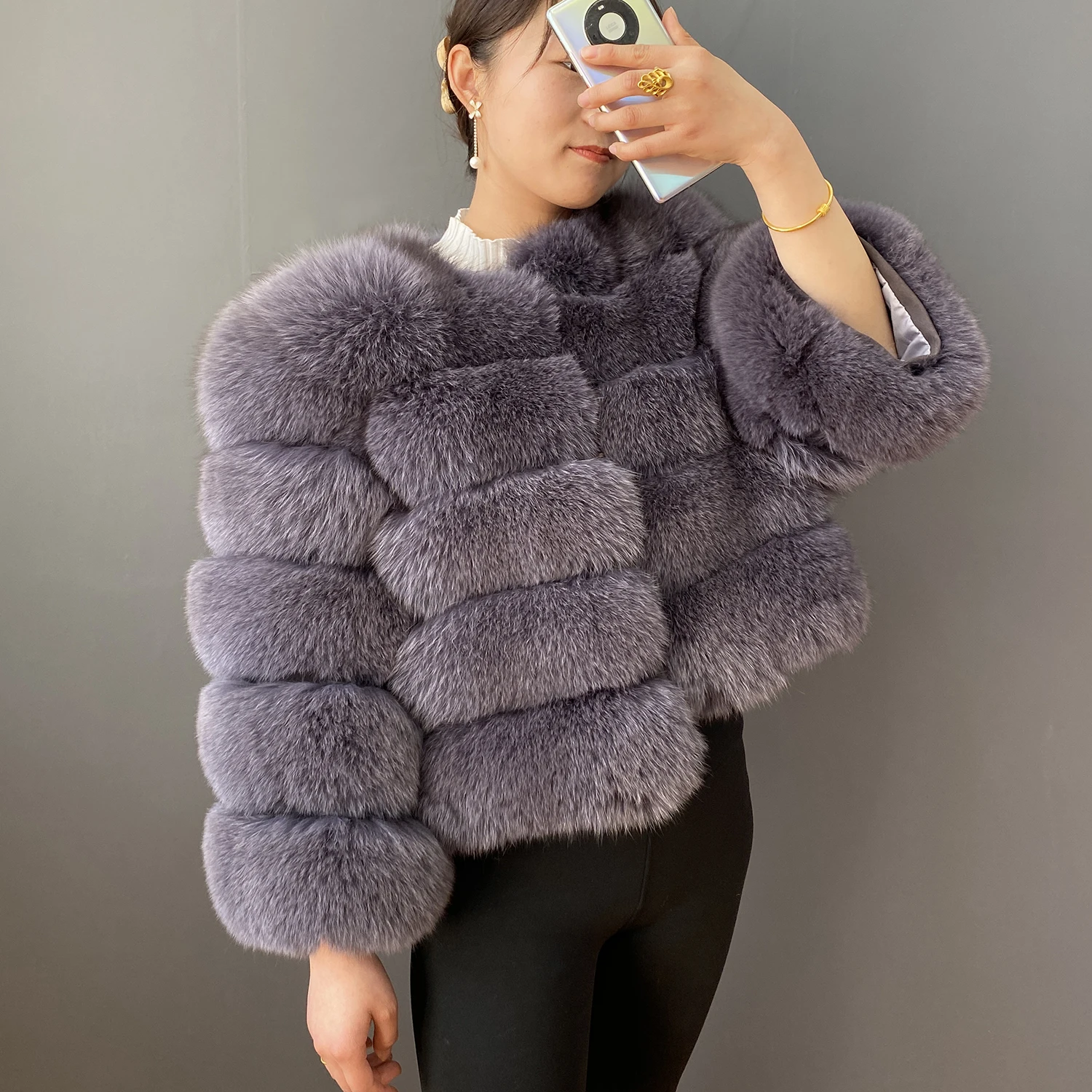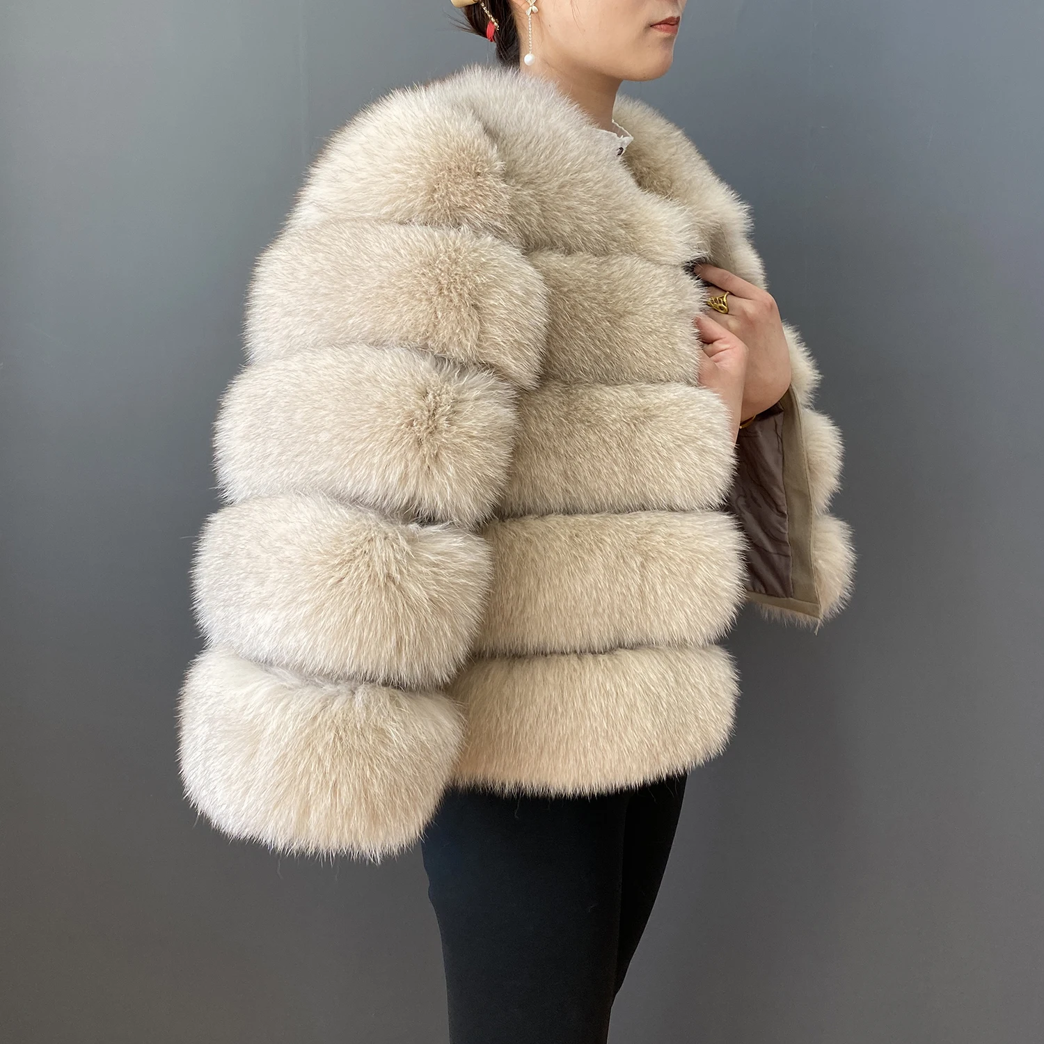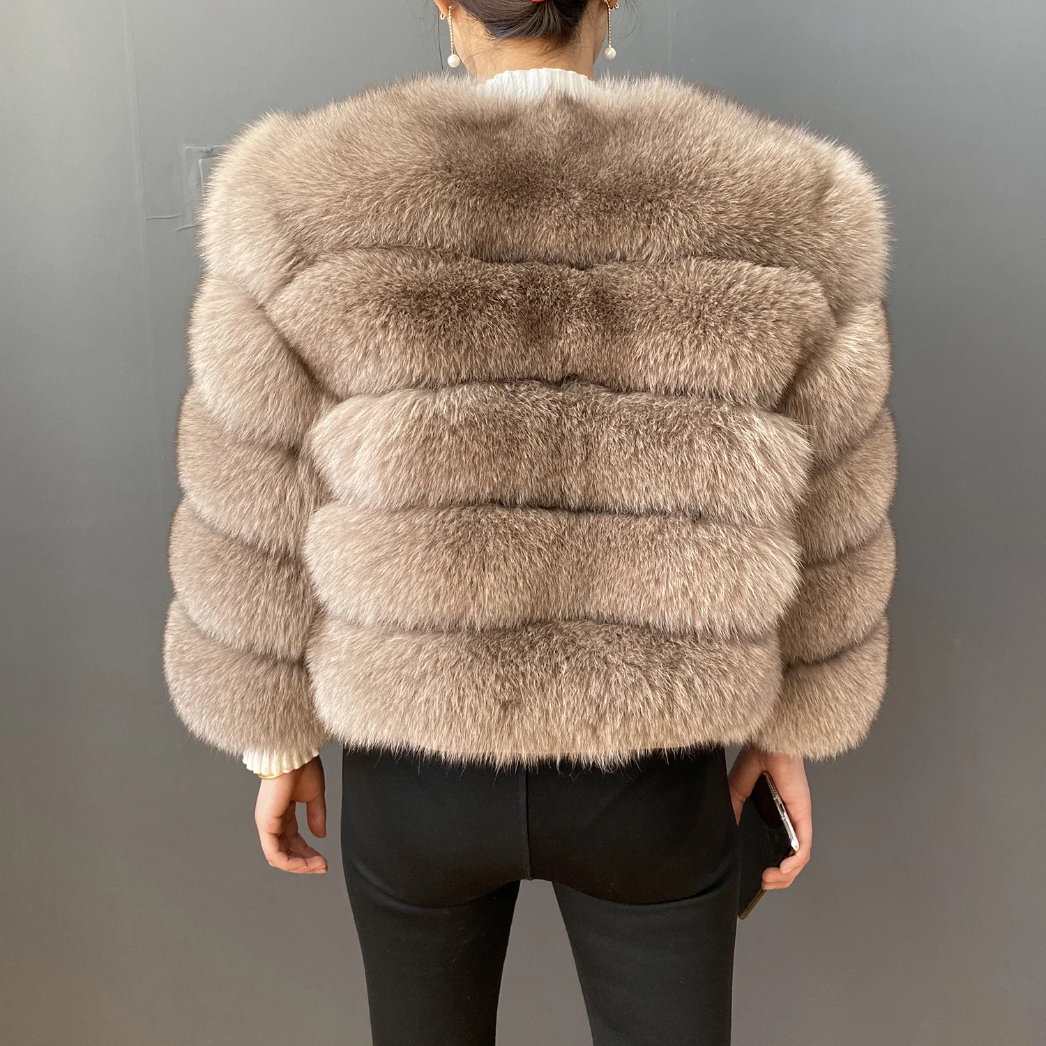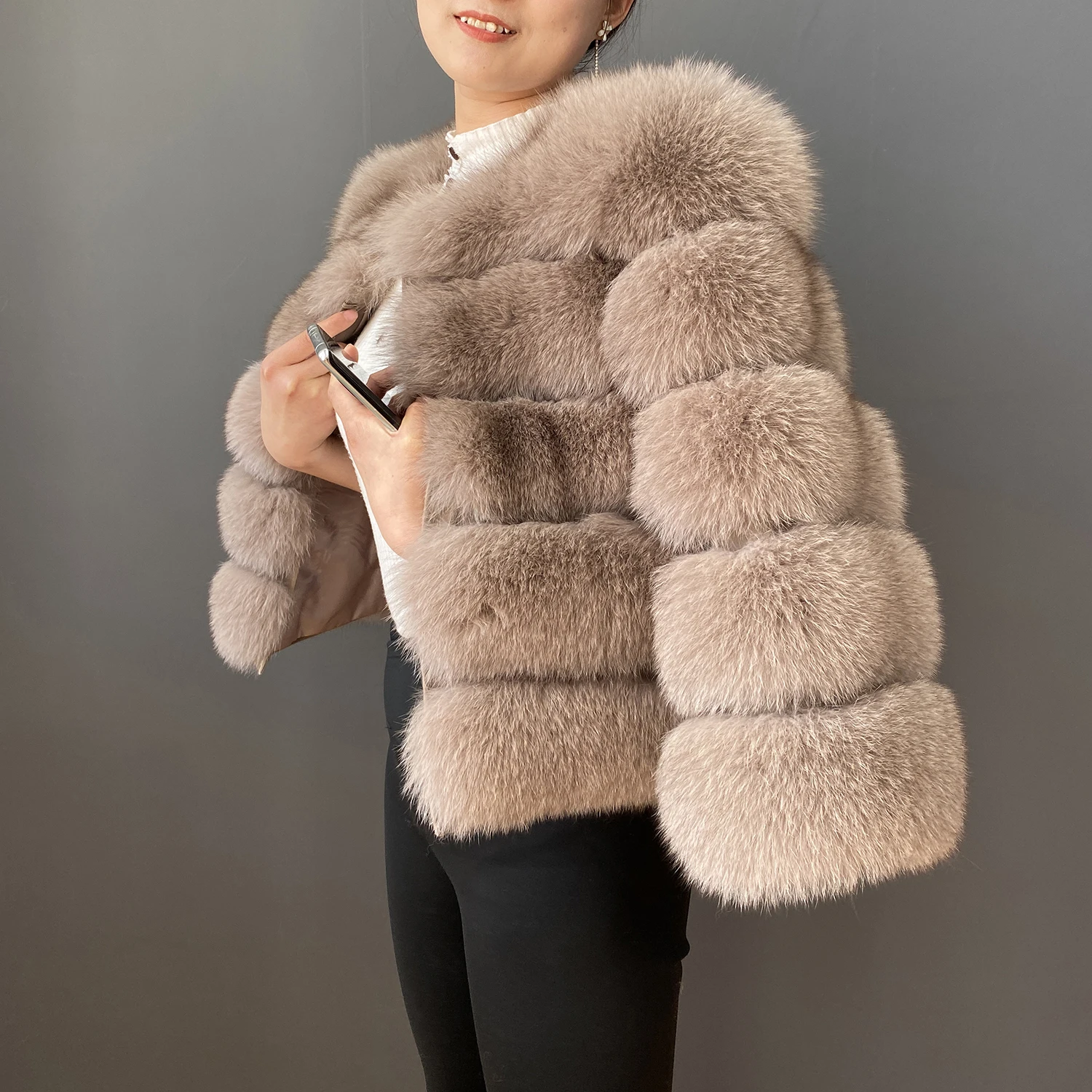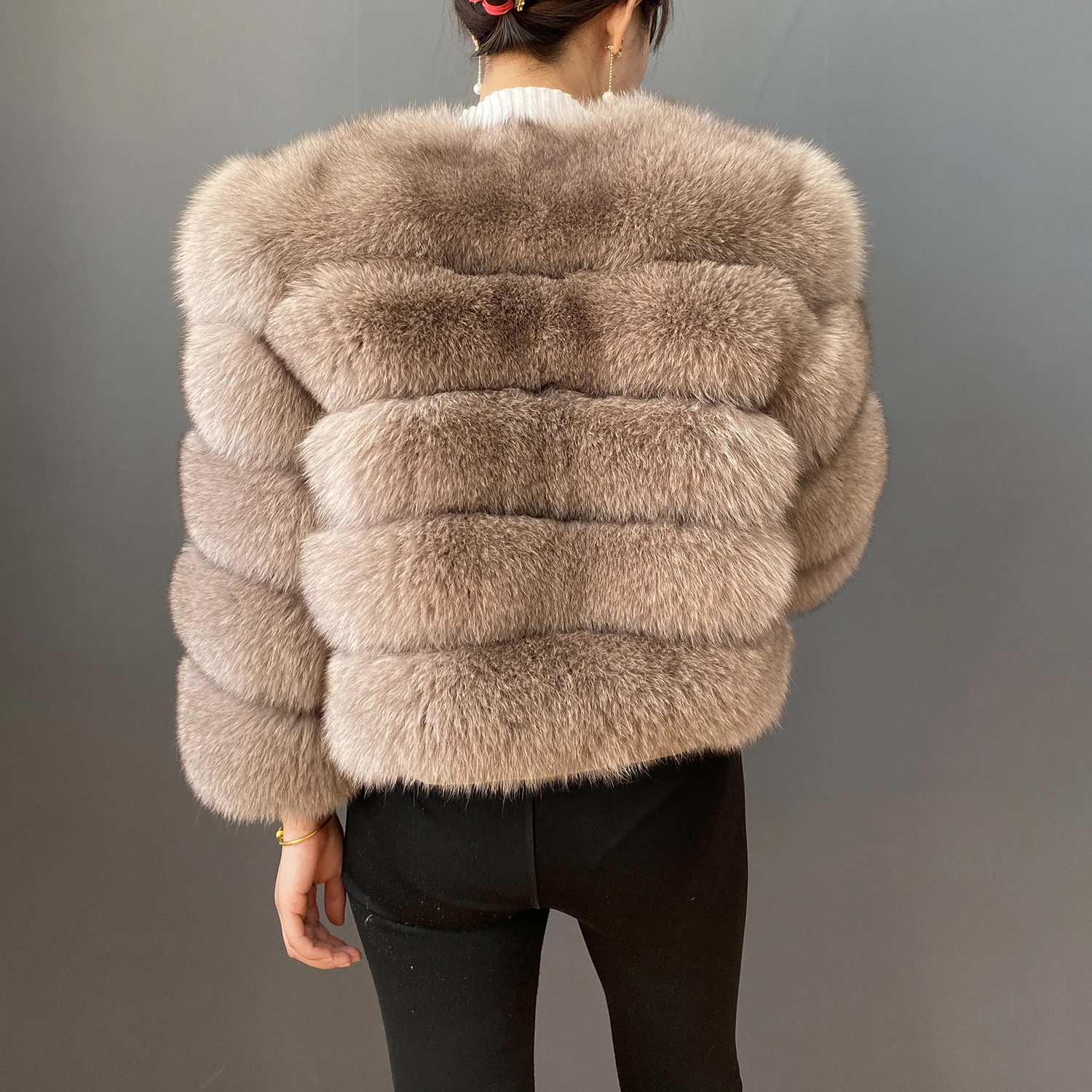 Winter Women's 50cm High Waist Style Short Natural Fox Fur Coats Real Fur Coat ASHENKAILAN 5 Rings High Fur