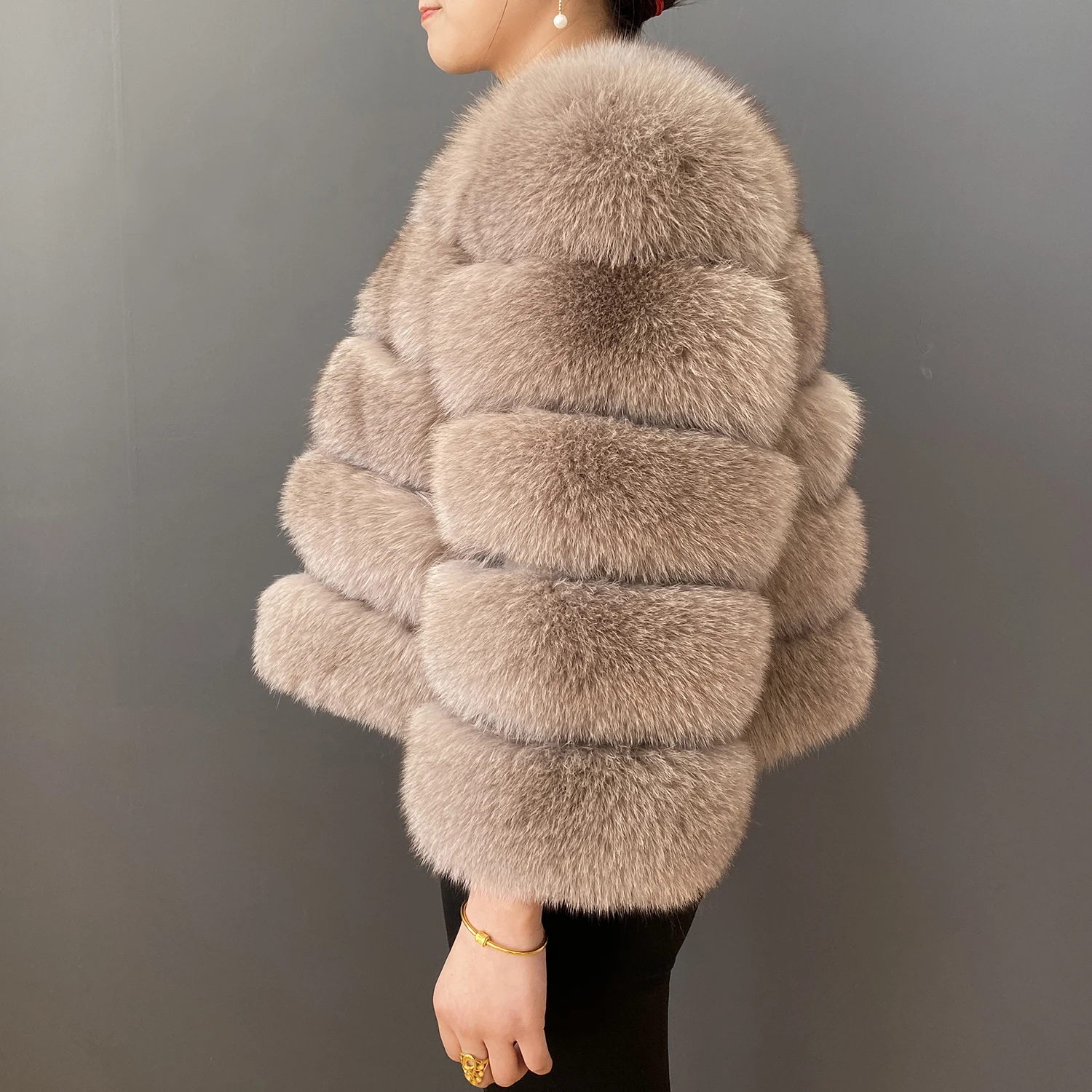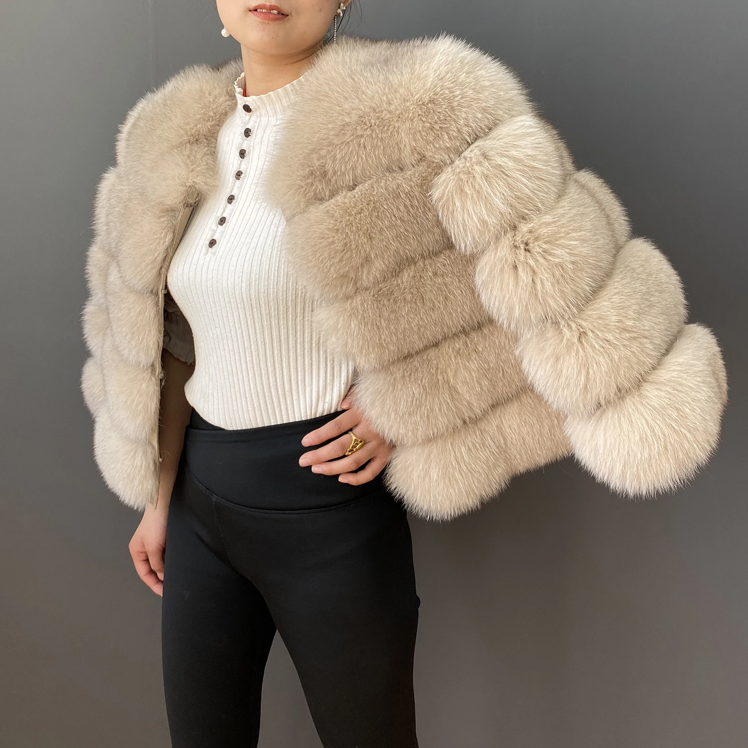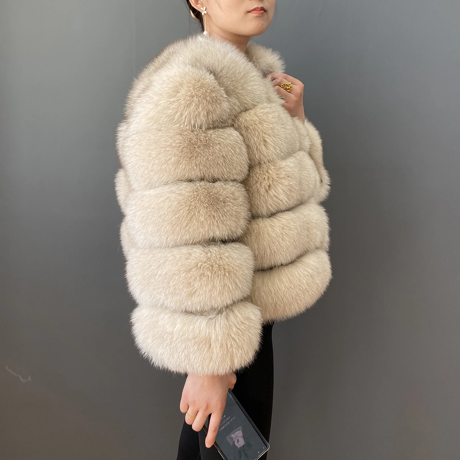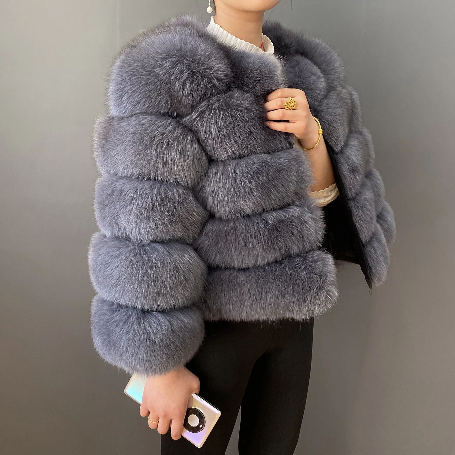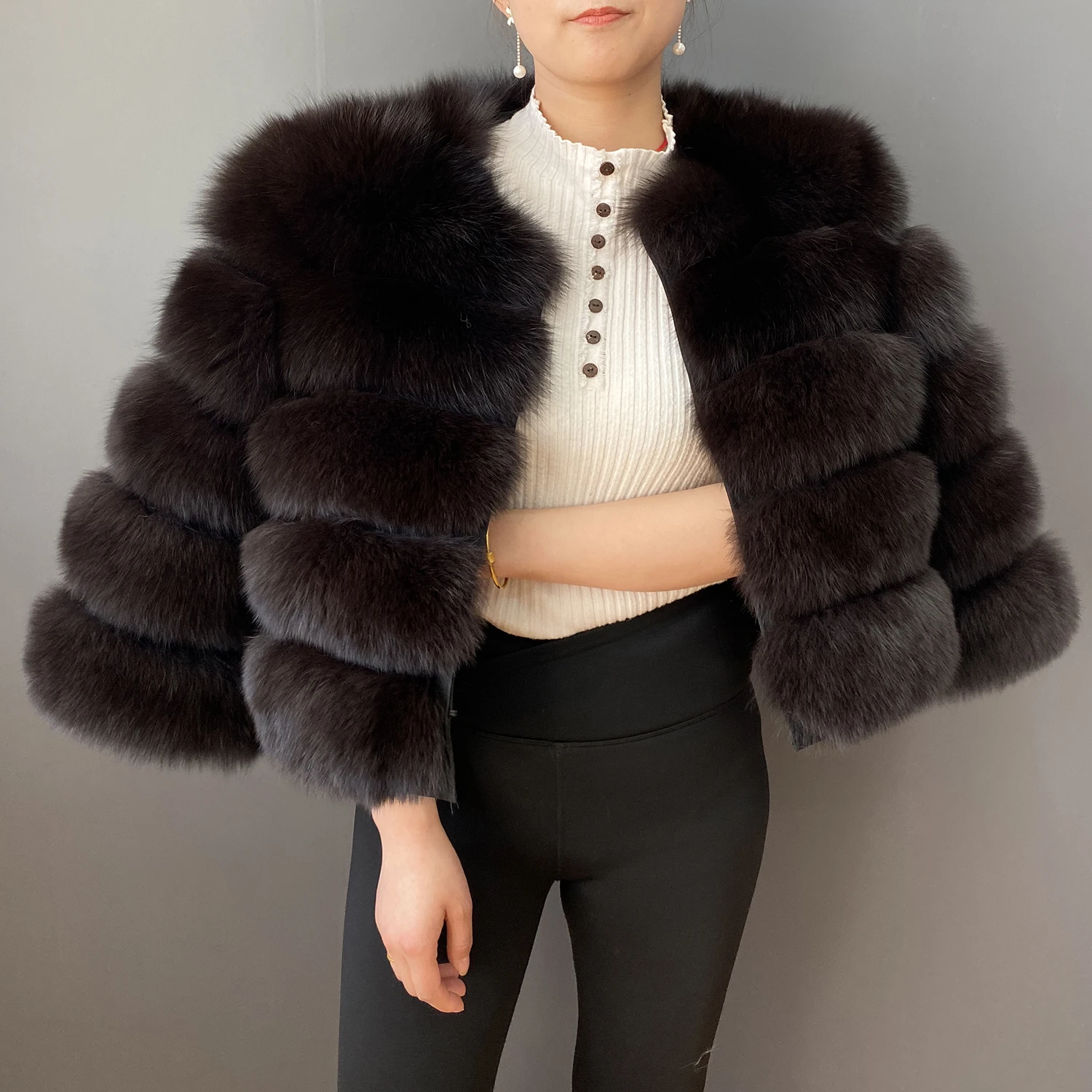 Winter Women's 50cm High Waist Style Short Natural Fox Fur Coats Real Fur Coat ASHENKAILAN 5 Rings High Fur