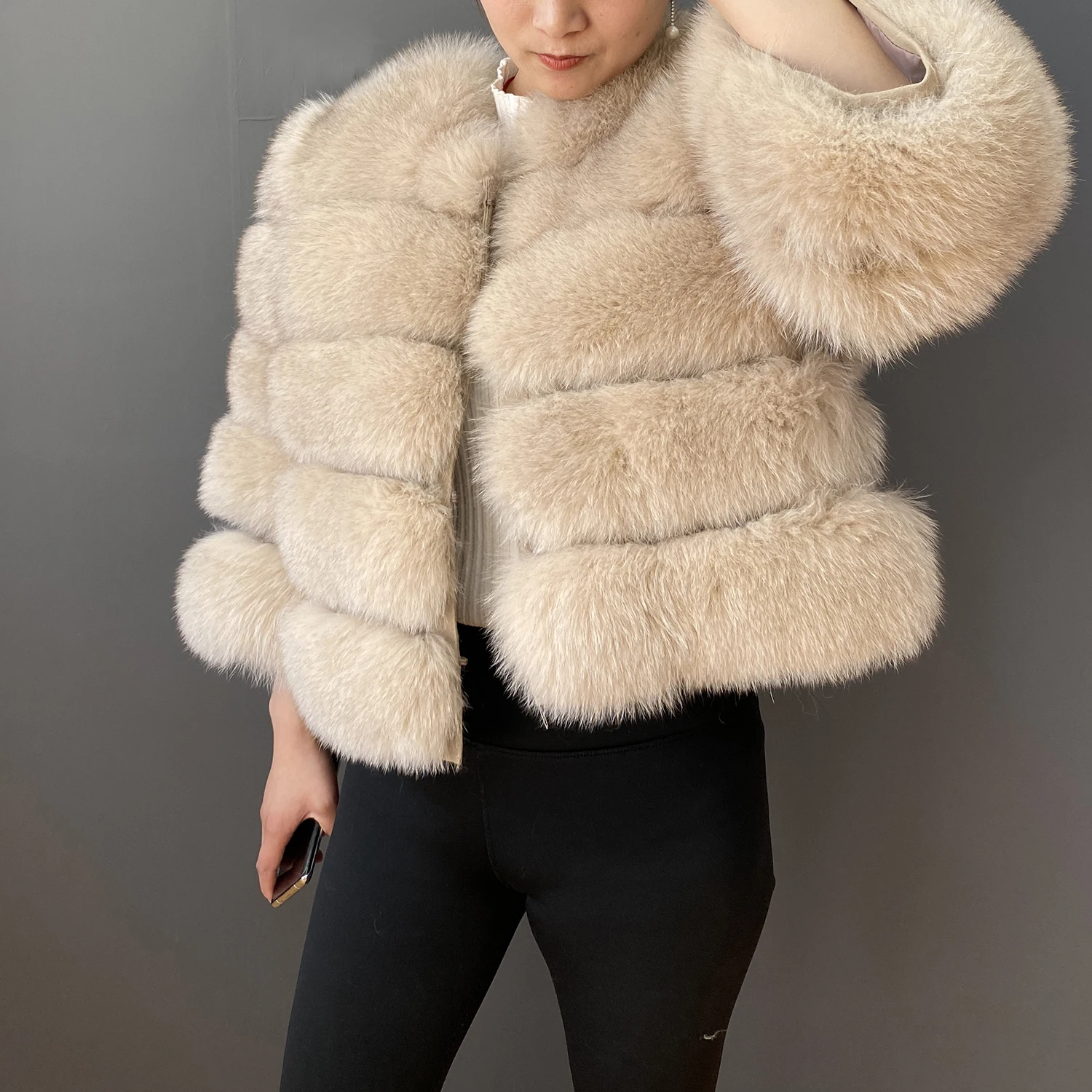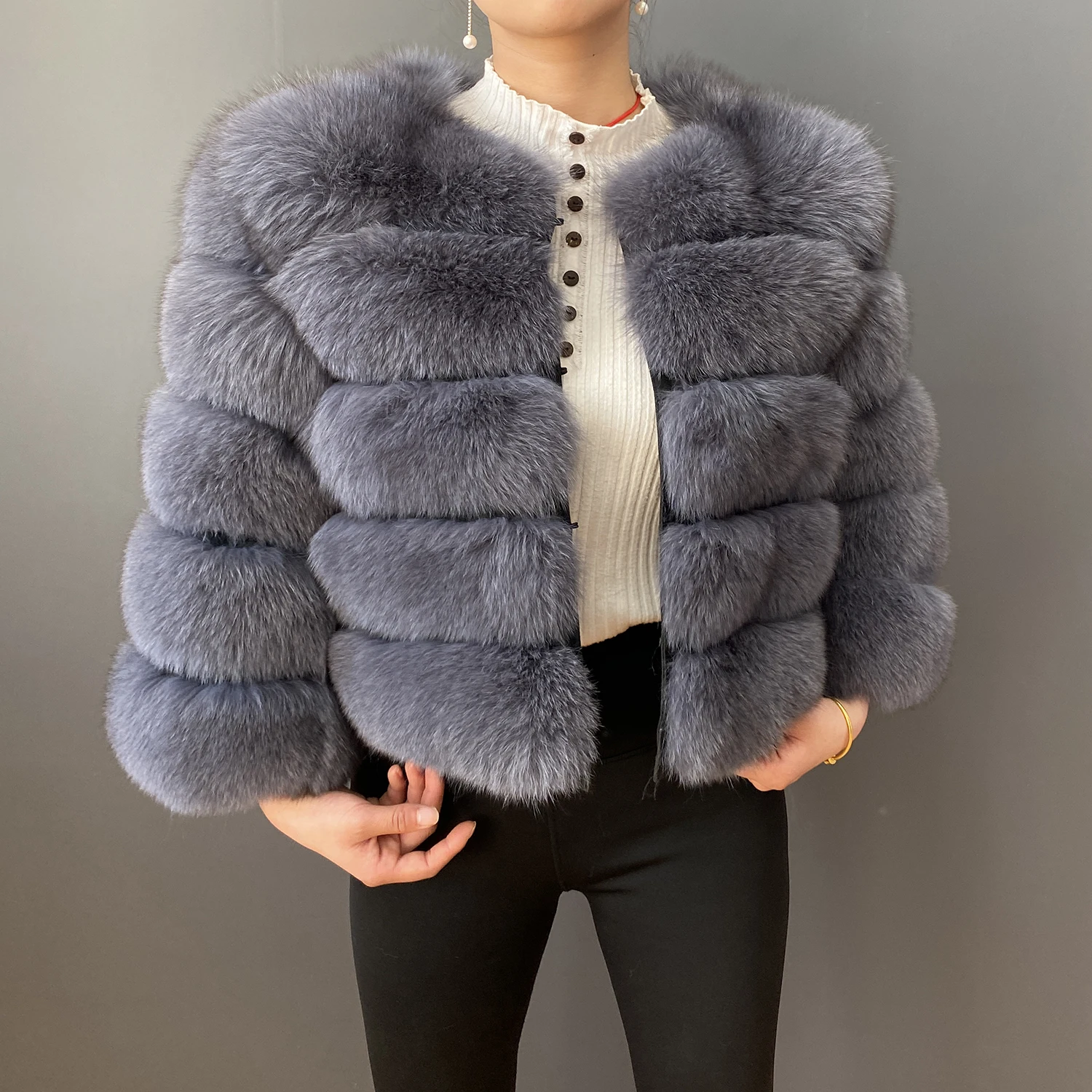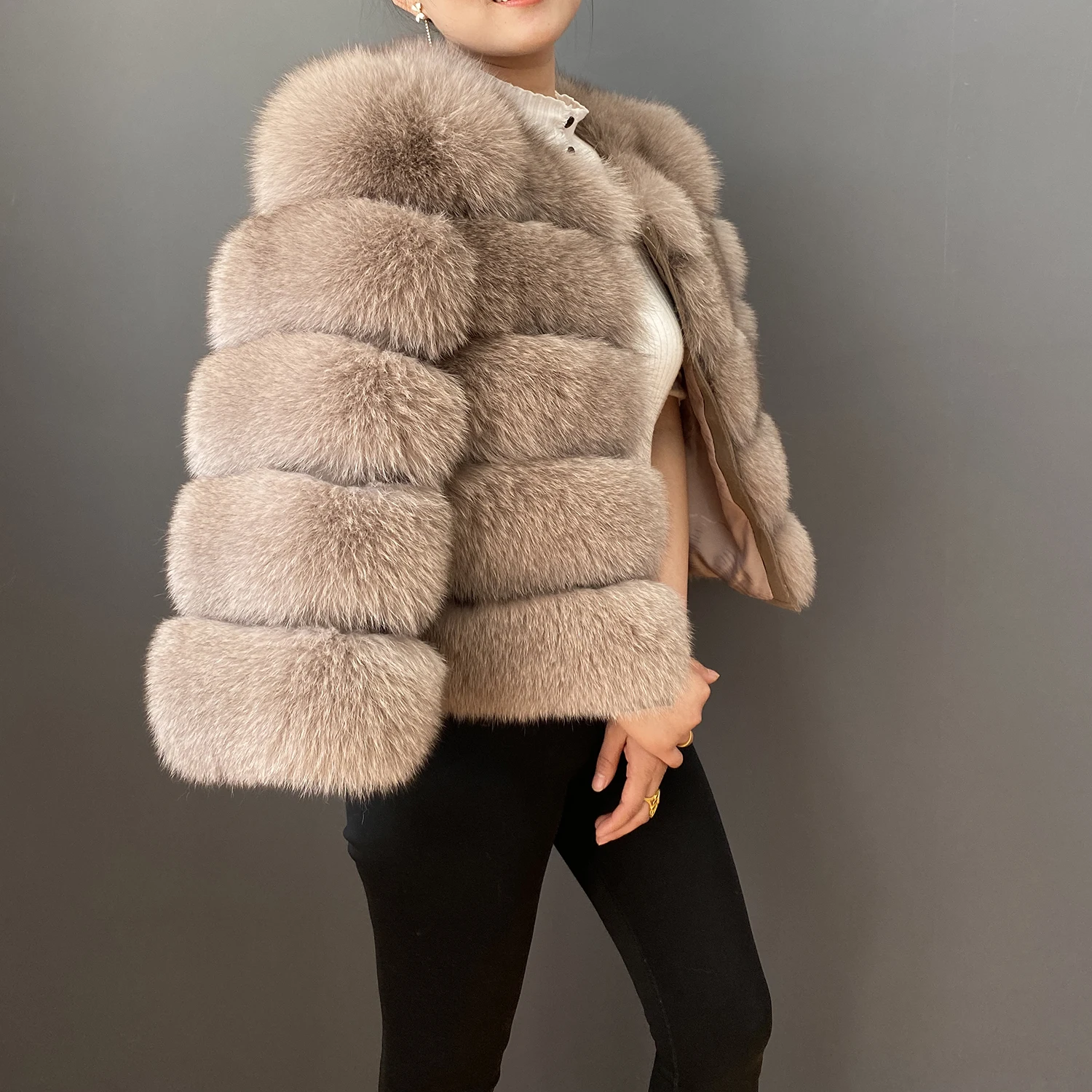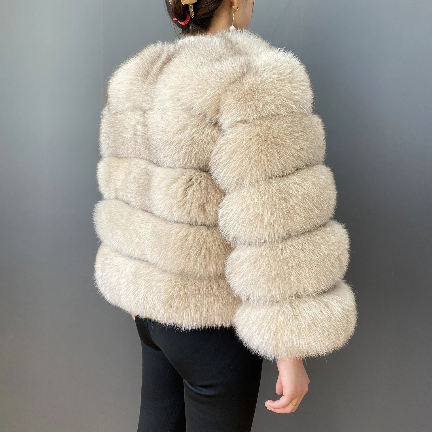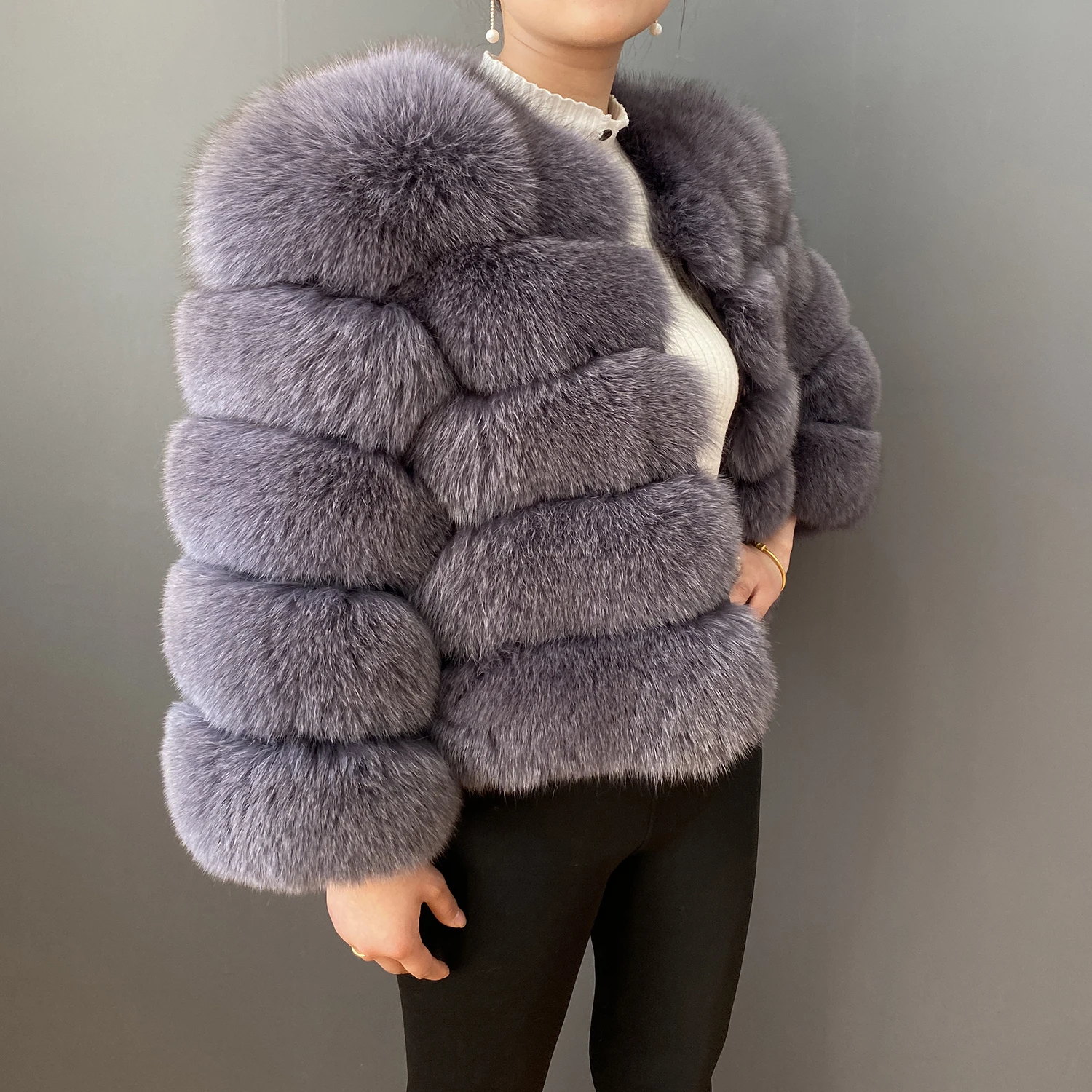 Winter Women's 50cm High Waist Style Short Natural Fox Fur Coats Real Fur Coat ASHENKAILAN 5 Rings High Fur
