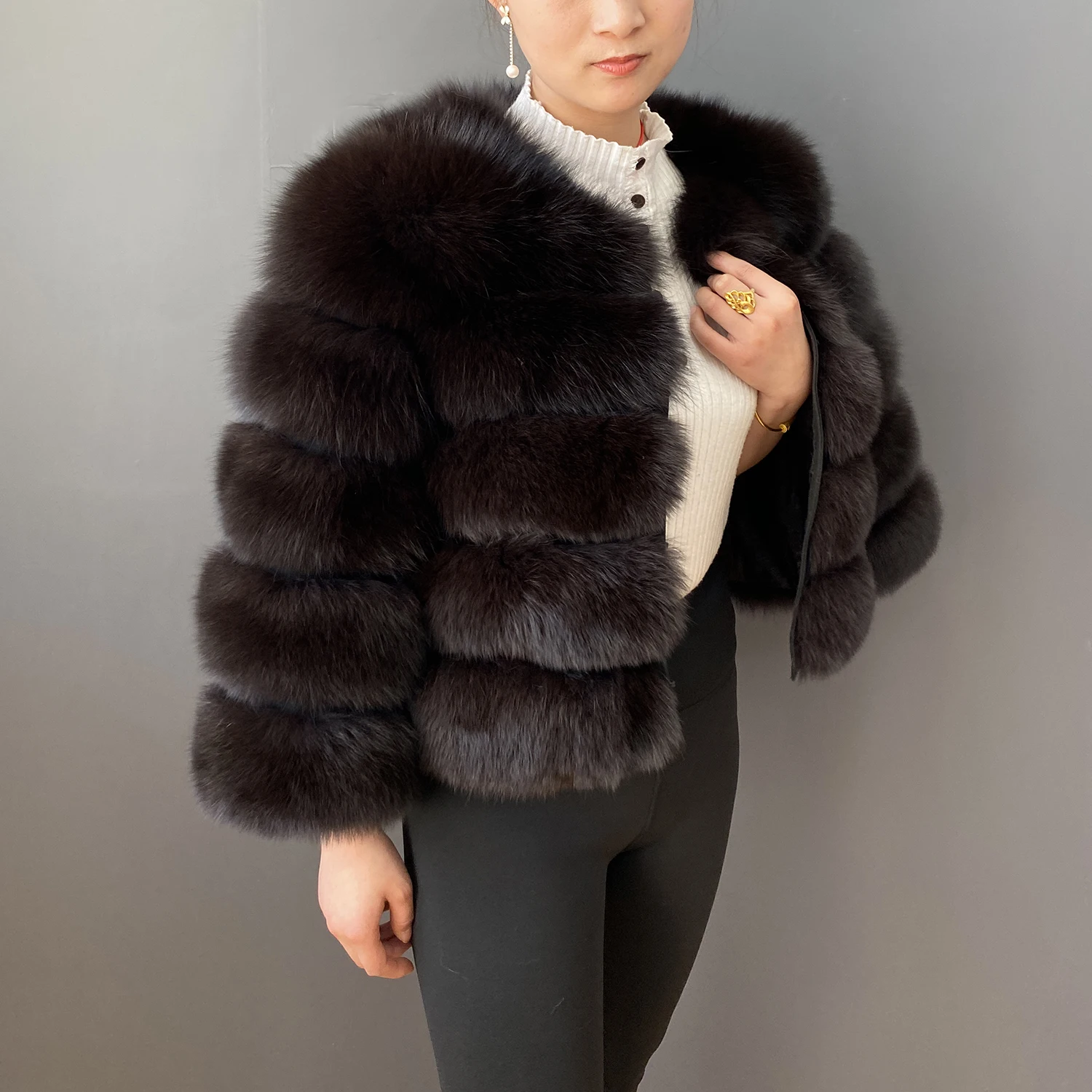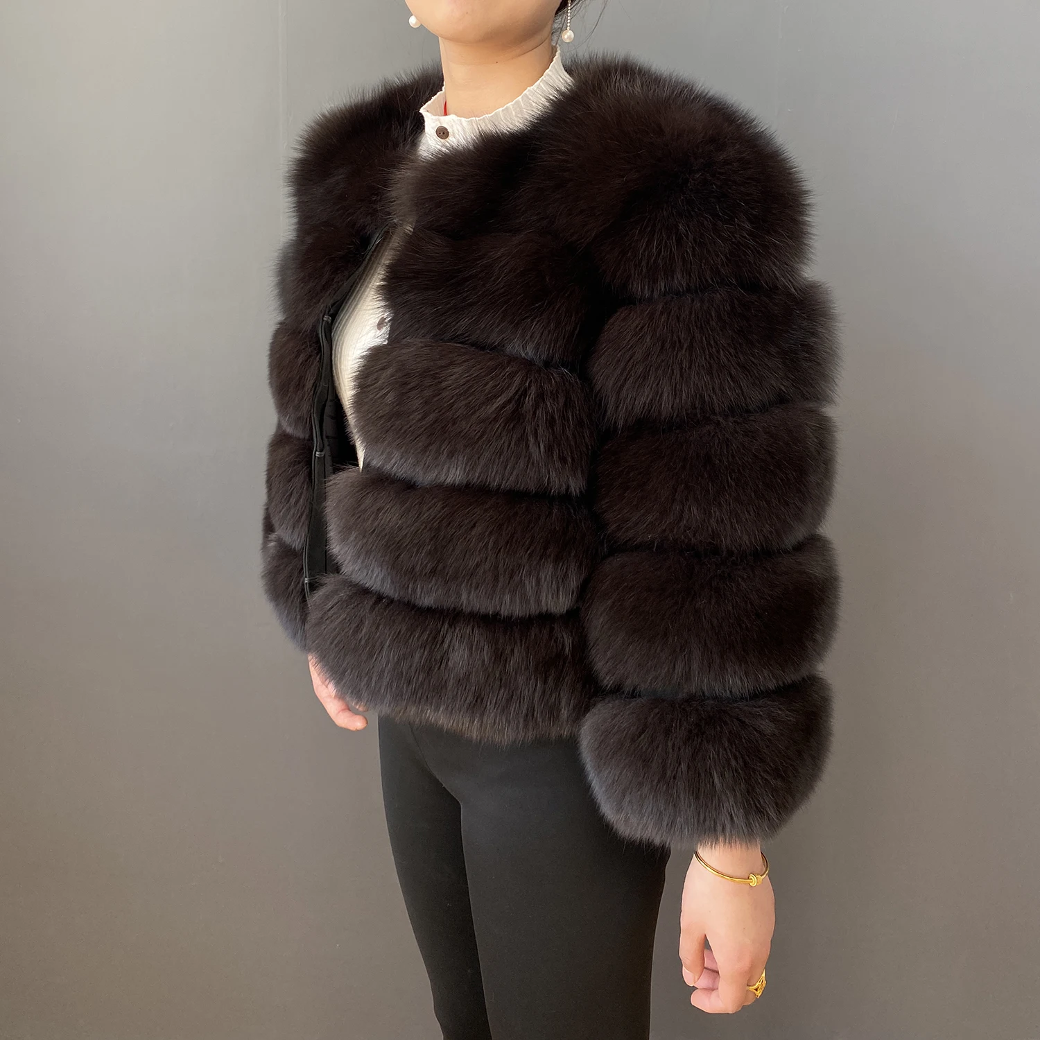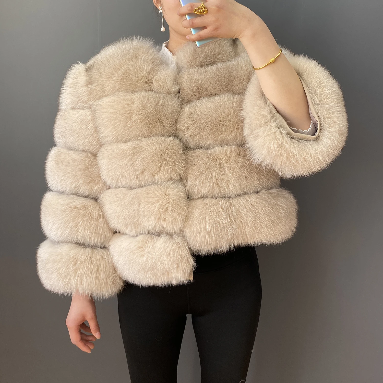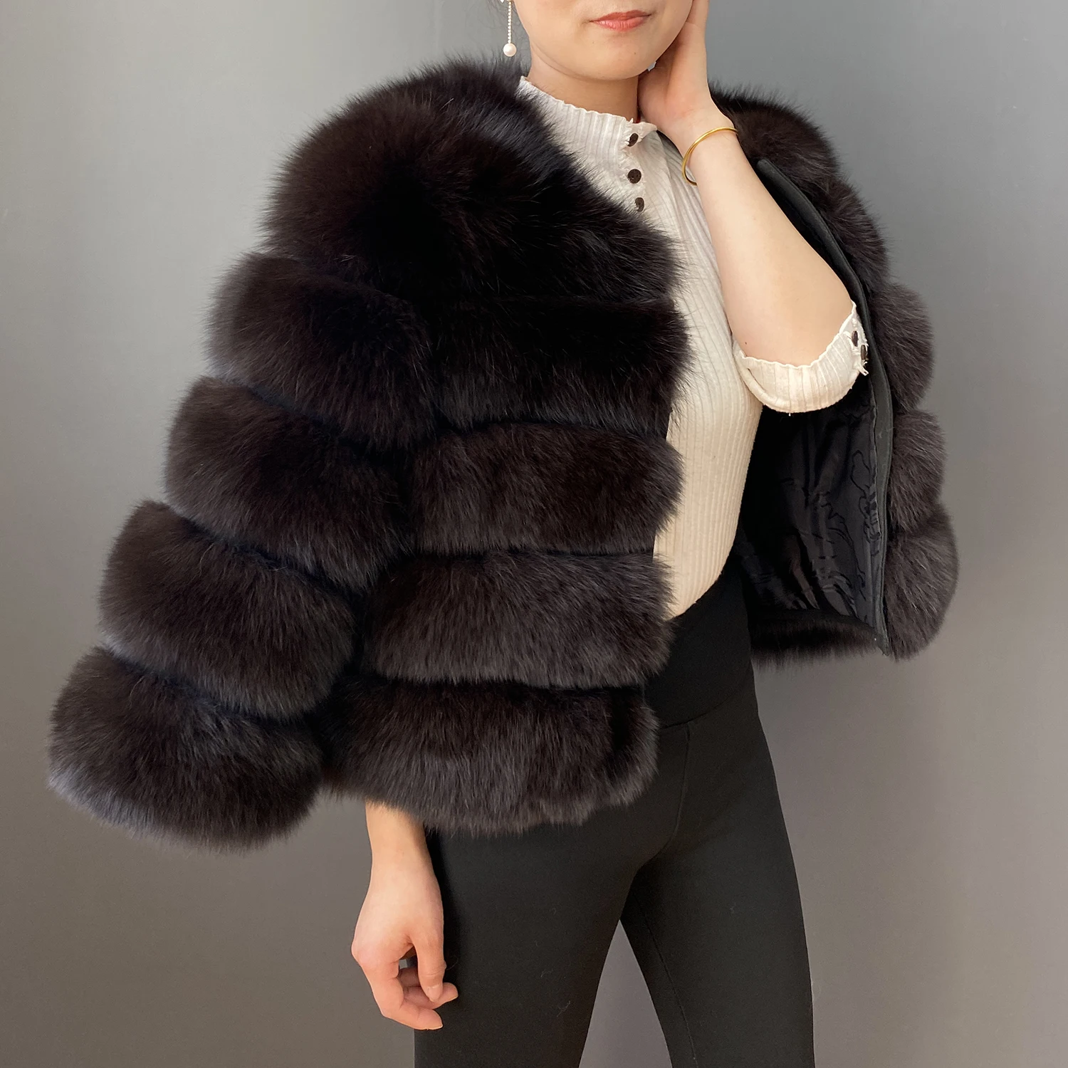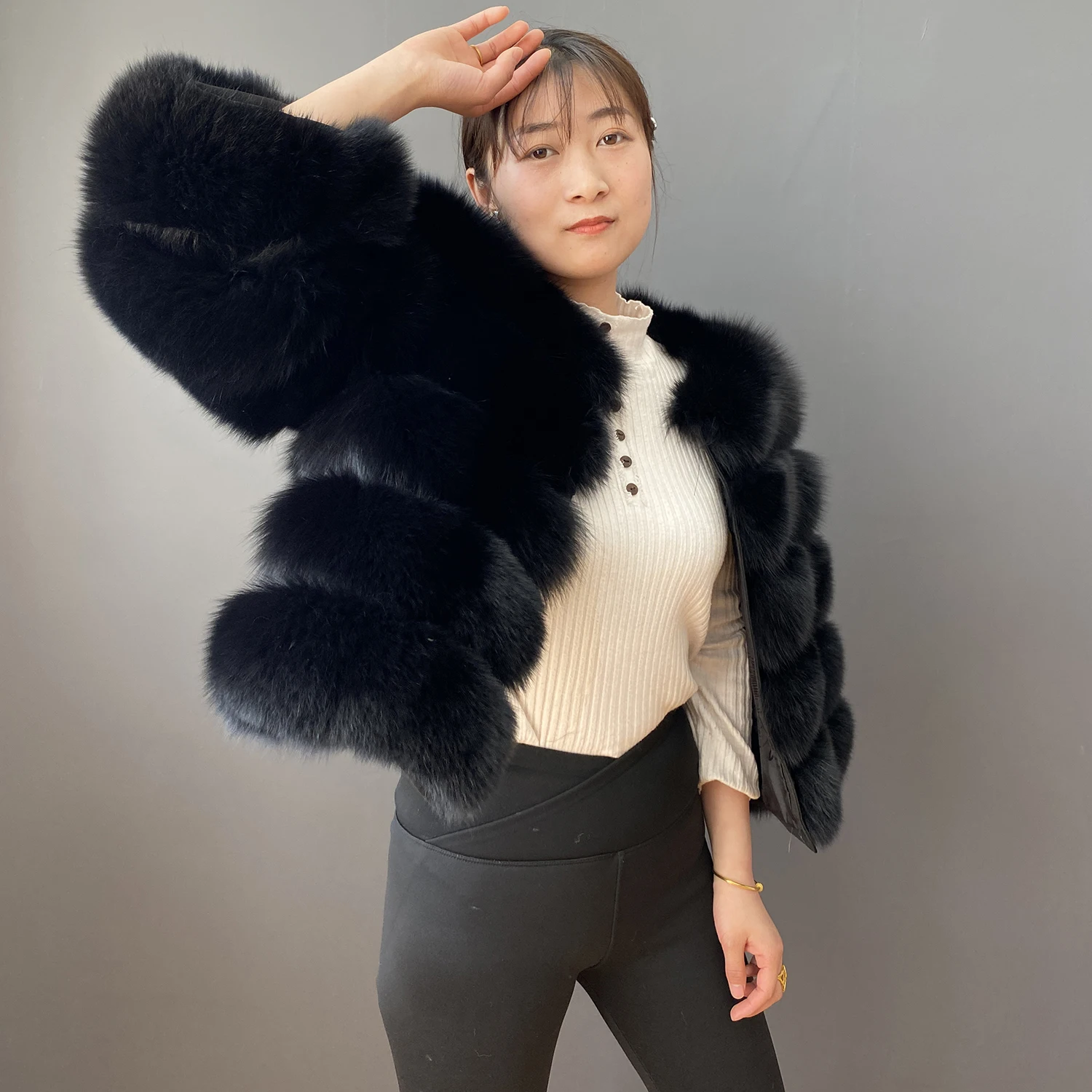Winter Women's 50cm High Waist Style Short Natural Fox Fur Coats Real Fur Coat ASHENKAILAN 5 Rings High Fur