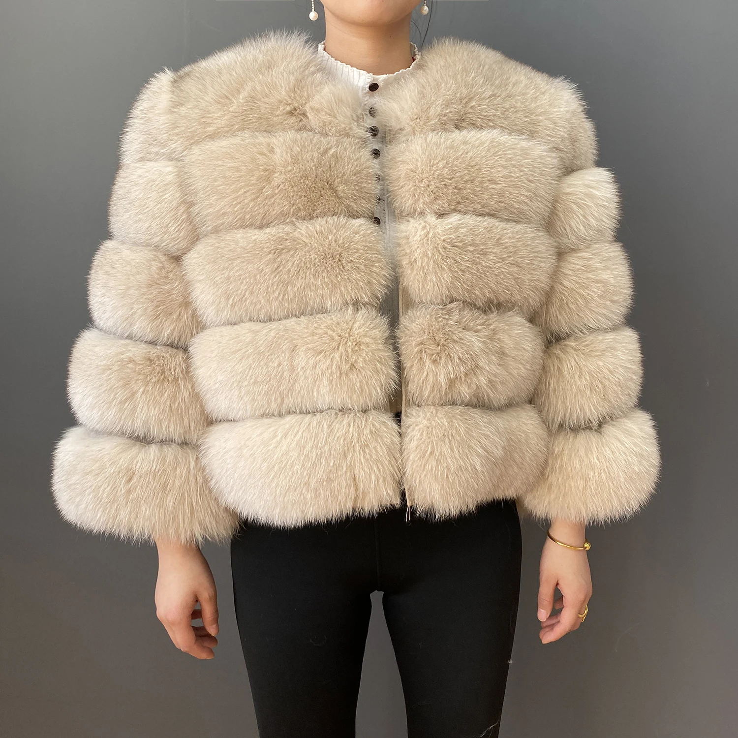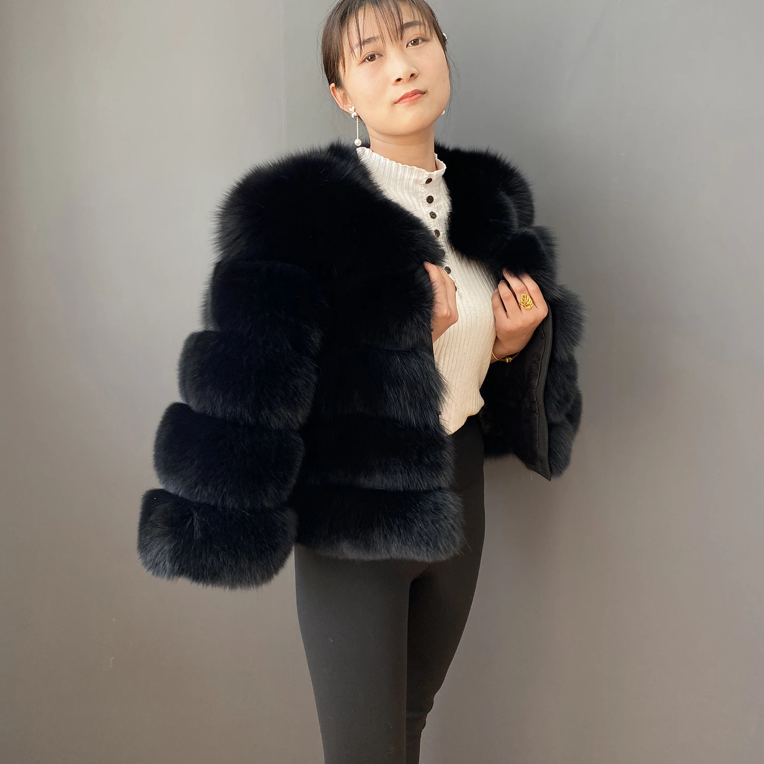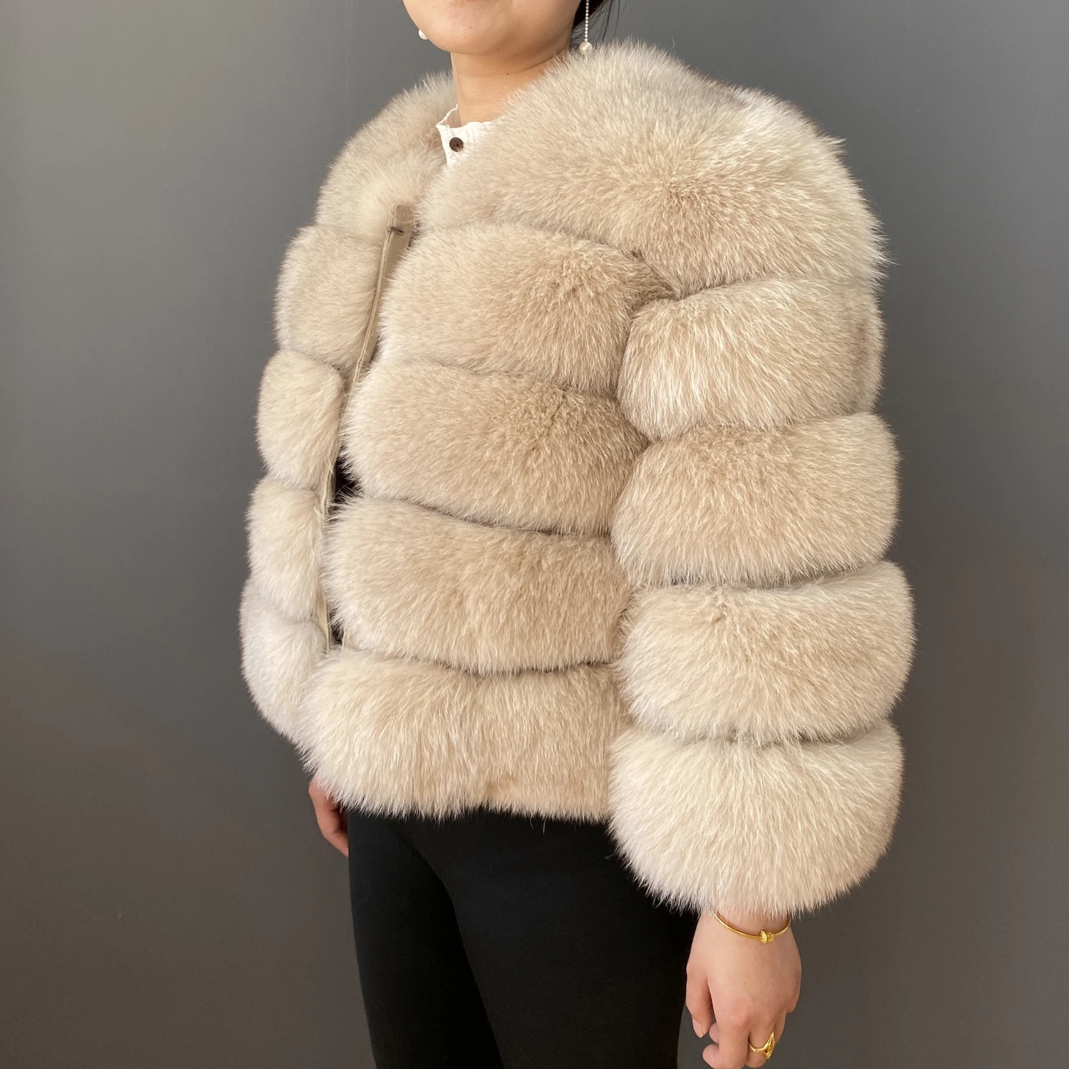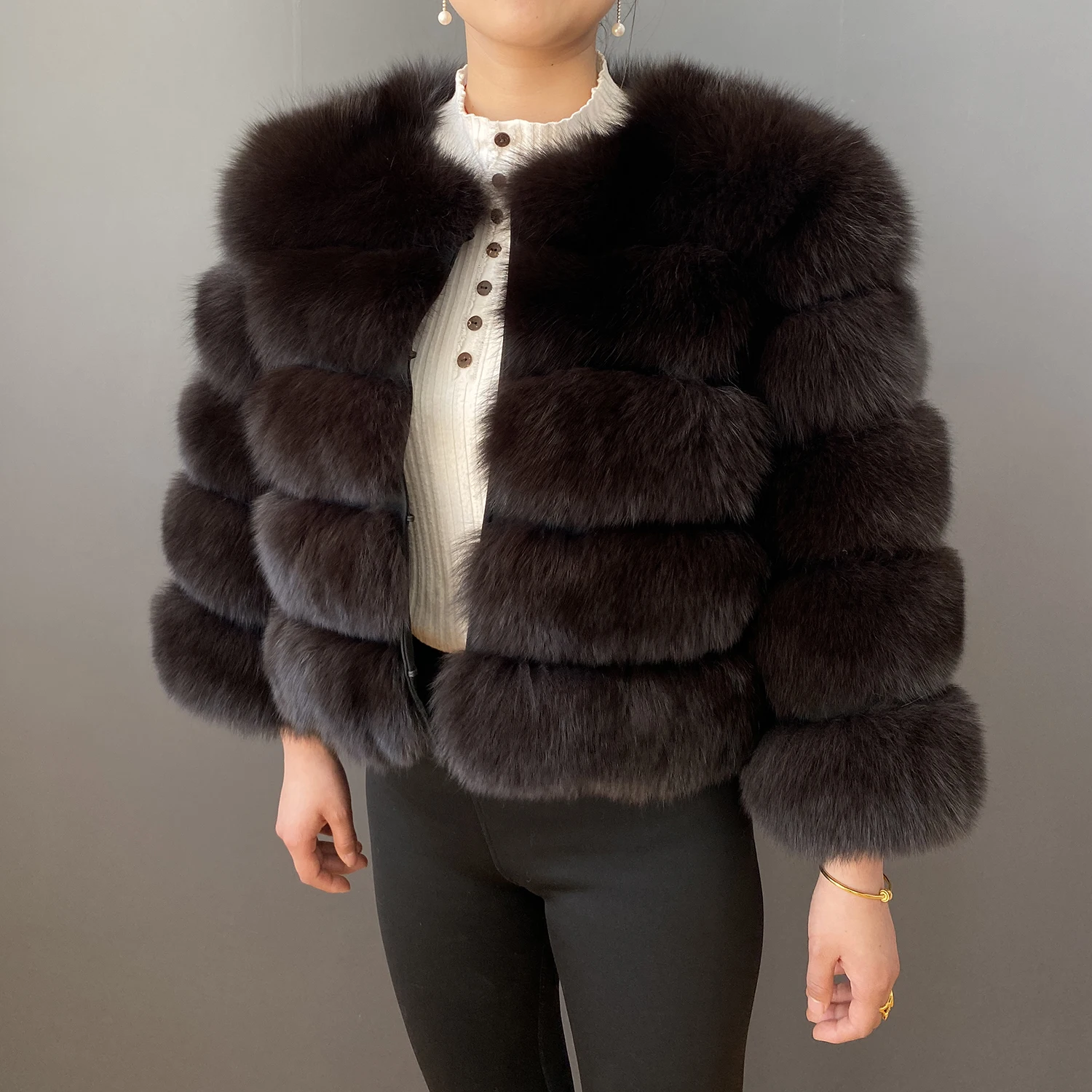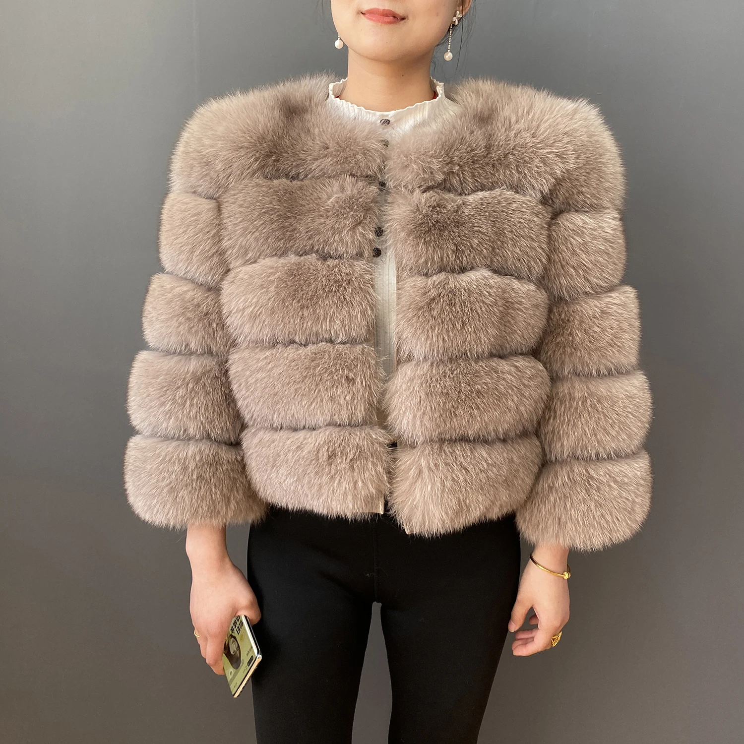 Winter Women's 50cm High Waist Style Short Natural Fox Fur Coats Real Fur Coat ASHENKAILAN 5 Rings High Fur