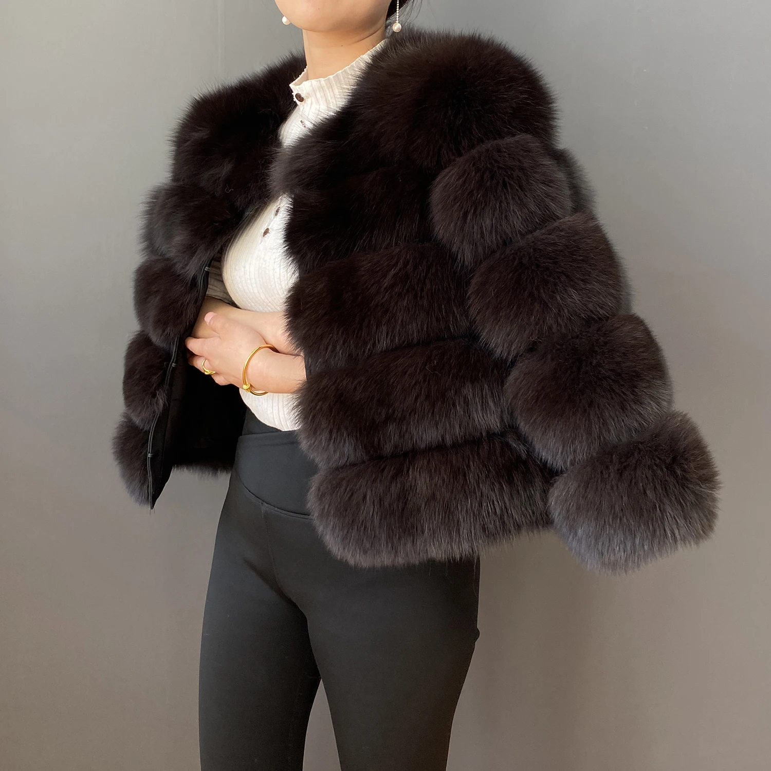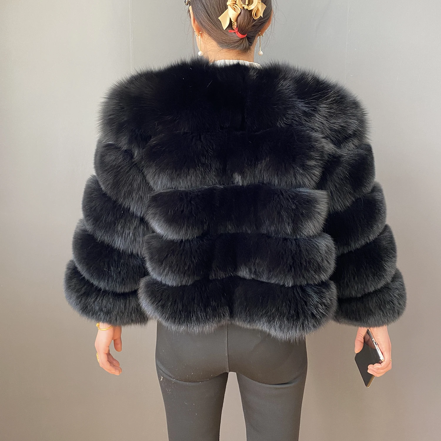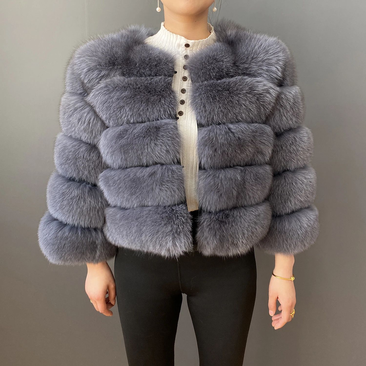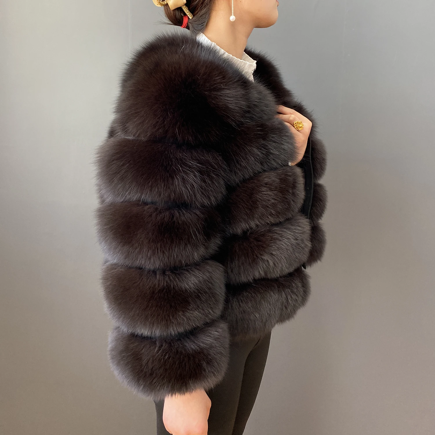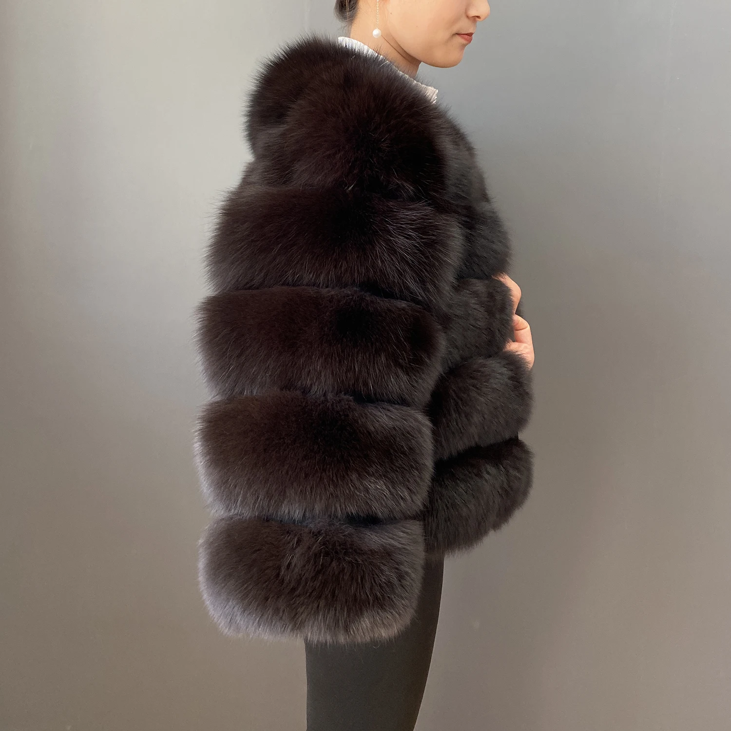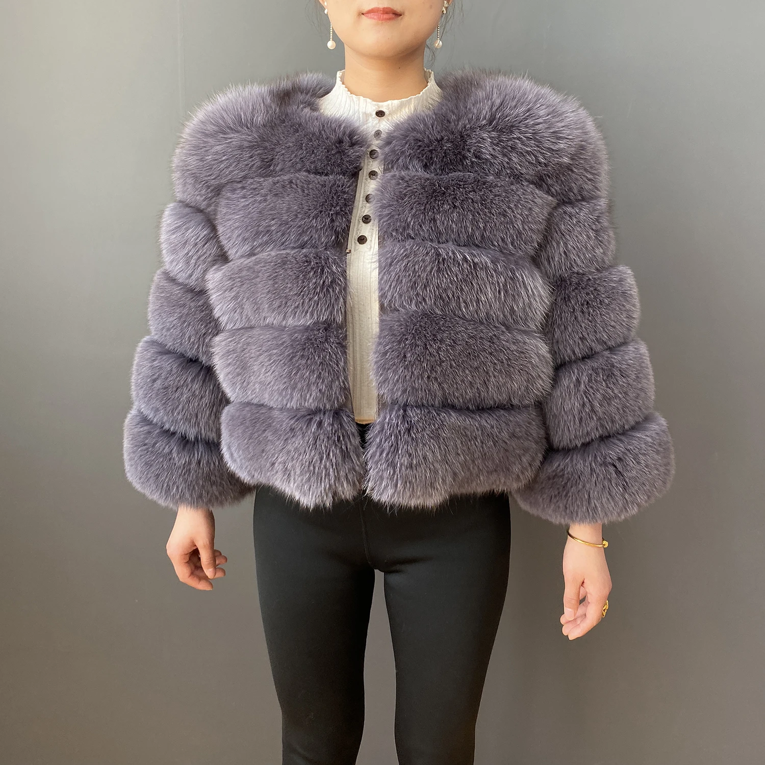 Winter Women's 50cm High Waist Style Short Natural Fox Fur Coats Real Fur Coat ASHENKAILAN 5 Rings High Fur