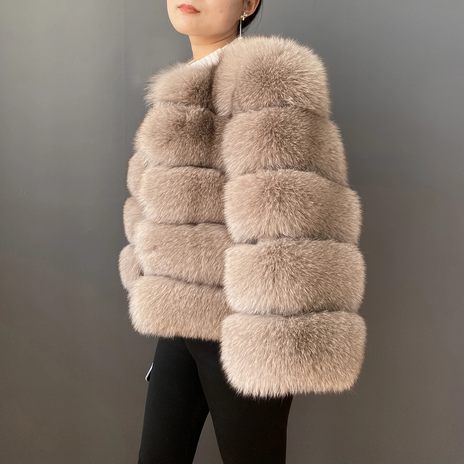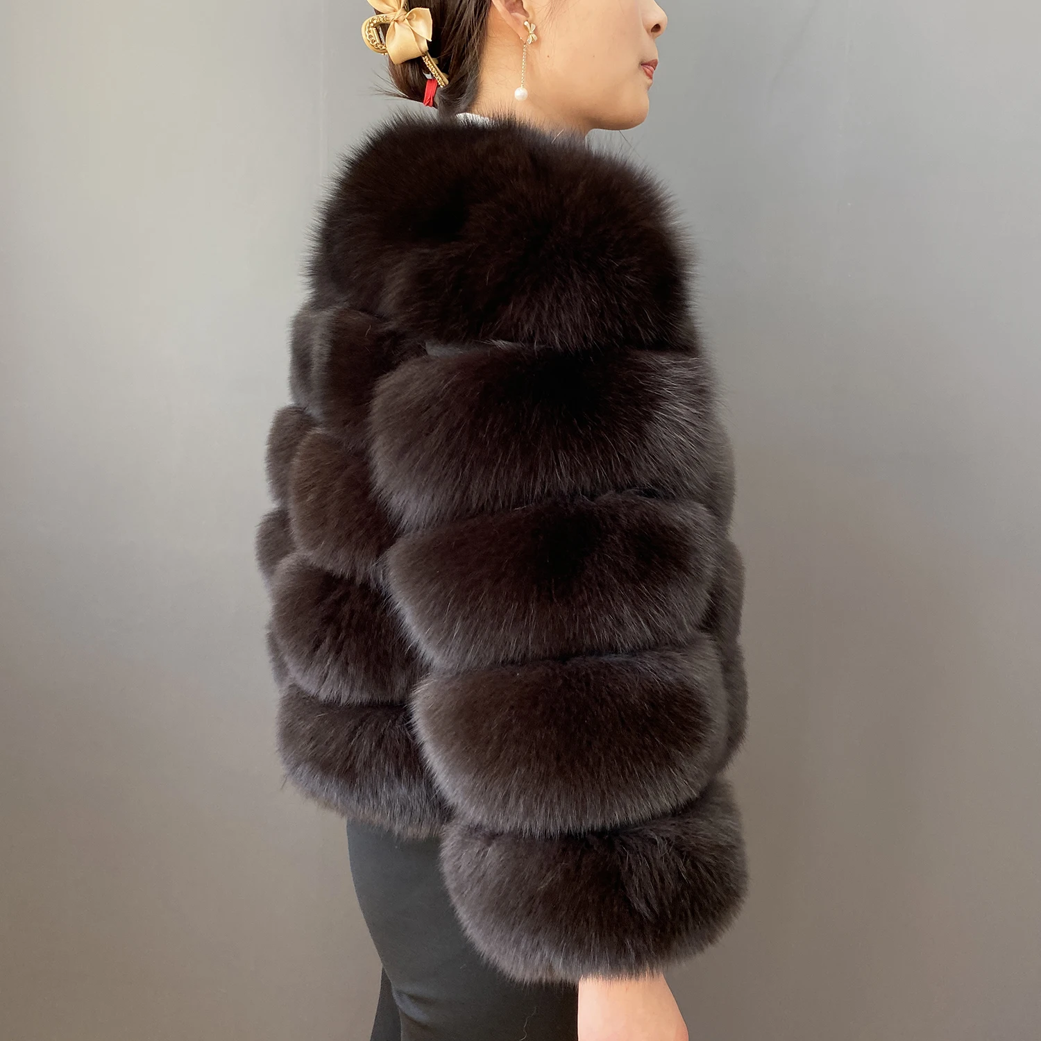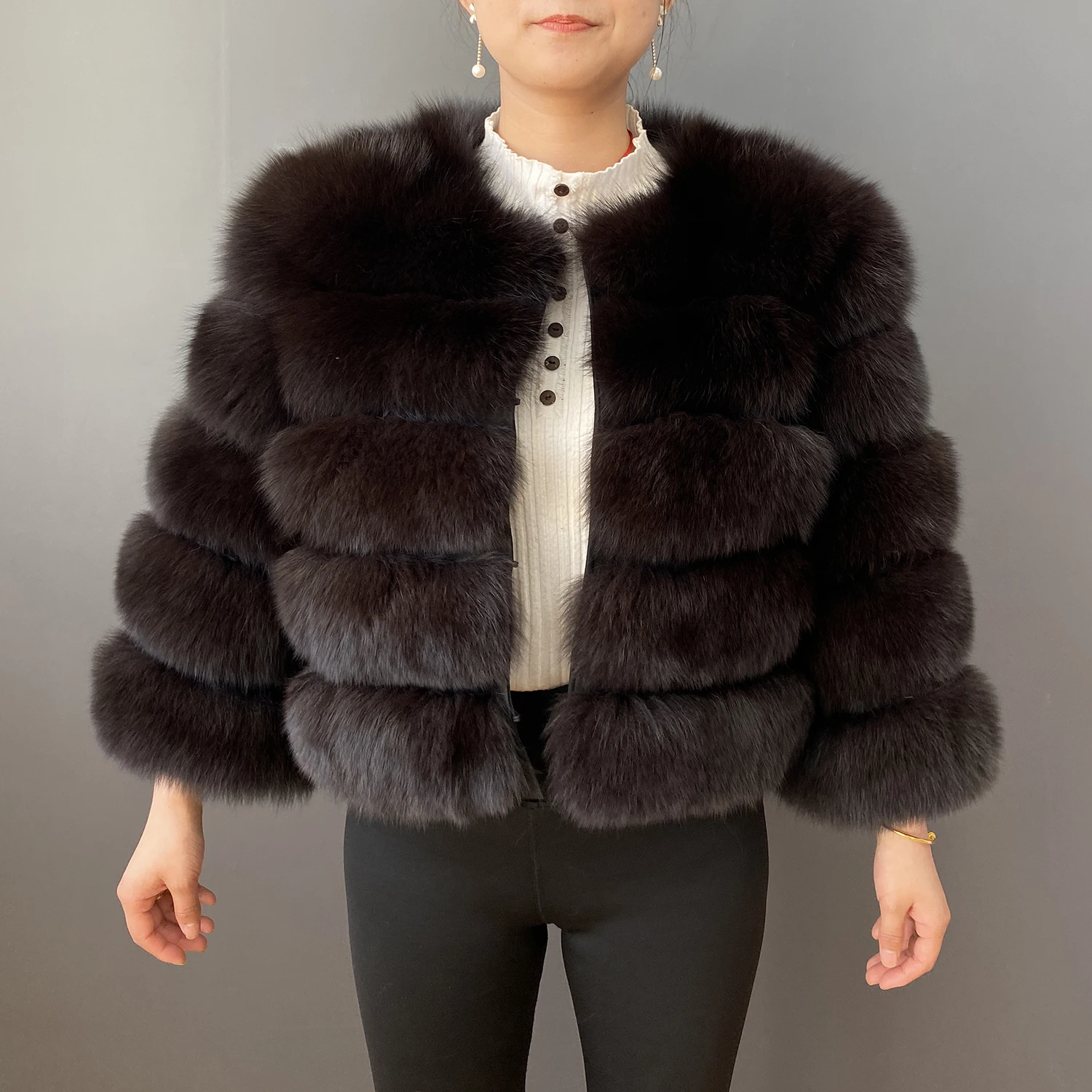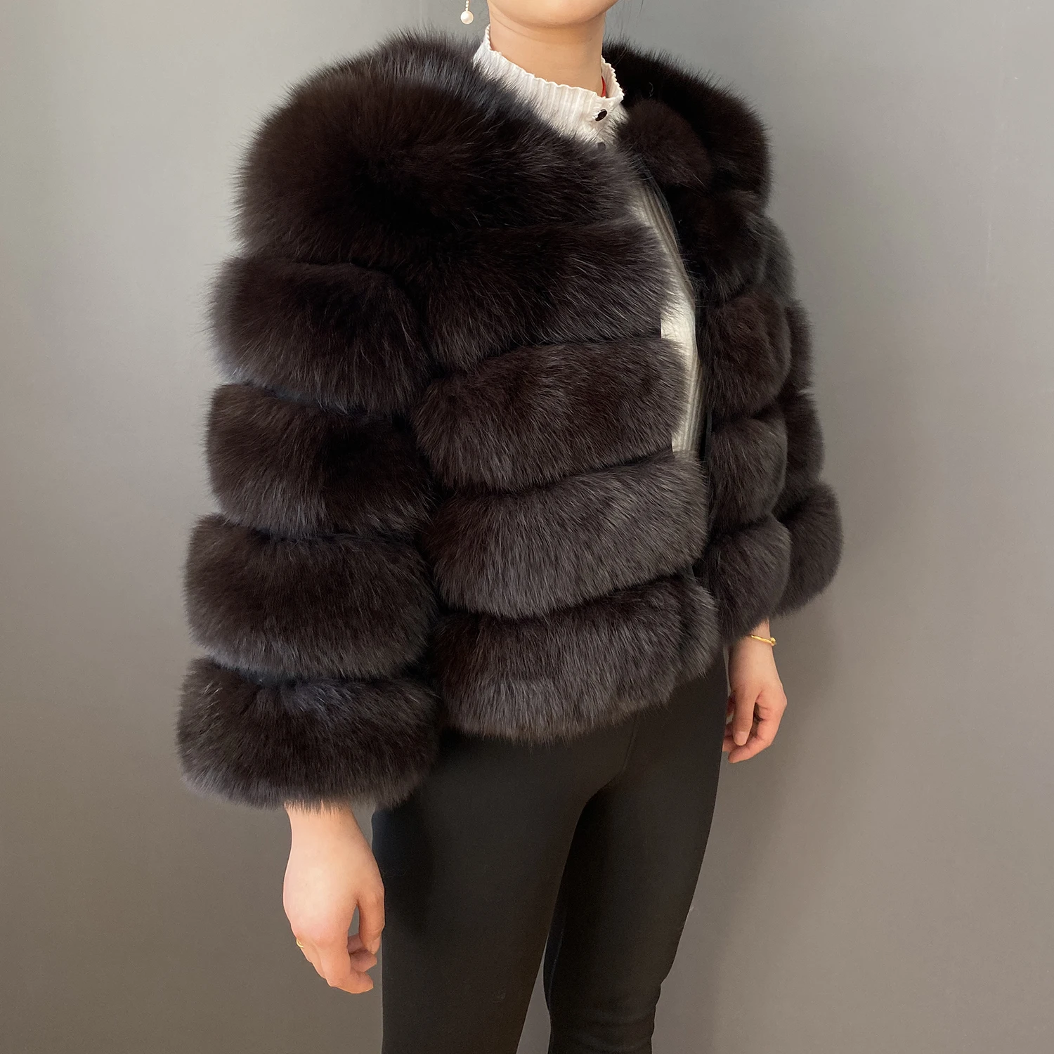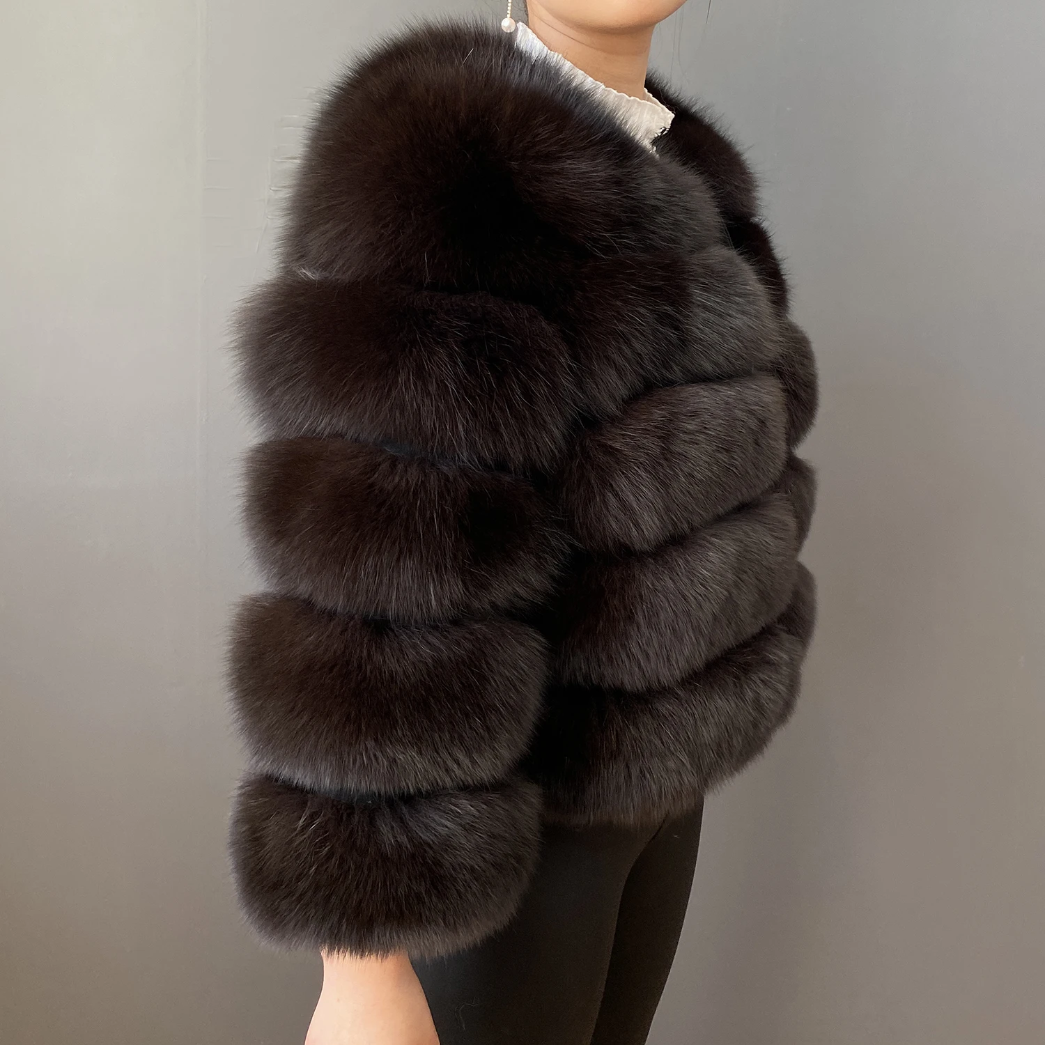 Winter Women's 50cm High Waist Style Short Natural Fox Fur Coats Real Fur Coat ASHENKAILAN 5 Rings High Fur