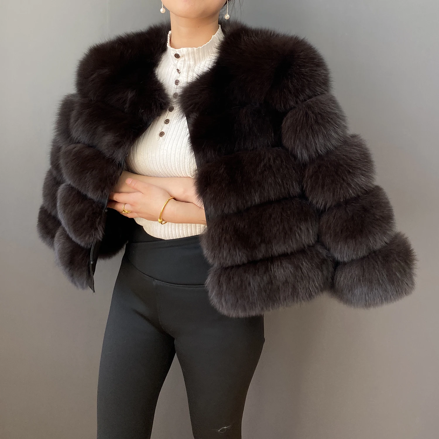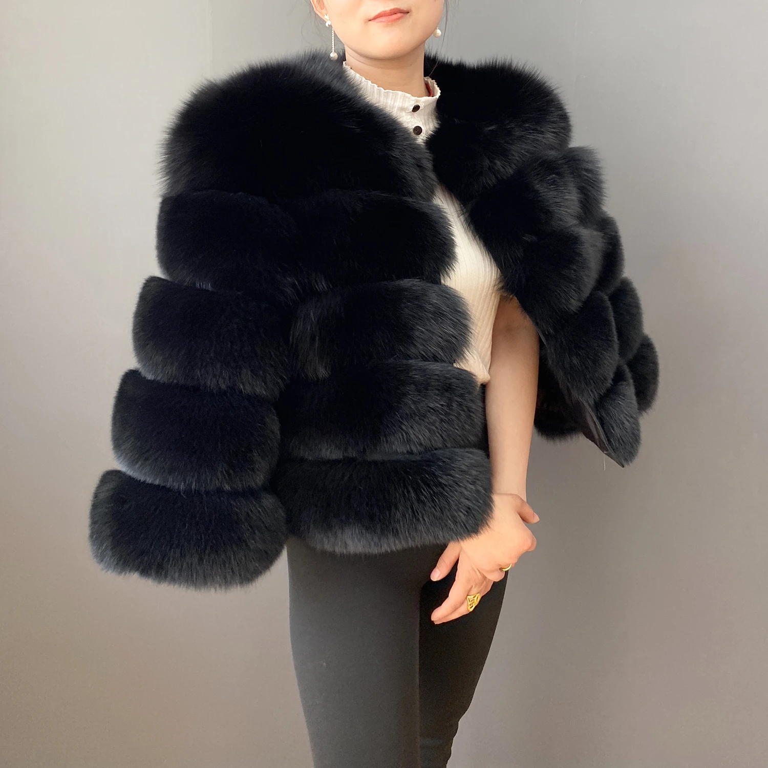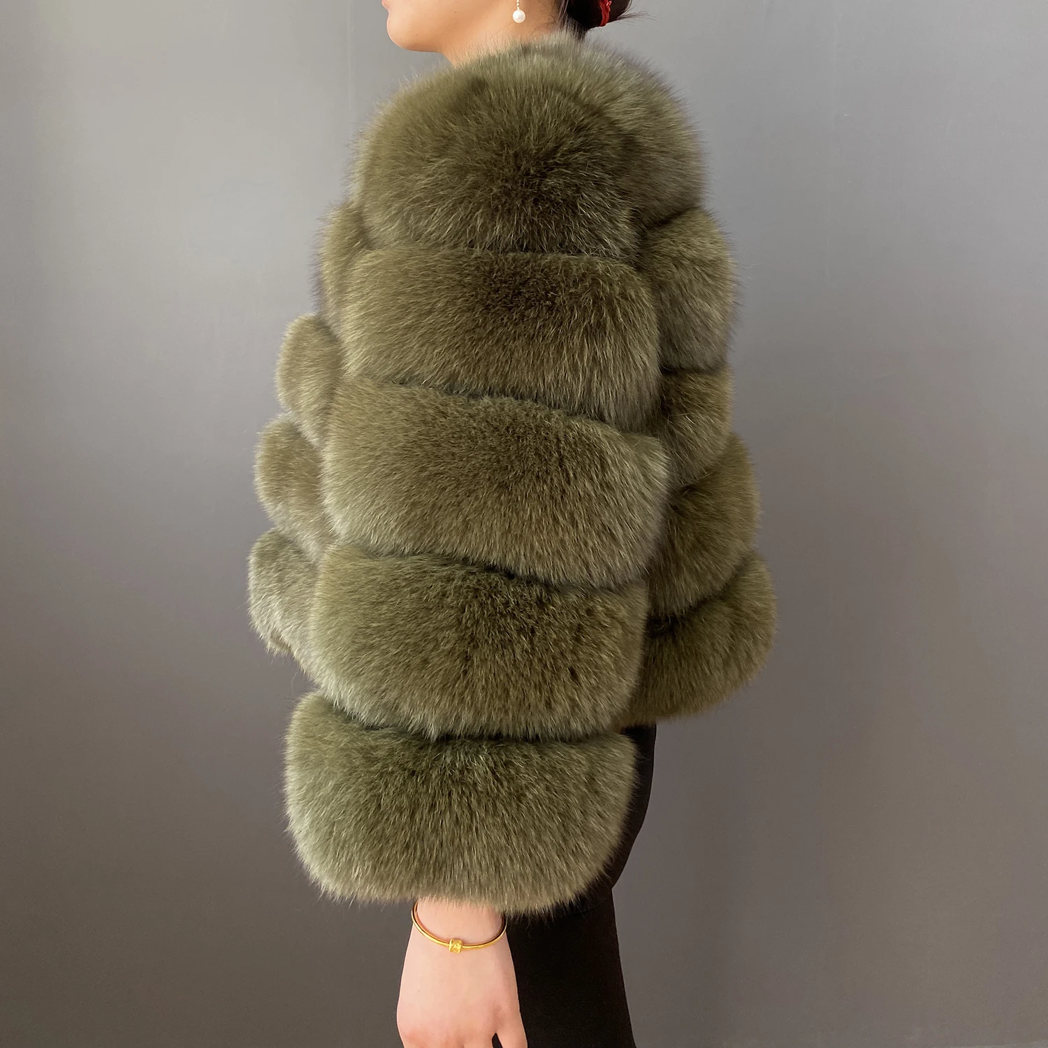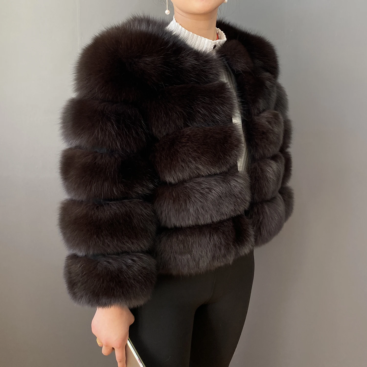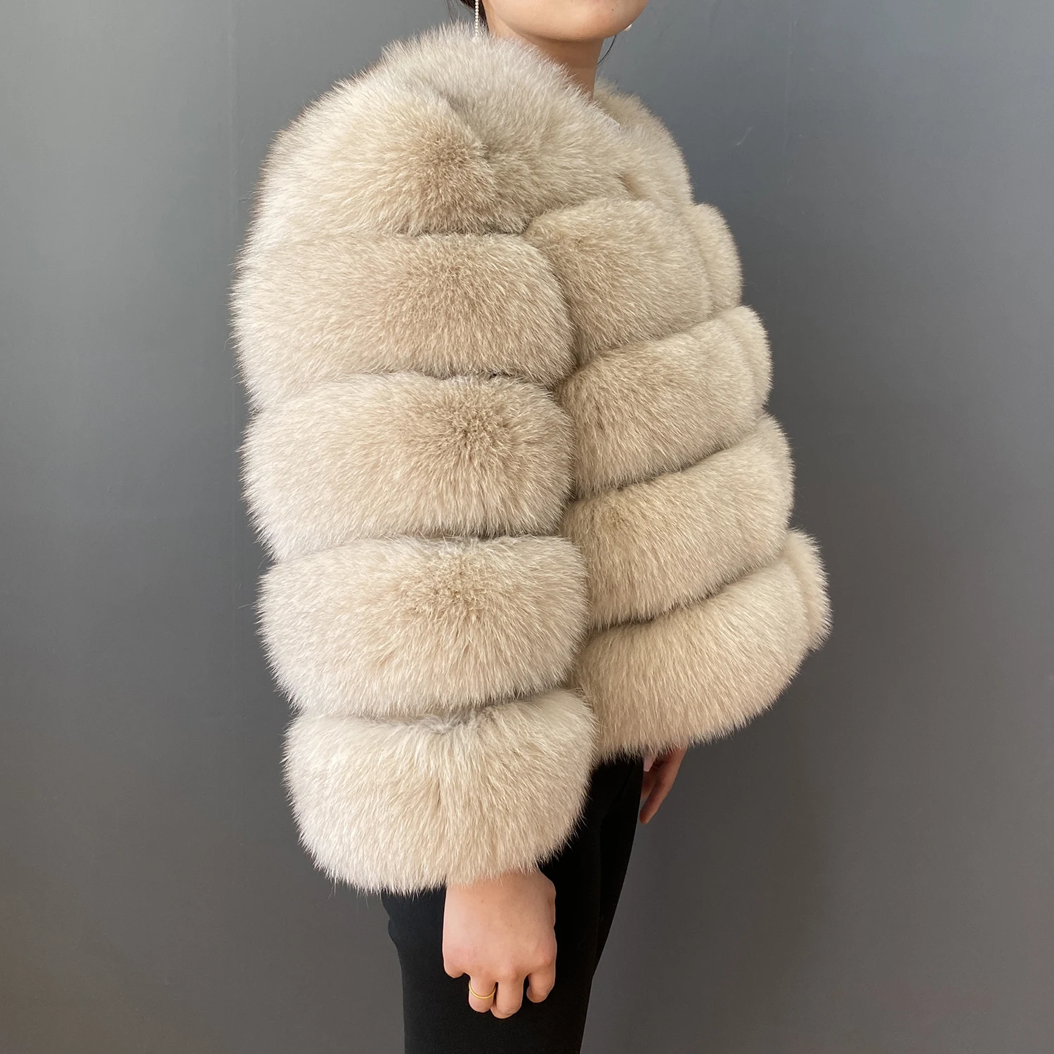 Winter Women's 50cm High Waist Style Short Natural Fox Fur Coats Real Fur Coat ASHENKAILAN 5 Rings High Fur