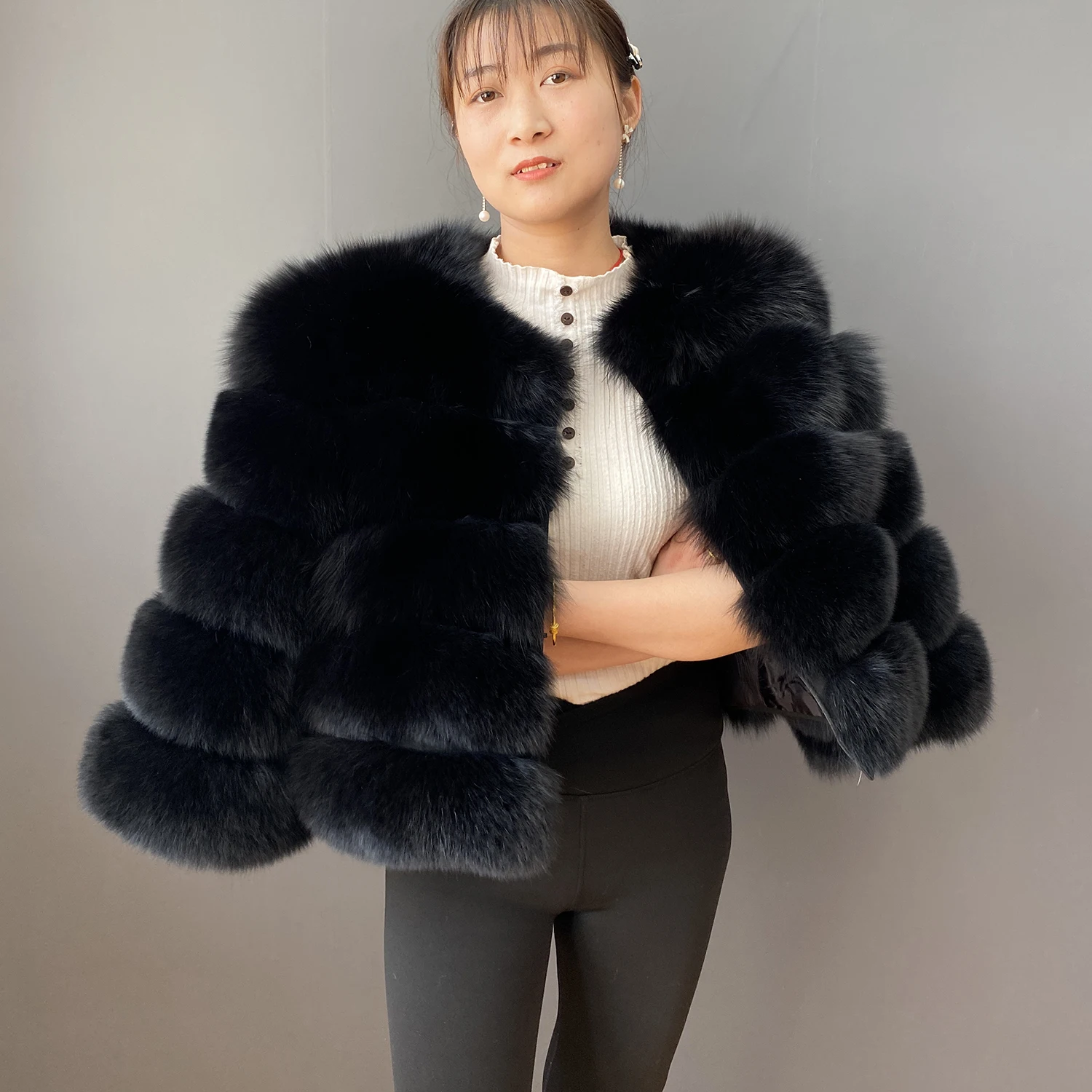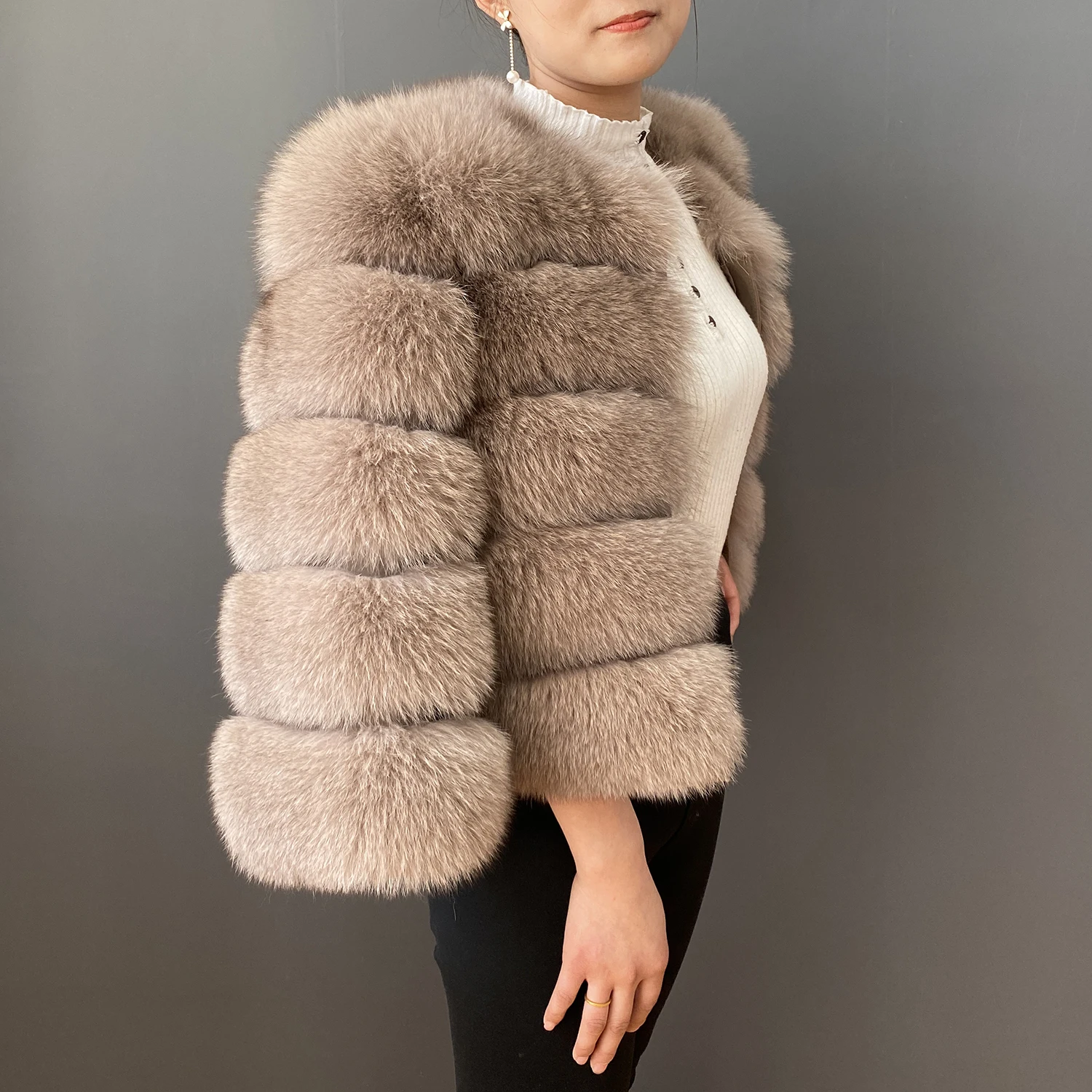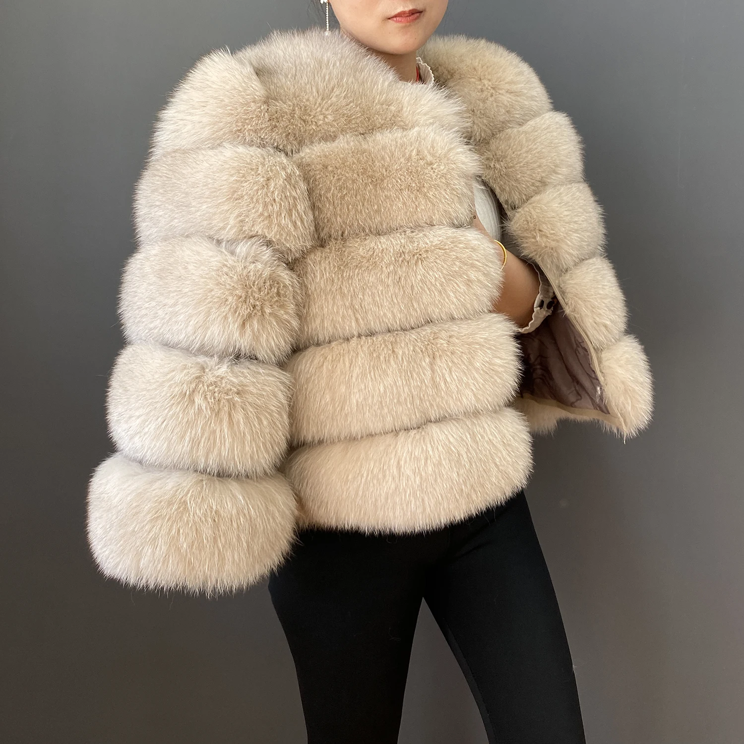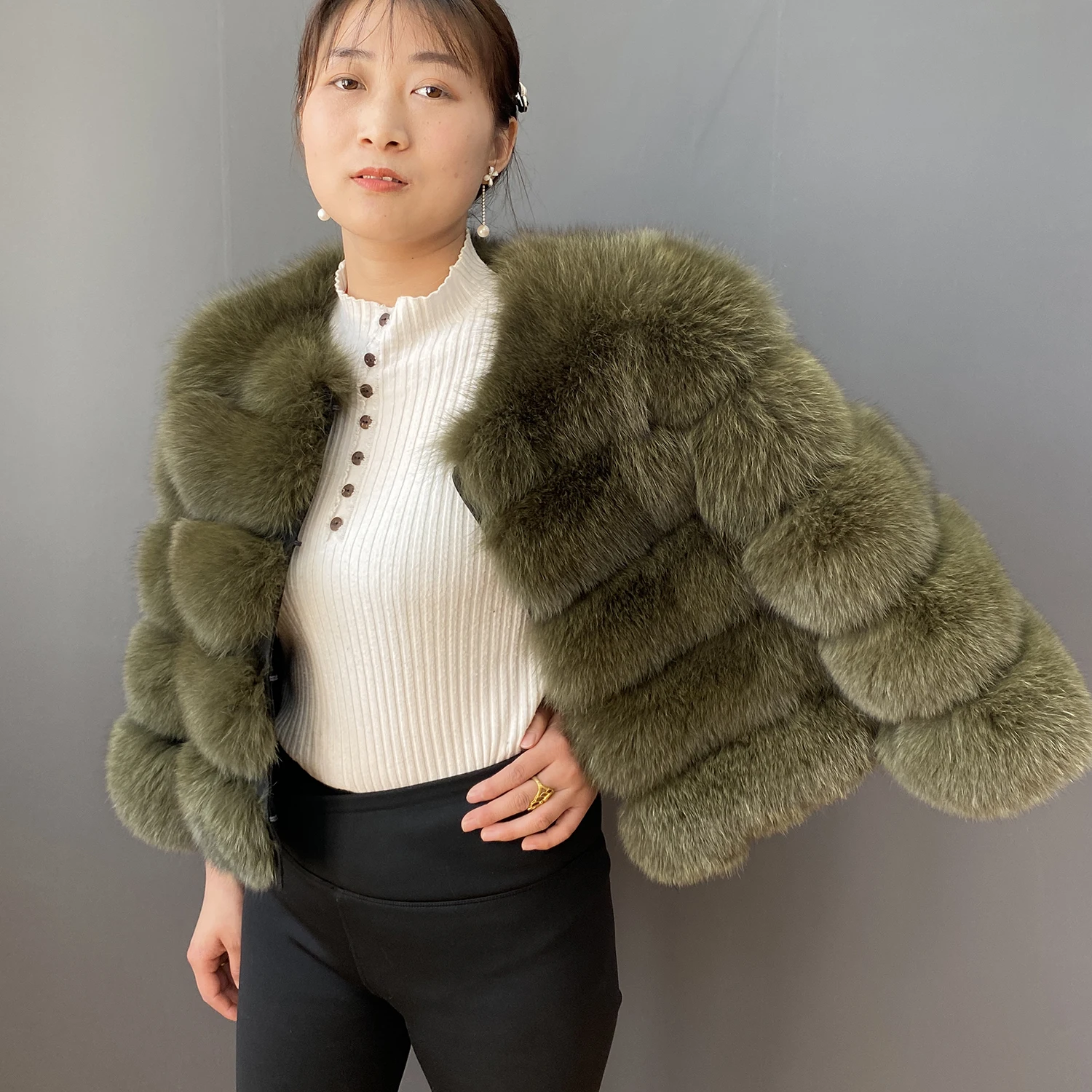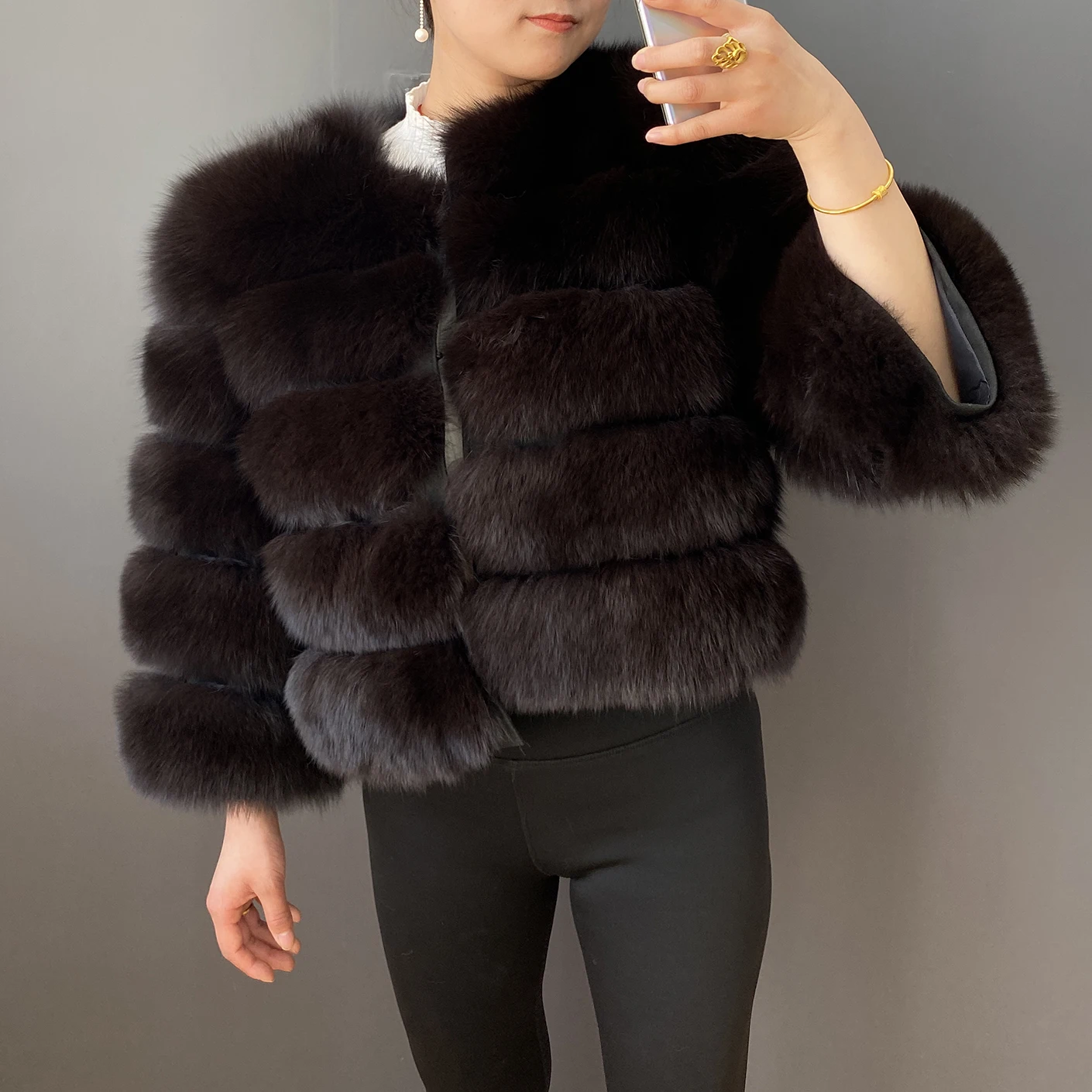 Winter Women's 50cm High Waist Style Short Natural Fox Fur Coats Real Fur Coat ASHENKAILAN 5 Rings High Fur
