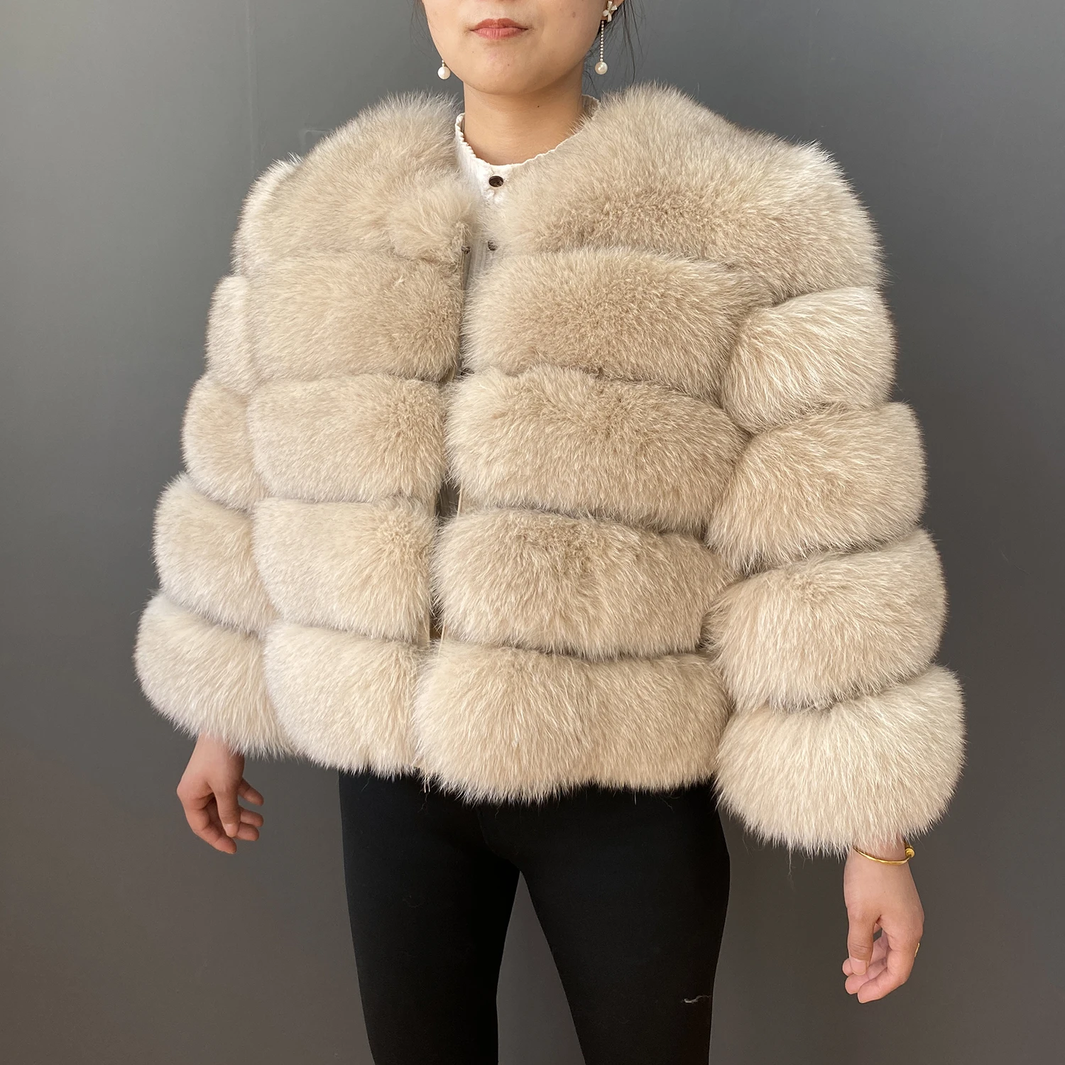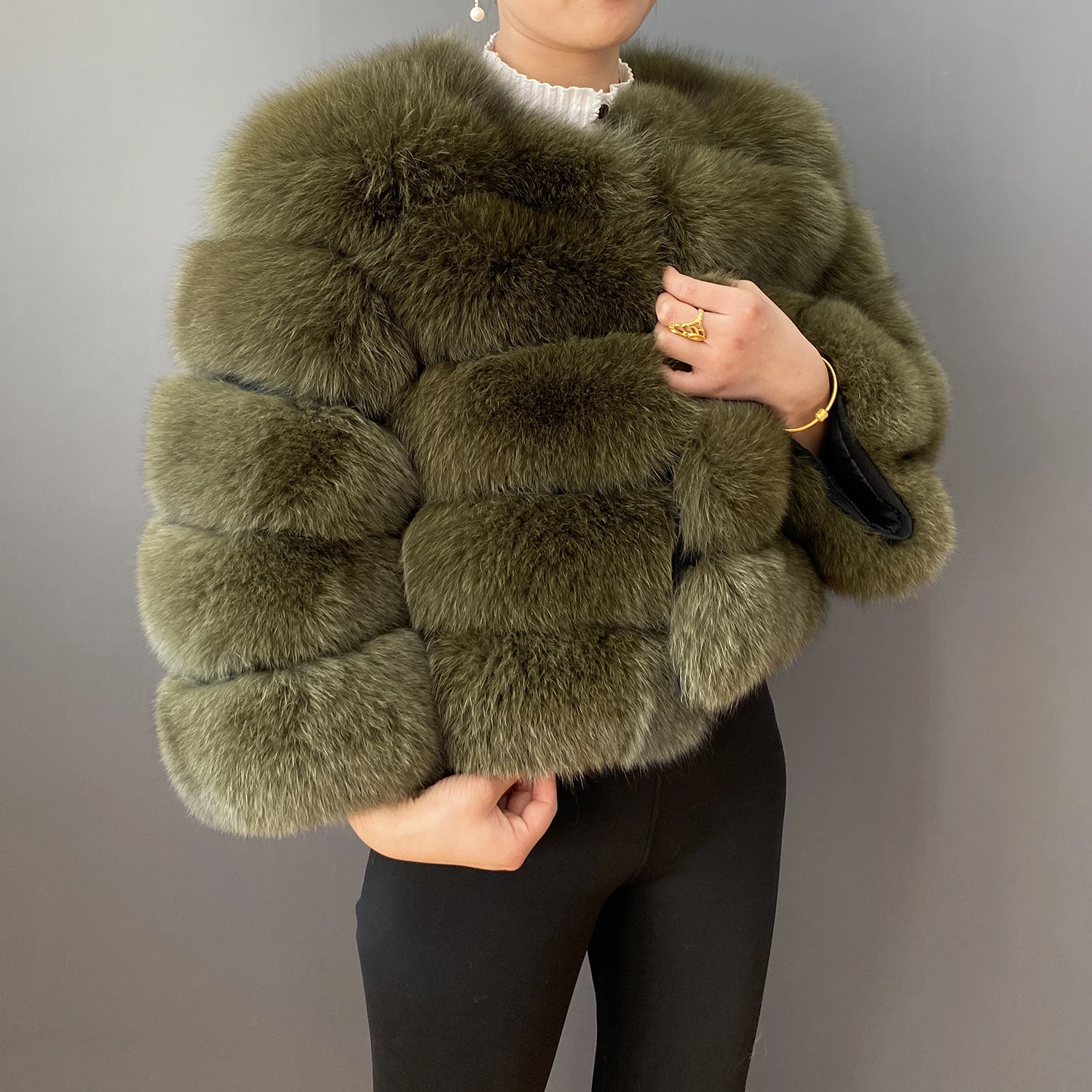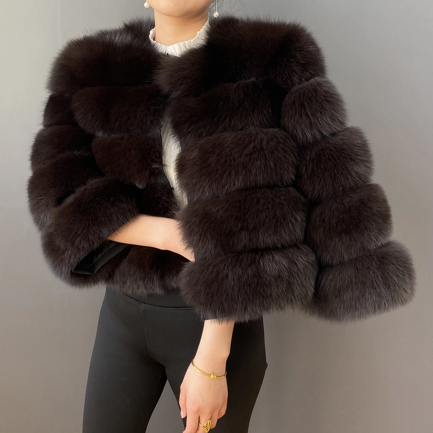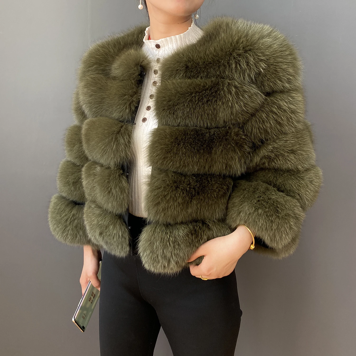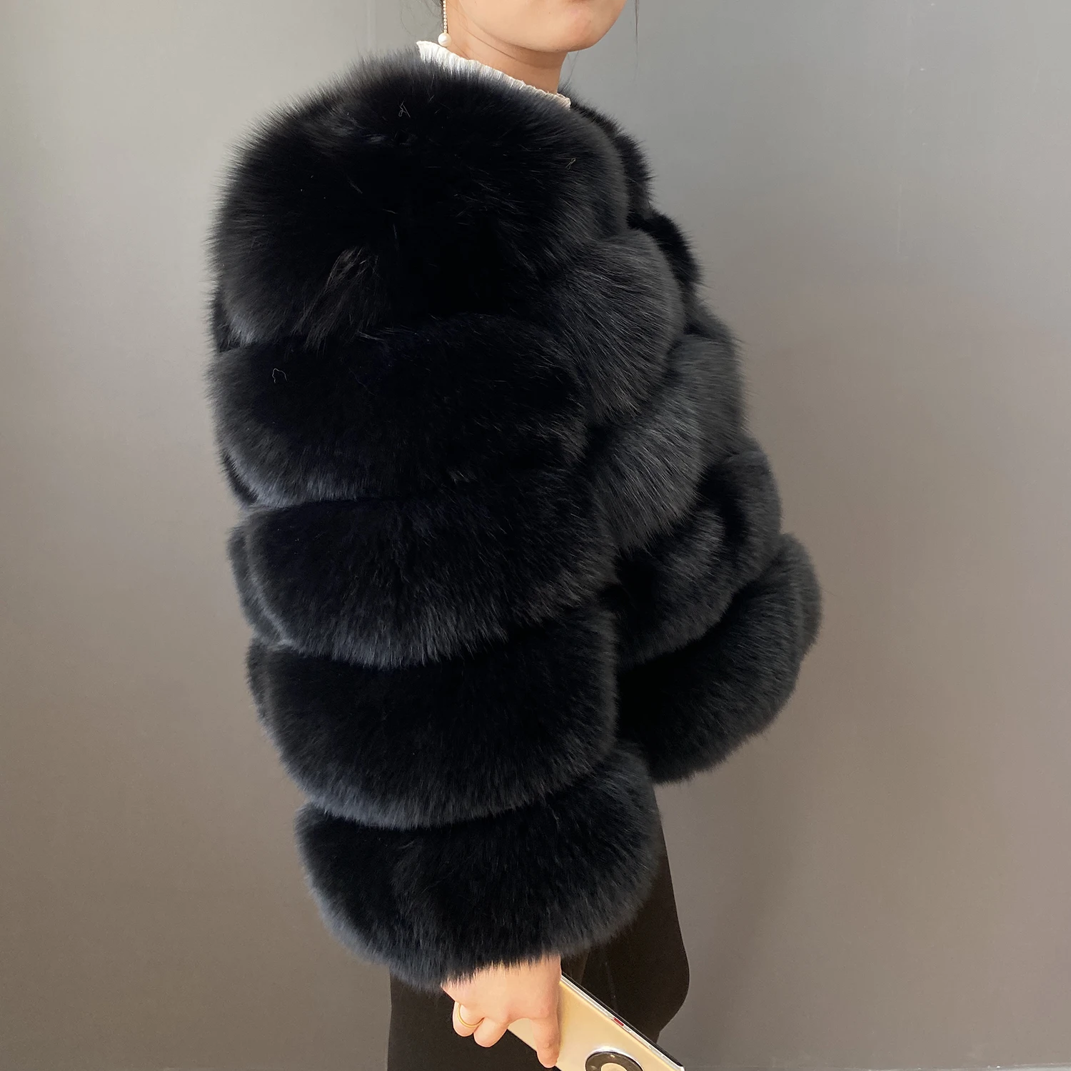 Winter Women's 50cm High Waist Style Short Natural Fox Fur Coats Real Fur Coat ASHENKAILAN 5 Rings High Fur