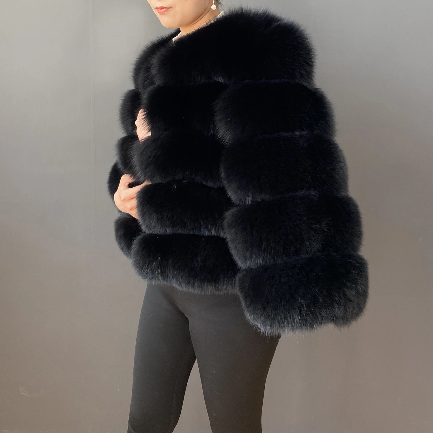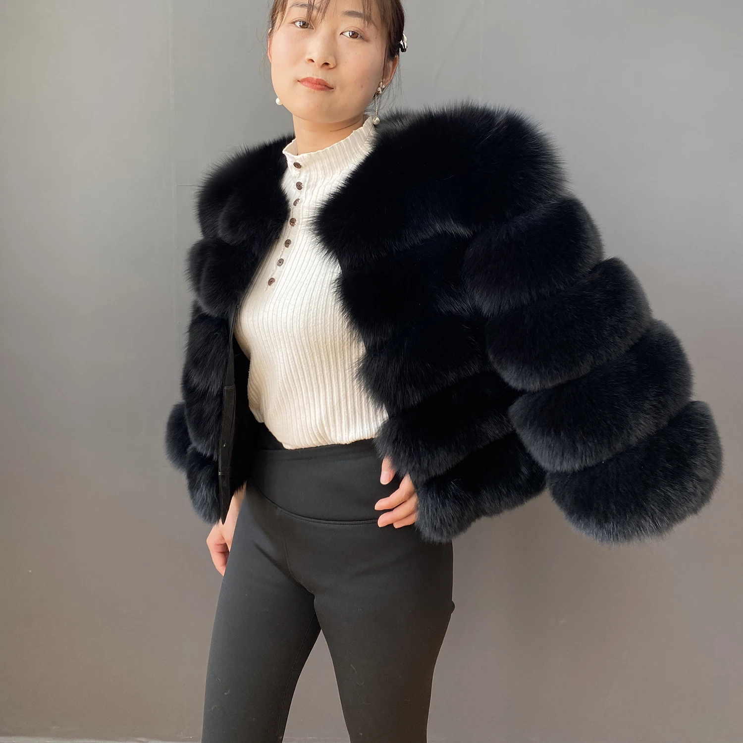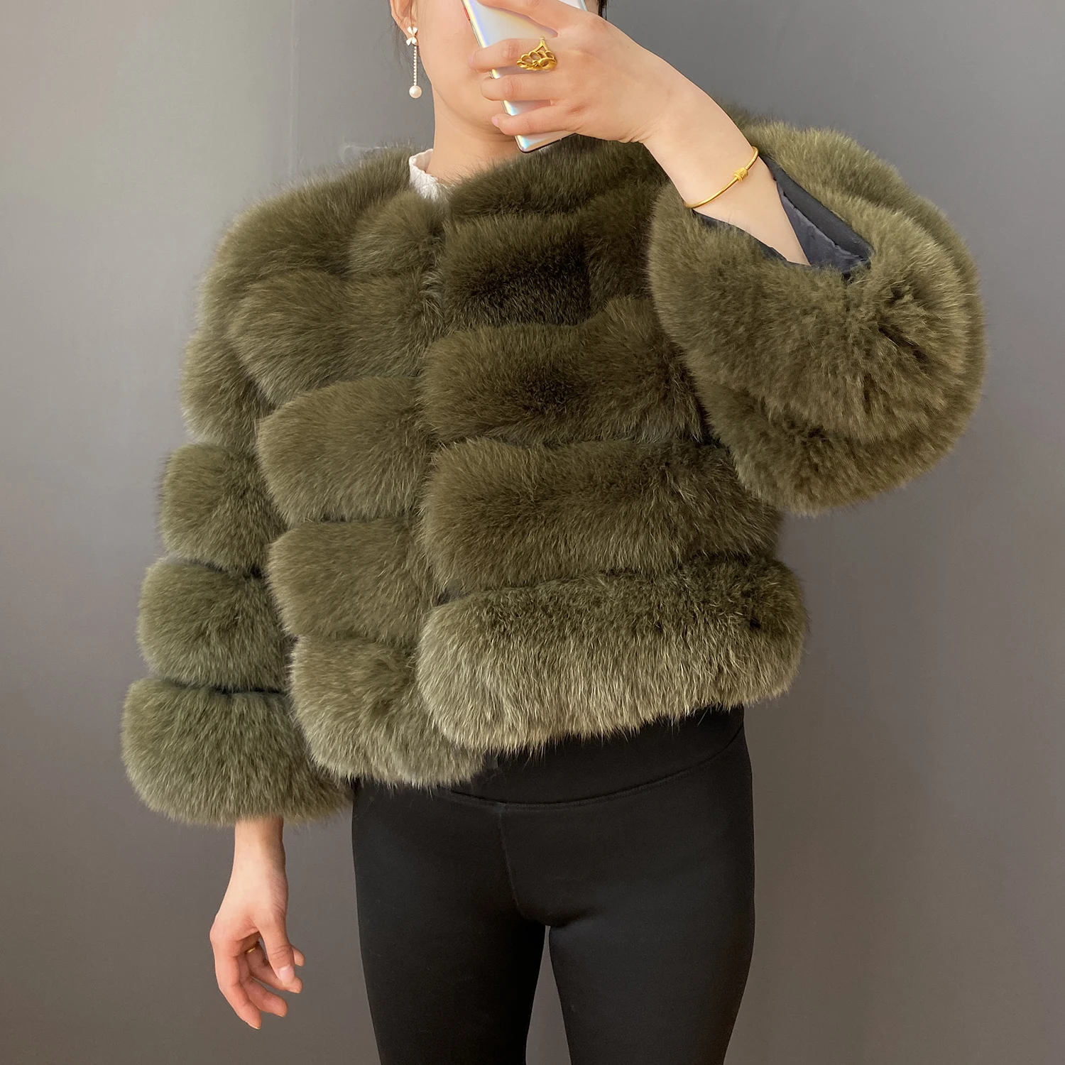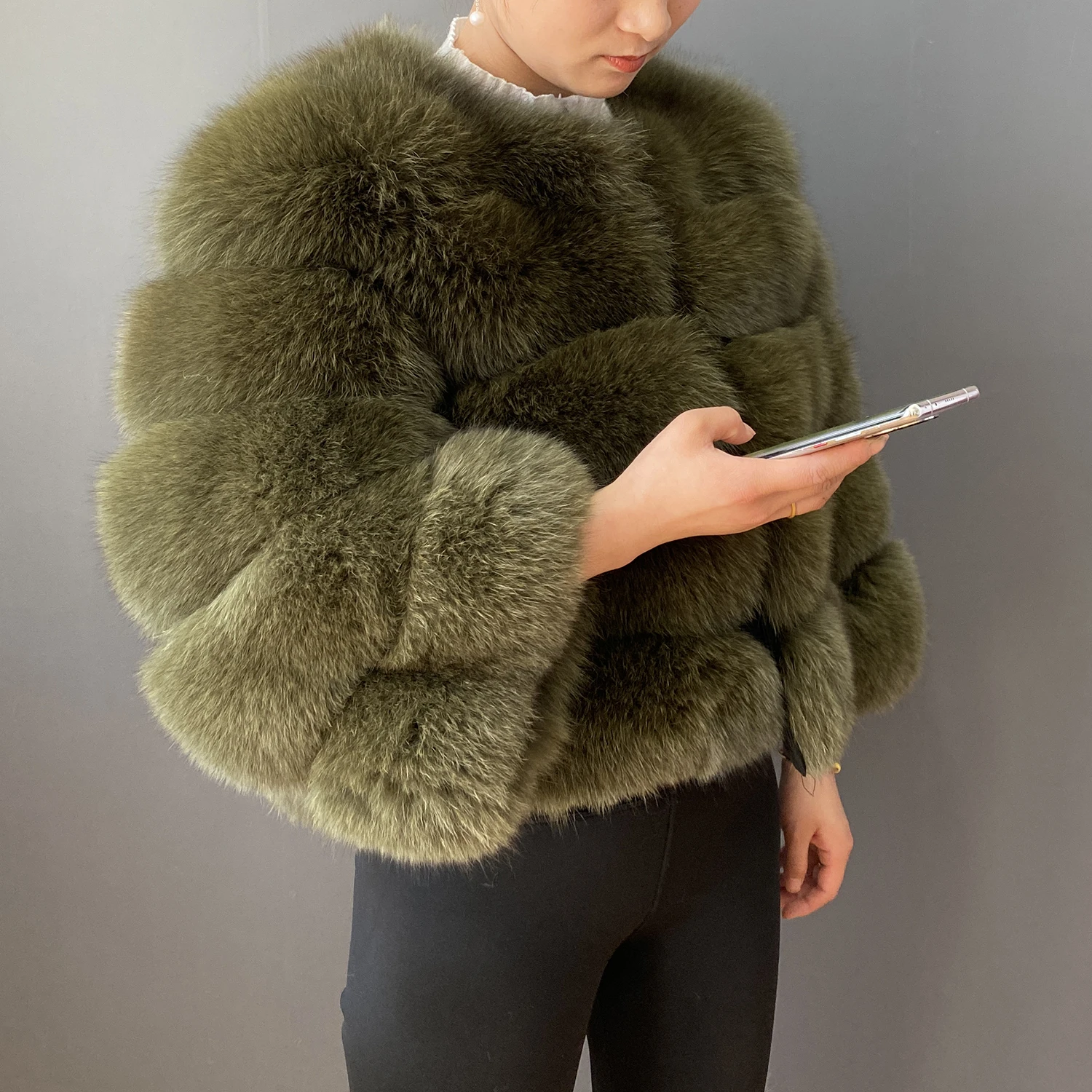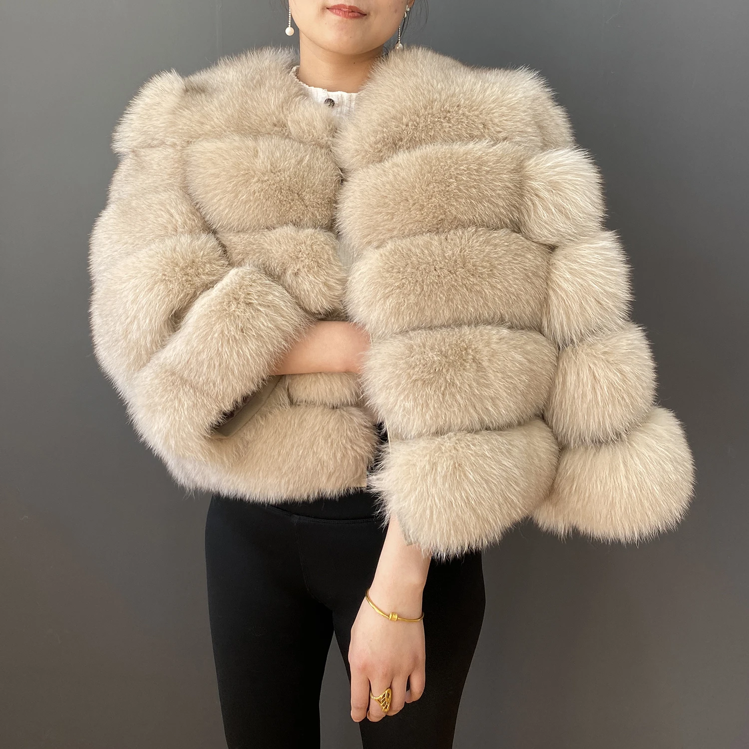 Winter Women's 50cm High Waist Style Short Natural Fox Fur Coats Real Fur Coat ASHENKAILAN 5 Rings High Fur