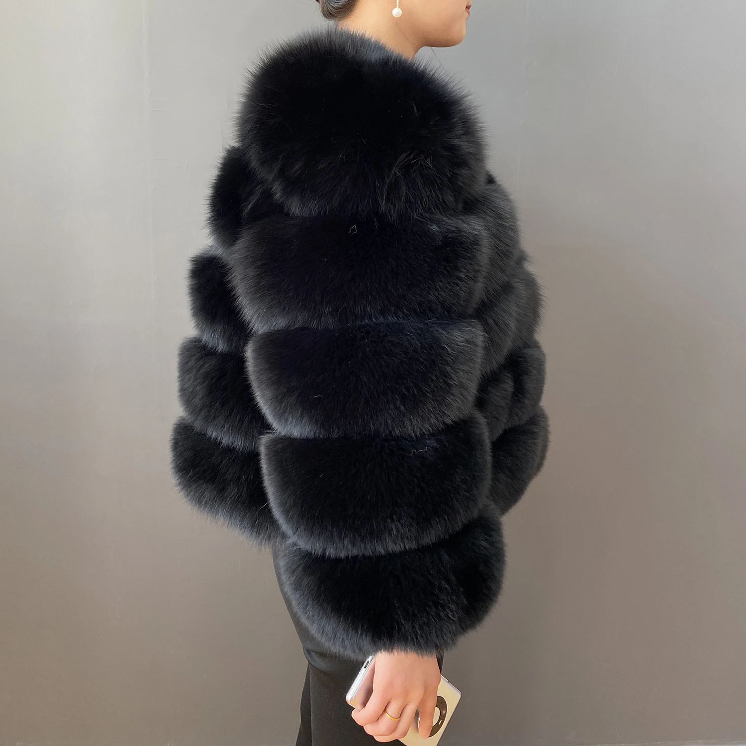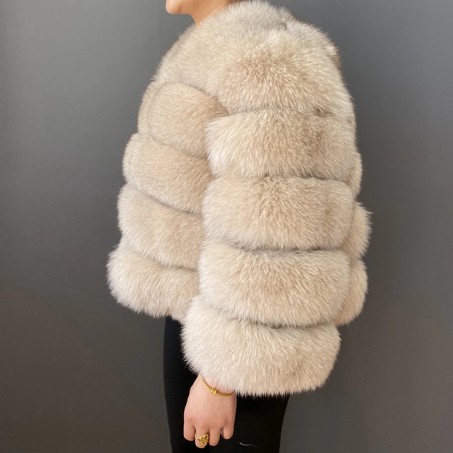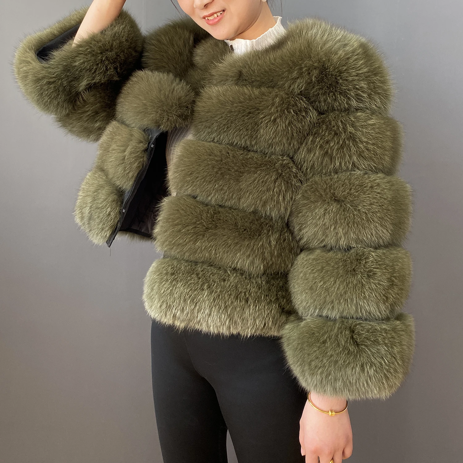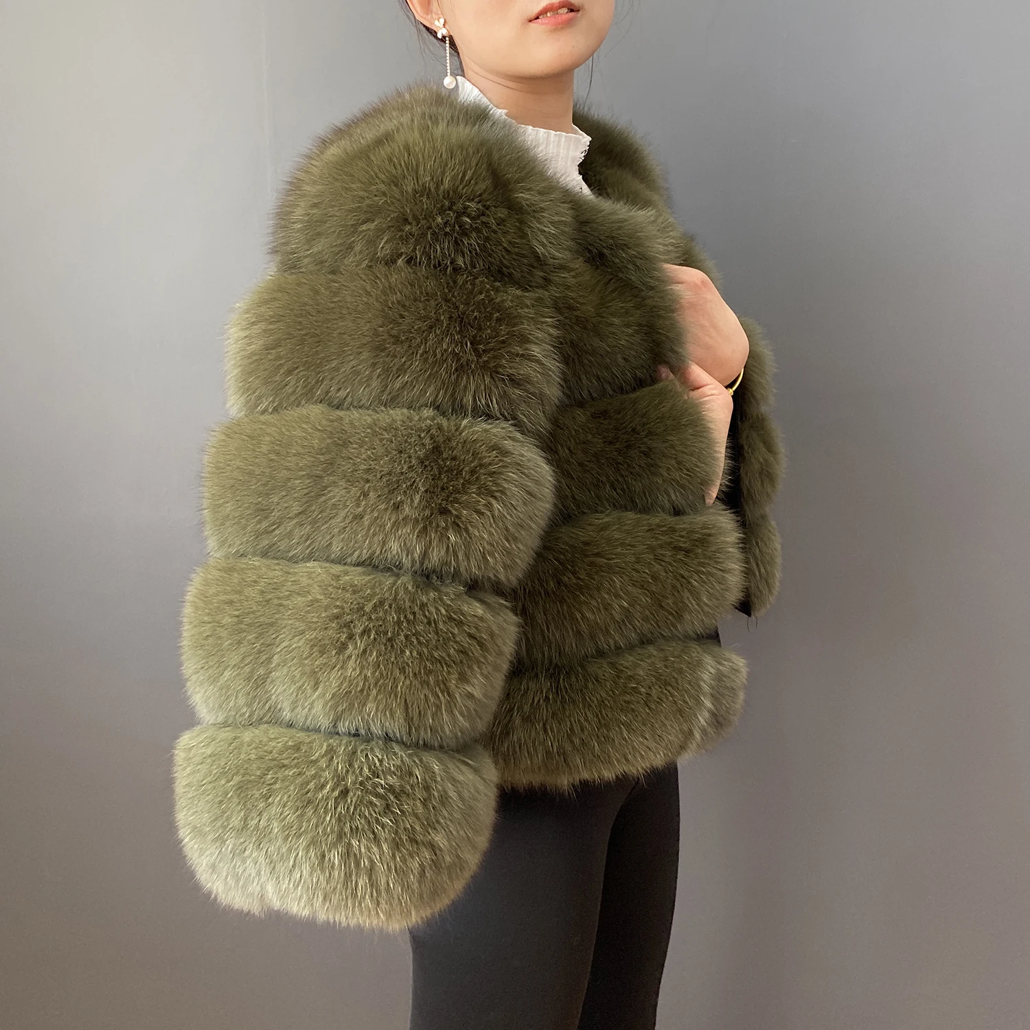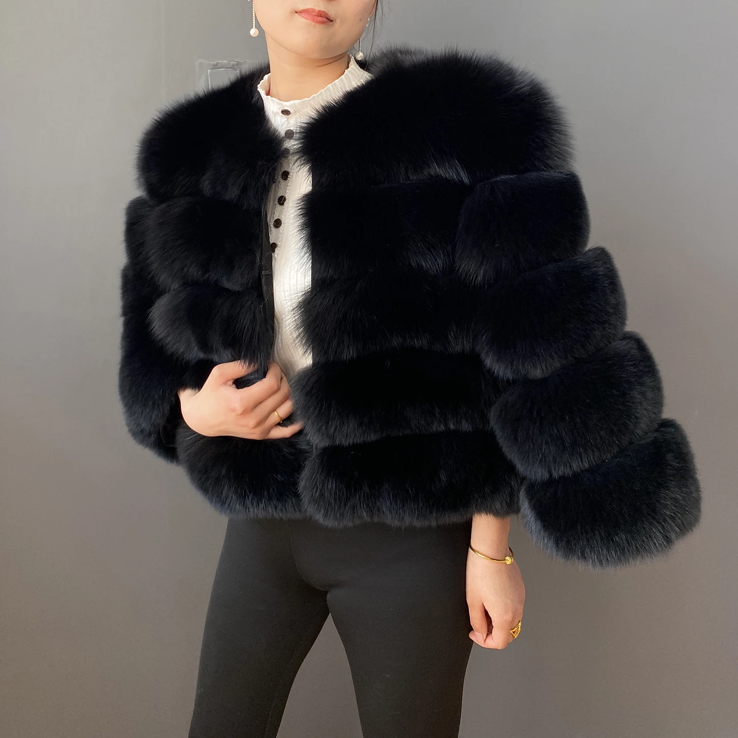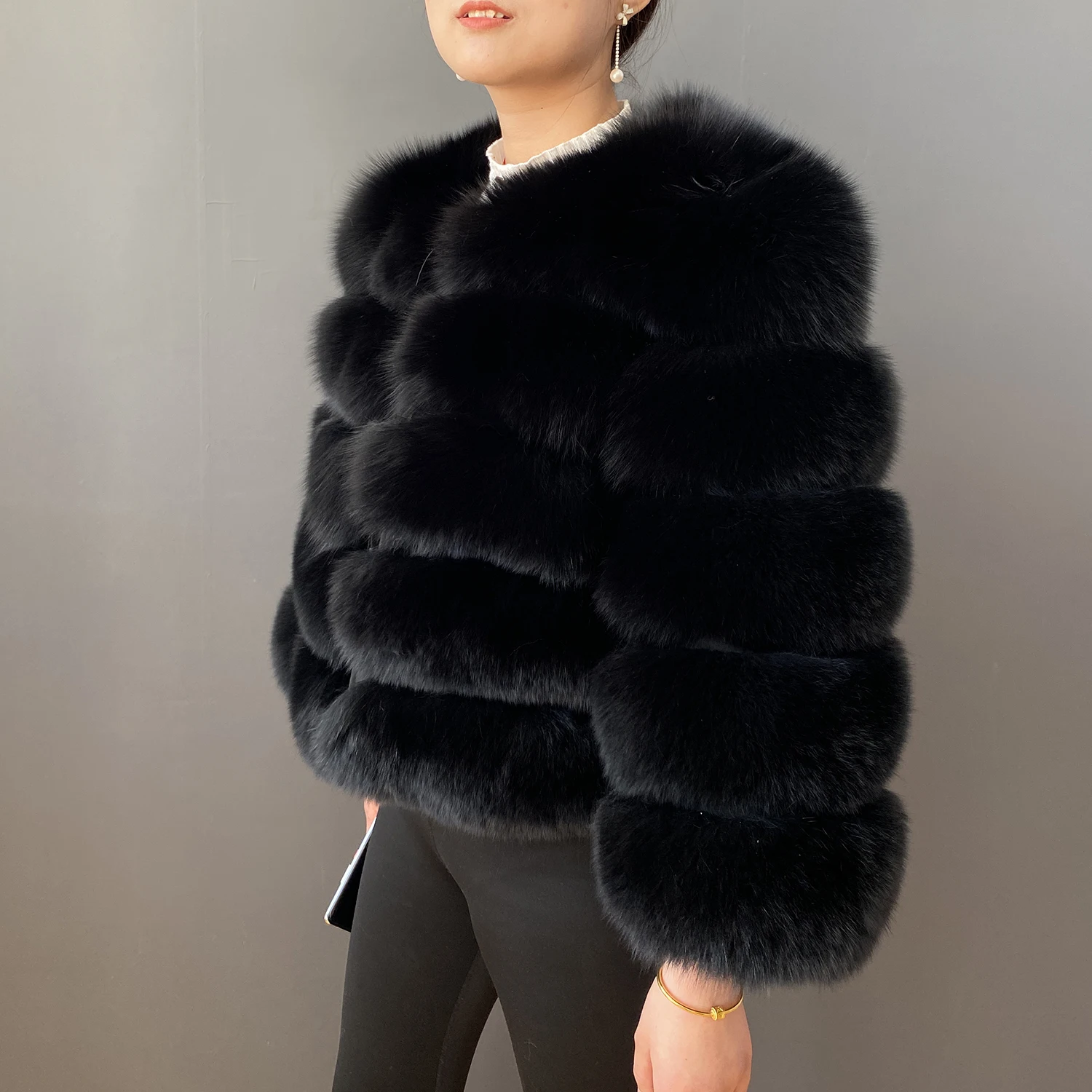 Winter Women's 50cm High Waist Style Short Natural Fox Fur Coats Real Fur Coat ASHENKAILAN 5 Rings High Fur