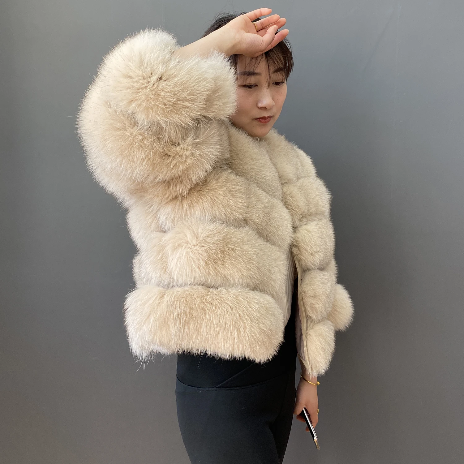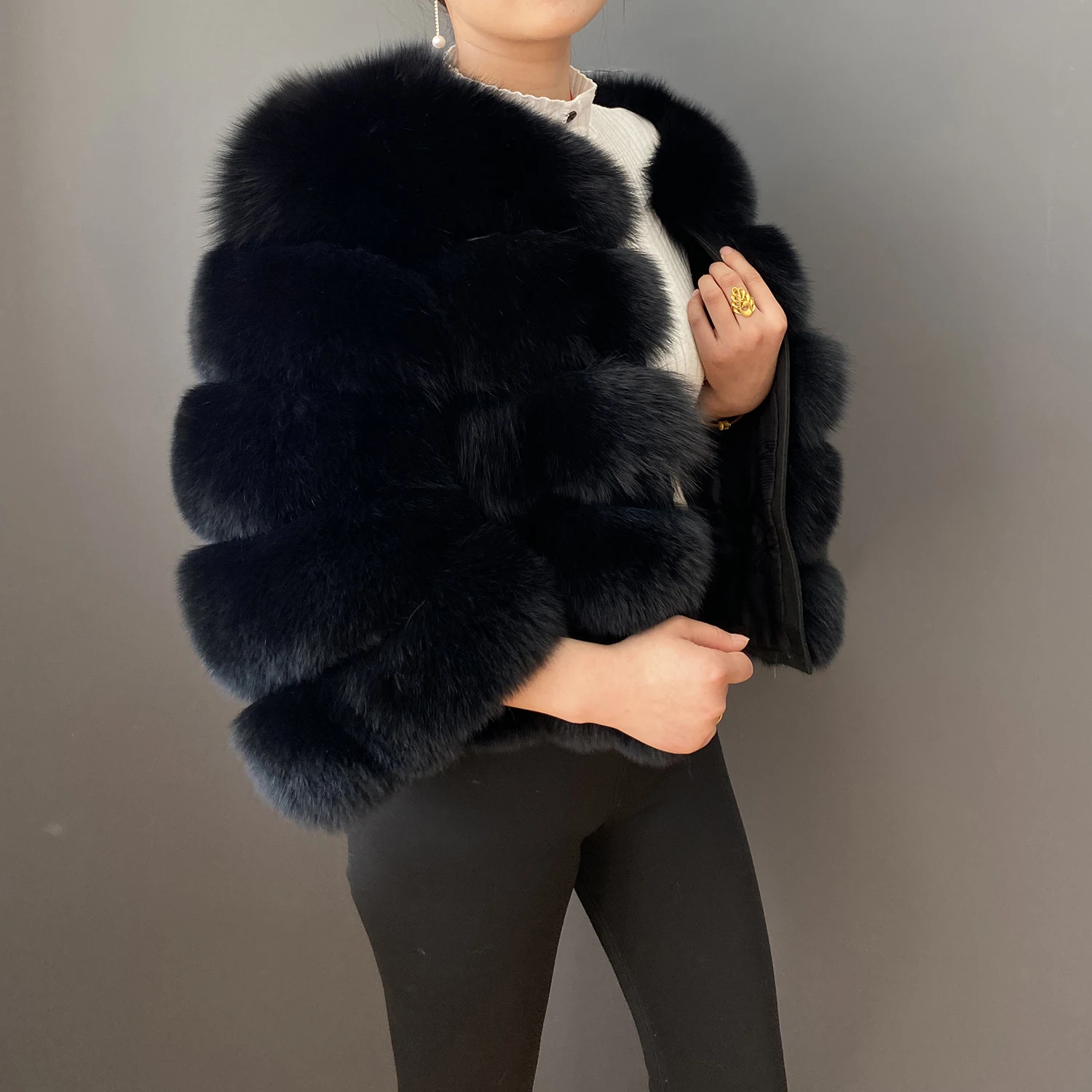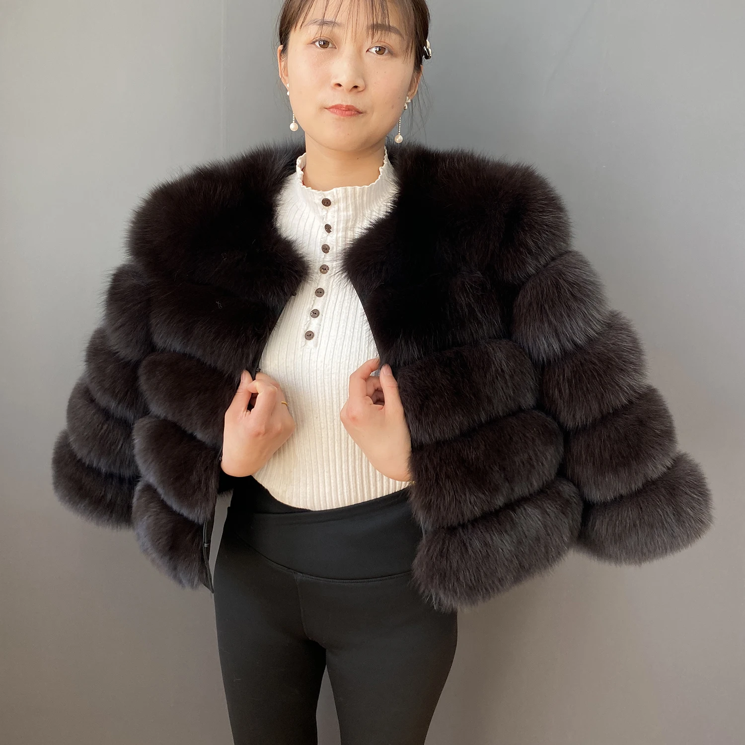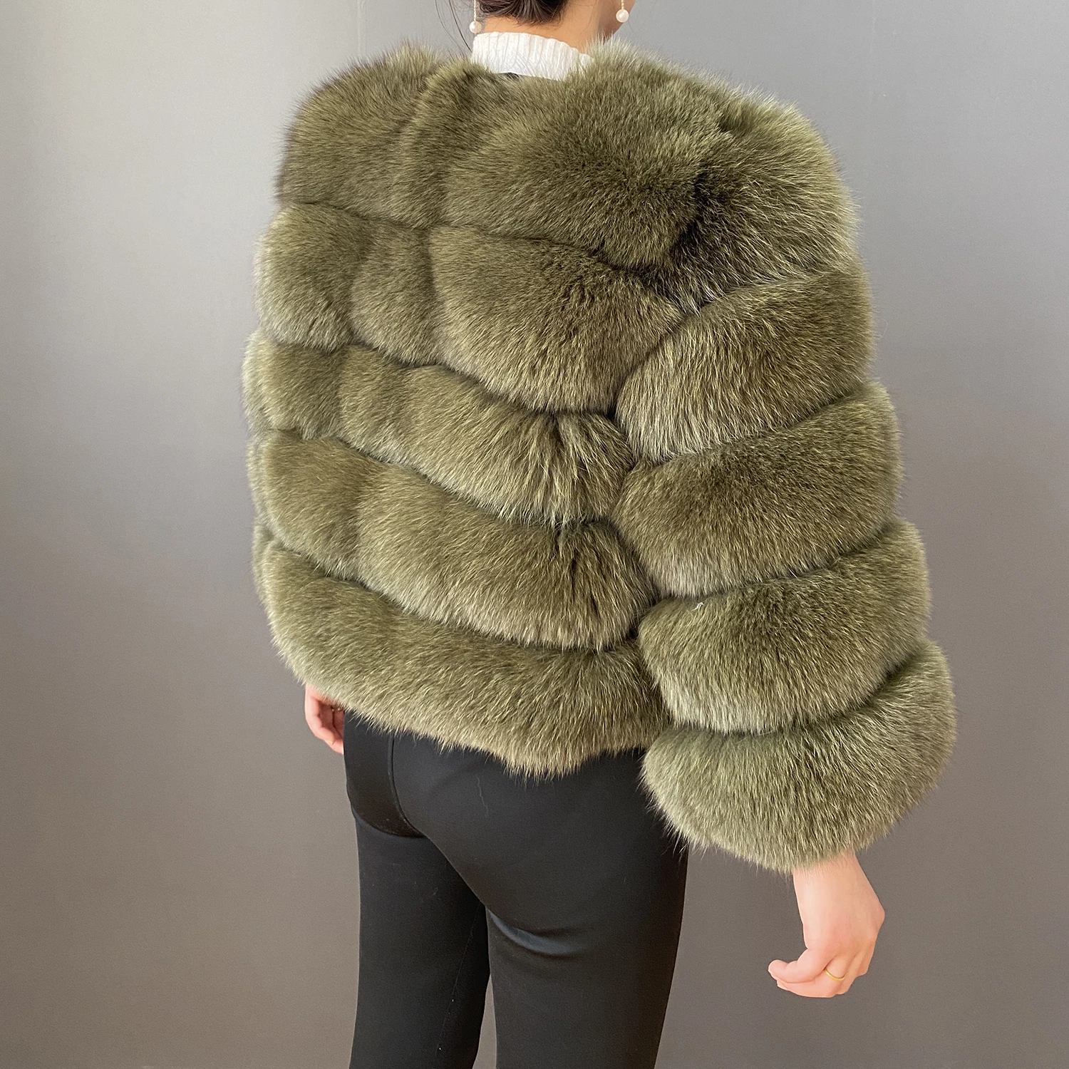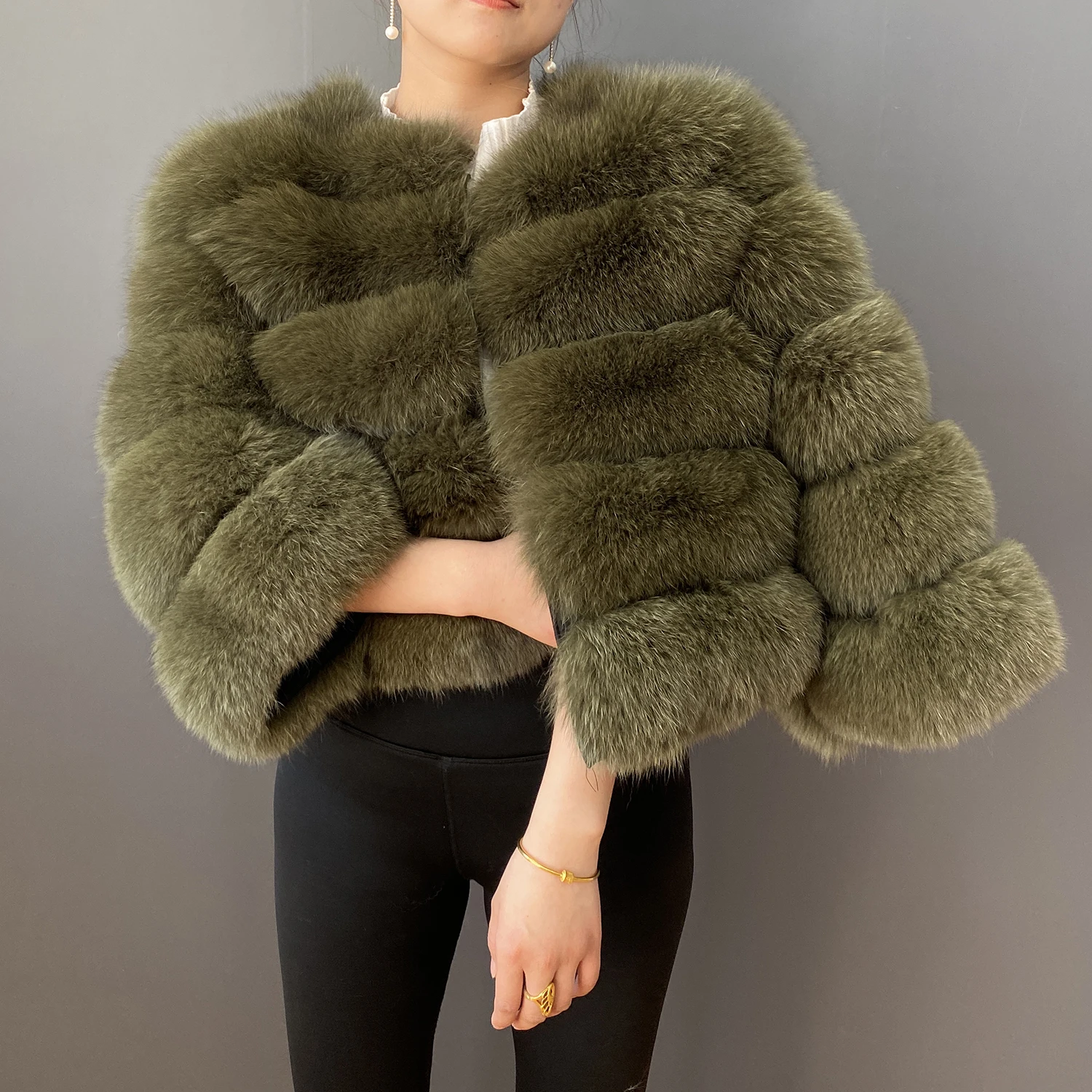 Winter Women's 50cm High Waist Style Short Natural Fox Fur Coats Real Fur Coat ASHENKAILAN 5 Rings High Fur