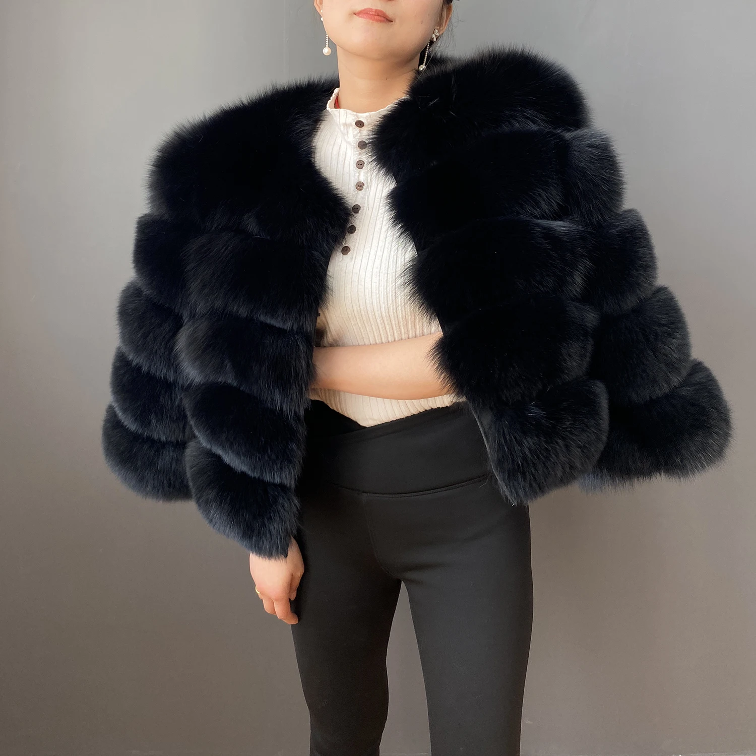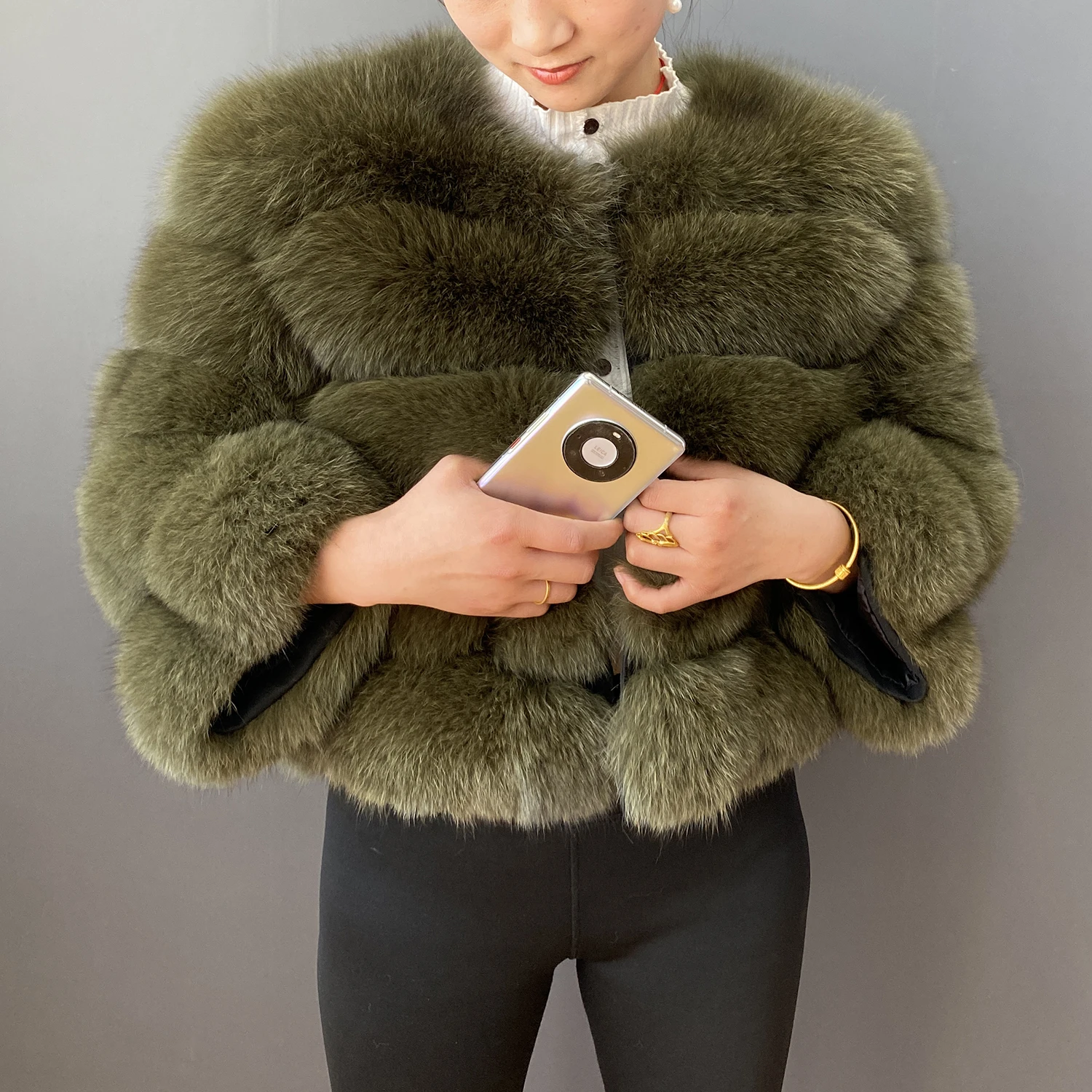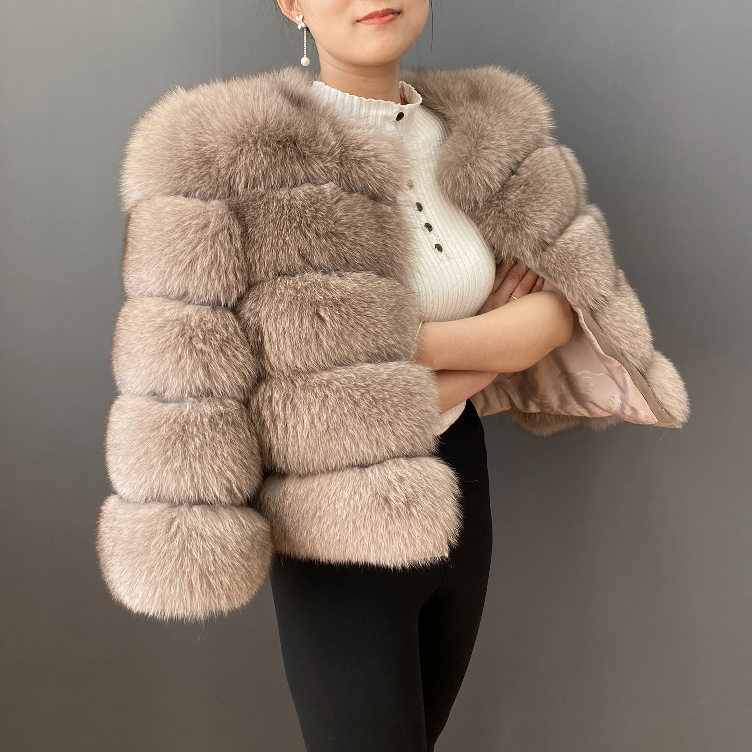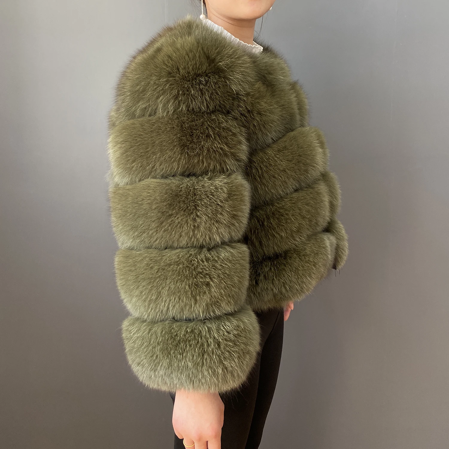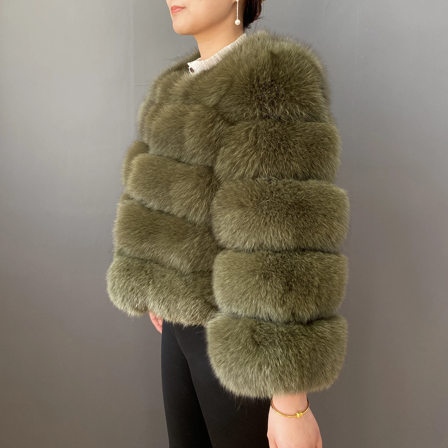 Winter Women's 50cm High Waist Style Short Natural Fox Fur Coats Real Fur Coat ASHENKAILAN 5 Rings High Fur