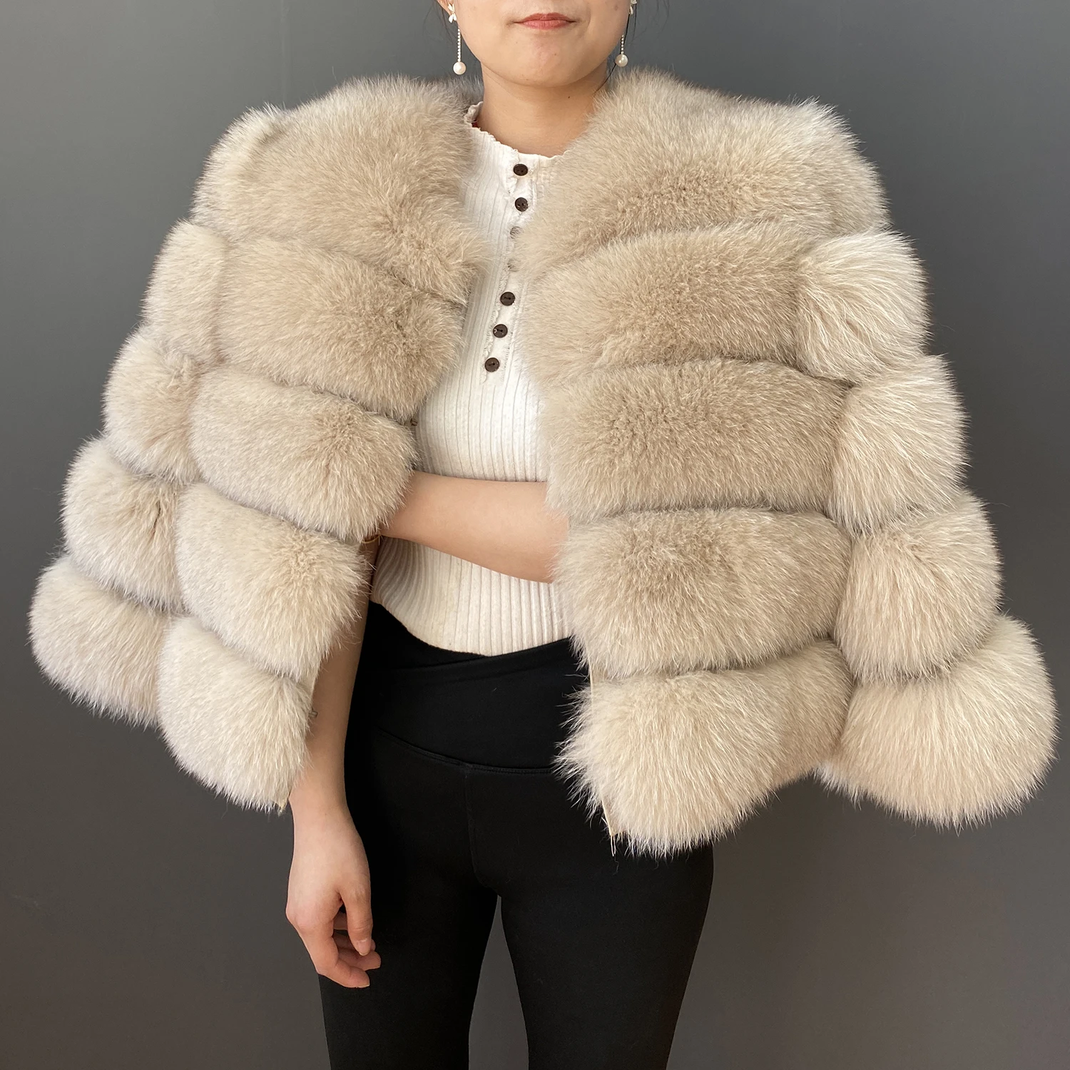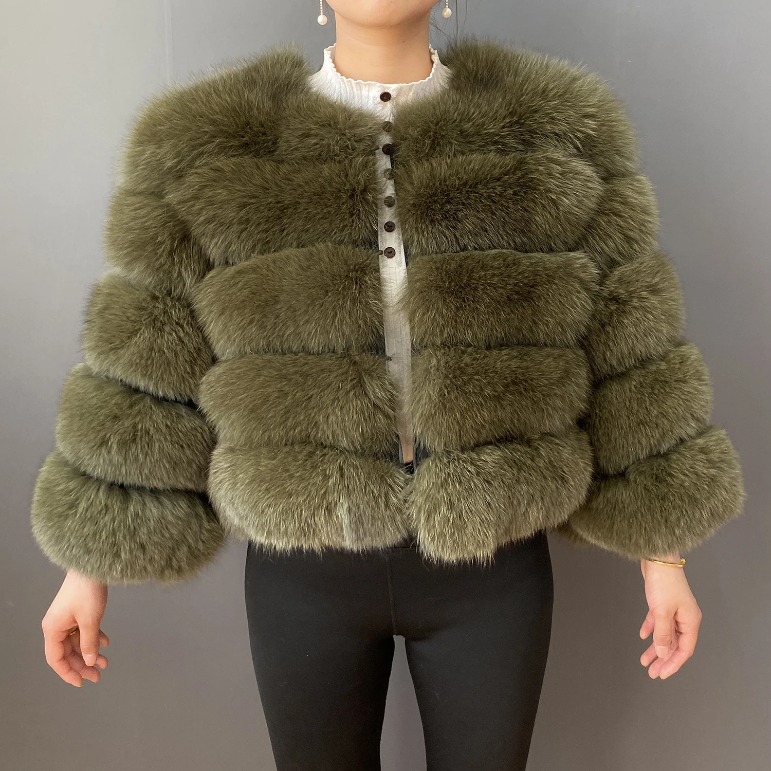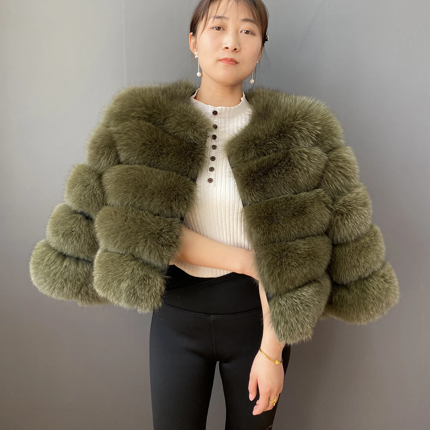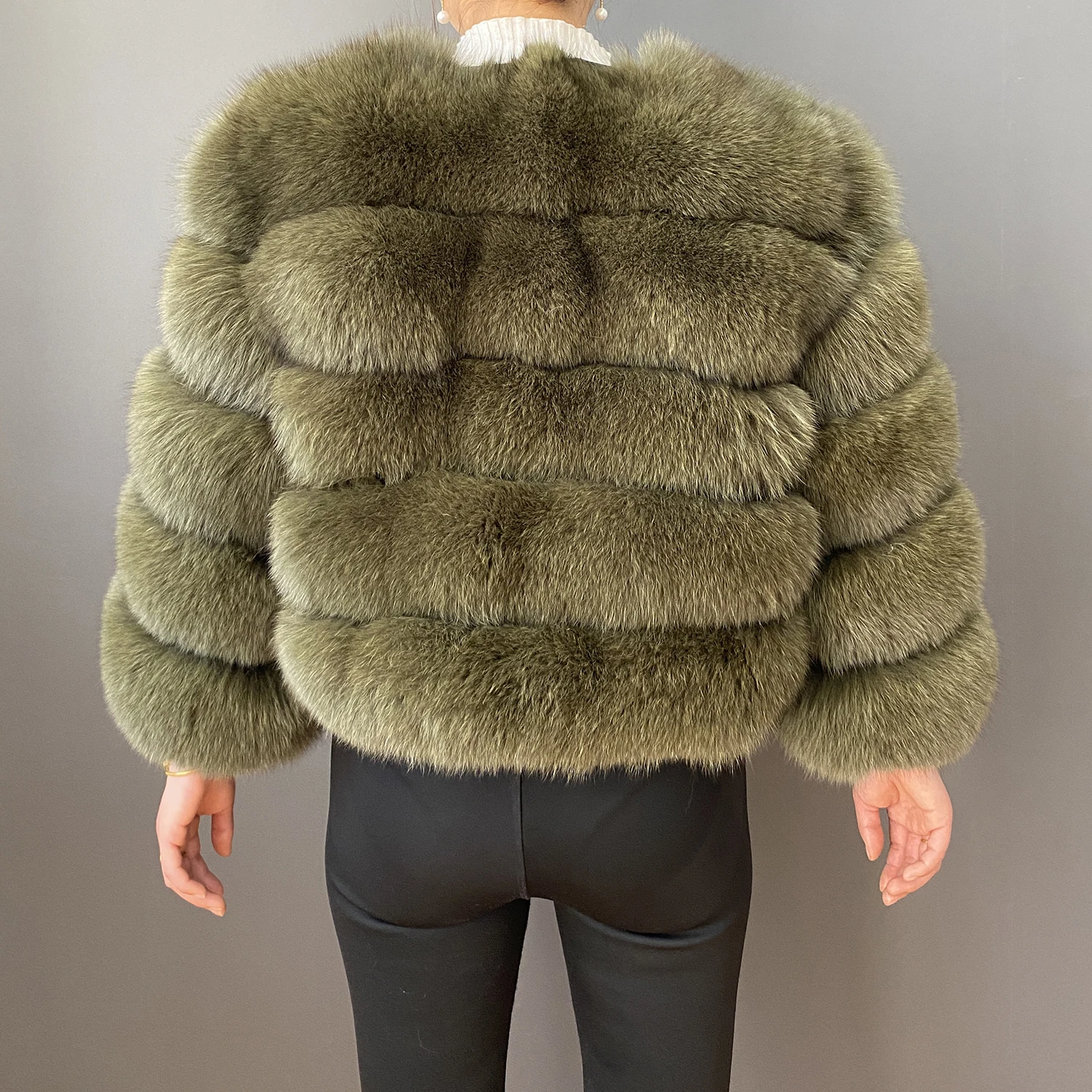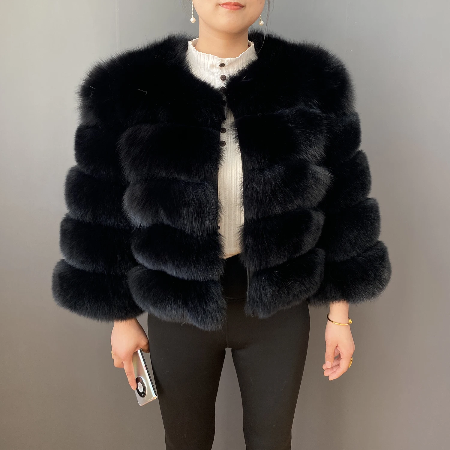 Winter Women's 50cm High Waist Style Short Natural Fox Fur Coats Real Fur Coat ASHENKAILAN 5 Rings High Fur