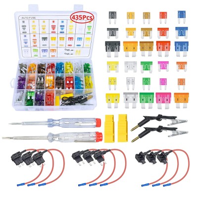 306PCS car fuse 5A10A15A20A25A30A35A amplifier with box clip combination car blade fuse set with inspection circuit electric pen