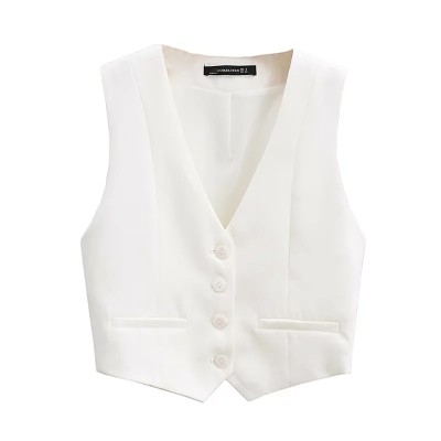 Women's Vest Sleeveless Jacket Women Coat Spring Waistcoat White Short Office Lady Business Basic Classic V Neck