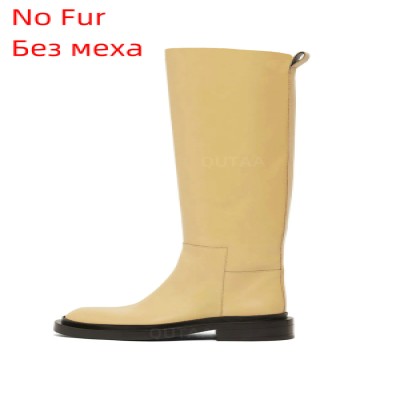 QUTAA 2023 Ins Women Knee high Boots Square Heels Motorcycle Warm Long Boots Genuine Leather Casual Shoes 34-42