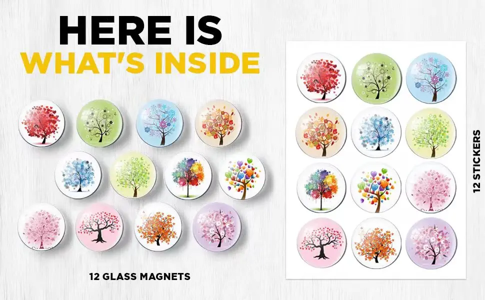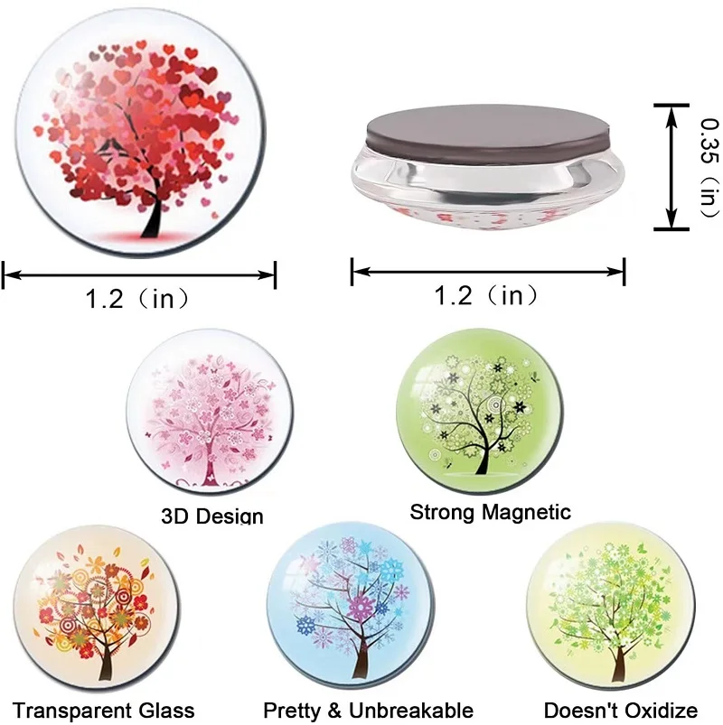 6 Pcs/pack Cute Fridge Magic Magnet Tree of Life Glass Gem Sticker For Calendars Office Whiteboards Home Refrigerator Decor