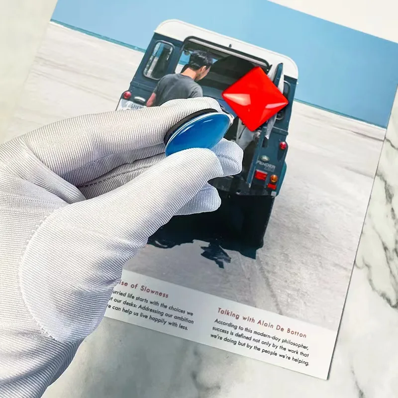 Adopting original style design and exquisite, high-end model of transparent crystal glasses surface, bright color printing paper middle and magnet back.