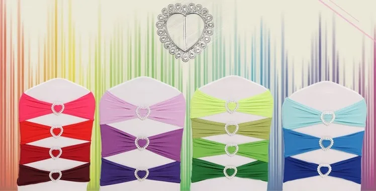 spandex chair sash for weddings,spandex band with luxury plastic heart buckles for chair covers(it's single layer !)