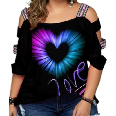 5XL Plus Size Summer Peplum Top For Women Cold Shoulder Tunic Tee Shirts Sexy Suspender Alt Plus Size Ropa Para Gorditas