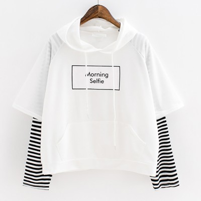 40# Women striped Hoodies tops Ladies Sweatshirt Hooded Long Sleeve Hoodies Crop top Patchwork Pullover Drawstring Sweatshirts