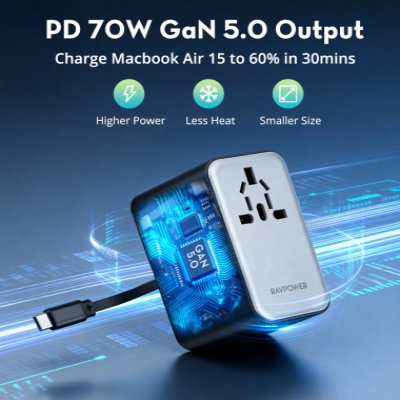 RAVPower RP-PC1033 GaN 20W Travel Adapter 4-Port PD Power Charger with 1 AC, 1 USB-C and 2 USB-A Ports