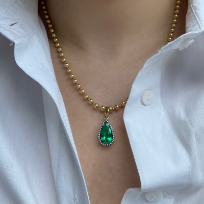 JW X MUZO Emerald Pear and Diamond Connexion Necklace