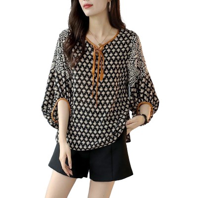 4XL Loose Women Spring Summer Blouses Shirts Lady Casual Half Sleeve V-Neck Collar Flower Printing Blusas Tops TT2241