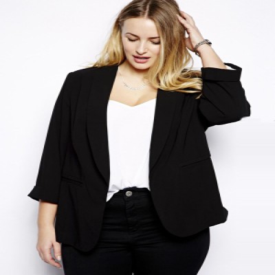 Plus Size Shawl Collar Casual Blazer Women Long Rolling Sleeve Pocket Solid Black Spring Autumn Elegant Coat Jacket 7XL