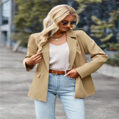 Ladies Vintage Solid Pocket Blazer Women Long Sleeve Casual Work Office Lady Outerwear Jacket Coat Women Blazer Chic Tops Female