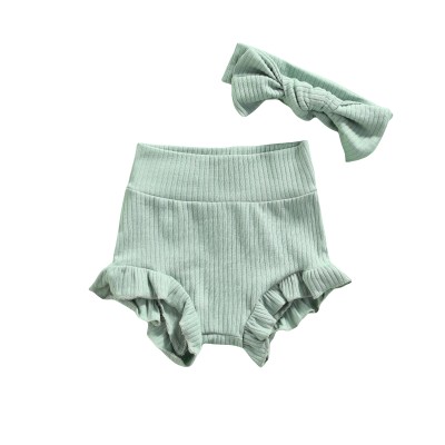 Summer Kids Shorts Knitted Solid Color Baby Girls Shorts Cotton Ruffles Short Pants Newborn Bloomers Headband