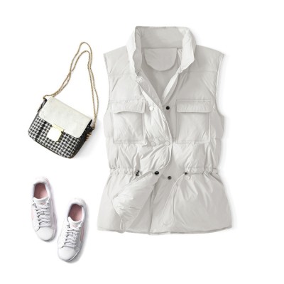 Winter Women Short Vest Ultra Light Down Vest Warm Lightweight Windproof White Duck Down Sleeveless Vest