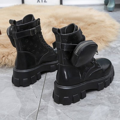 Women Thick-Soled Leather Boots Casual Women Boots Women Lace-Up High Boots Nylon pouch heels flats booties