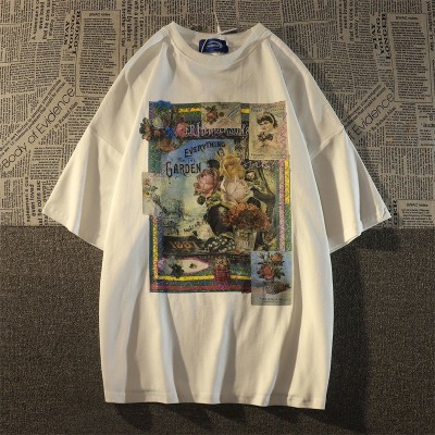 European and American high street tide vintage short sleeved t-shirt summer ins loose street retro couple tops gothic