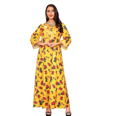 Fancy Dubai Abaya Long Dress Woman Clothes American Muslim Summer Flora Jalabiya White Green Yellow Blue Robe With Belt