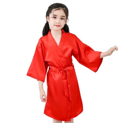 Summer Girls Silk Robe Solid Color Children's Pajamas Soft Kids Bathrobe Girls Satin Robe Teenager