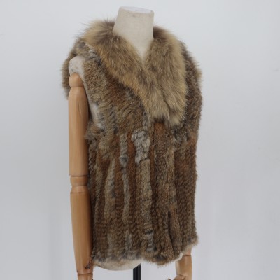 Real Rabbit Fur Vest High-end Women Knitted Sleeveless Fur Vests With Natural Raccoon Fur Jacket Women Coat